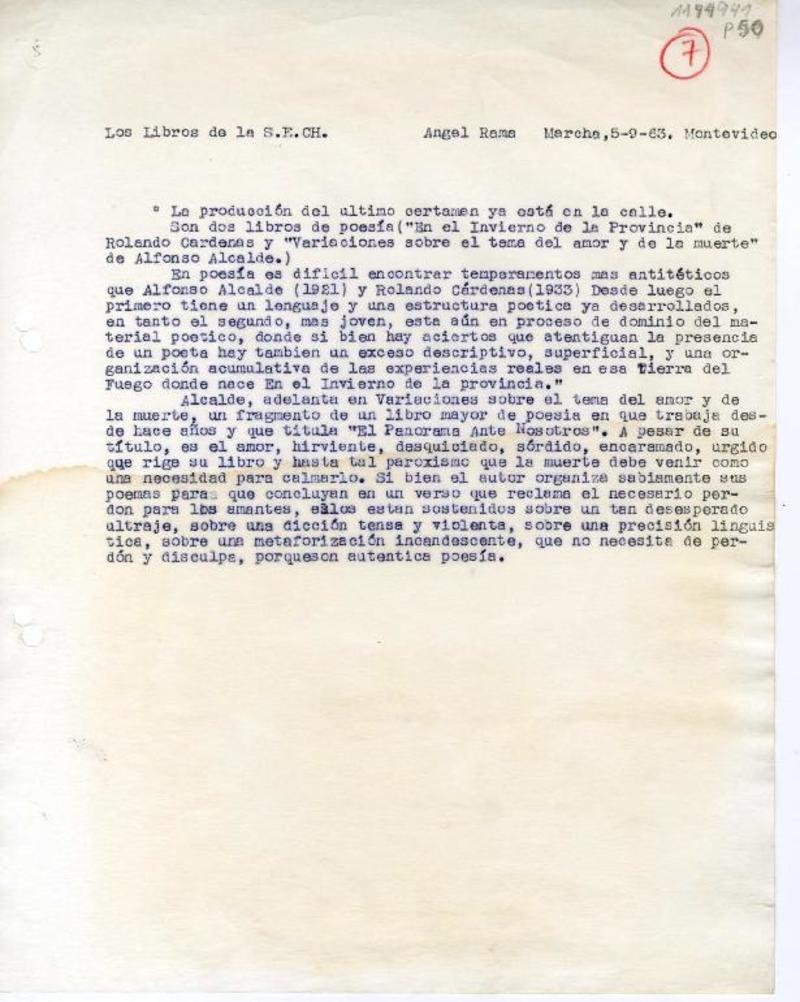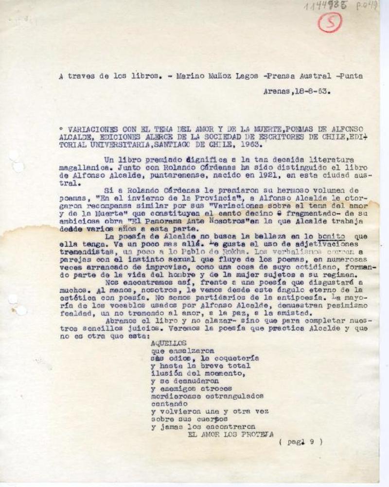Variaciones sobre el tema del amor y de la muerte - Poesías chilenas - Manuscritos chilenos - Alcalde, Alfonso - Reseñas