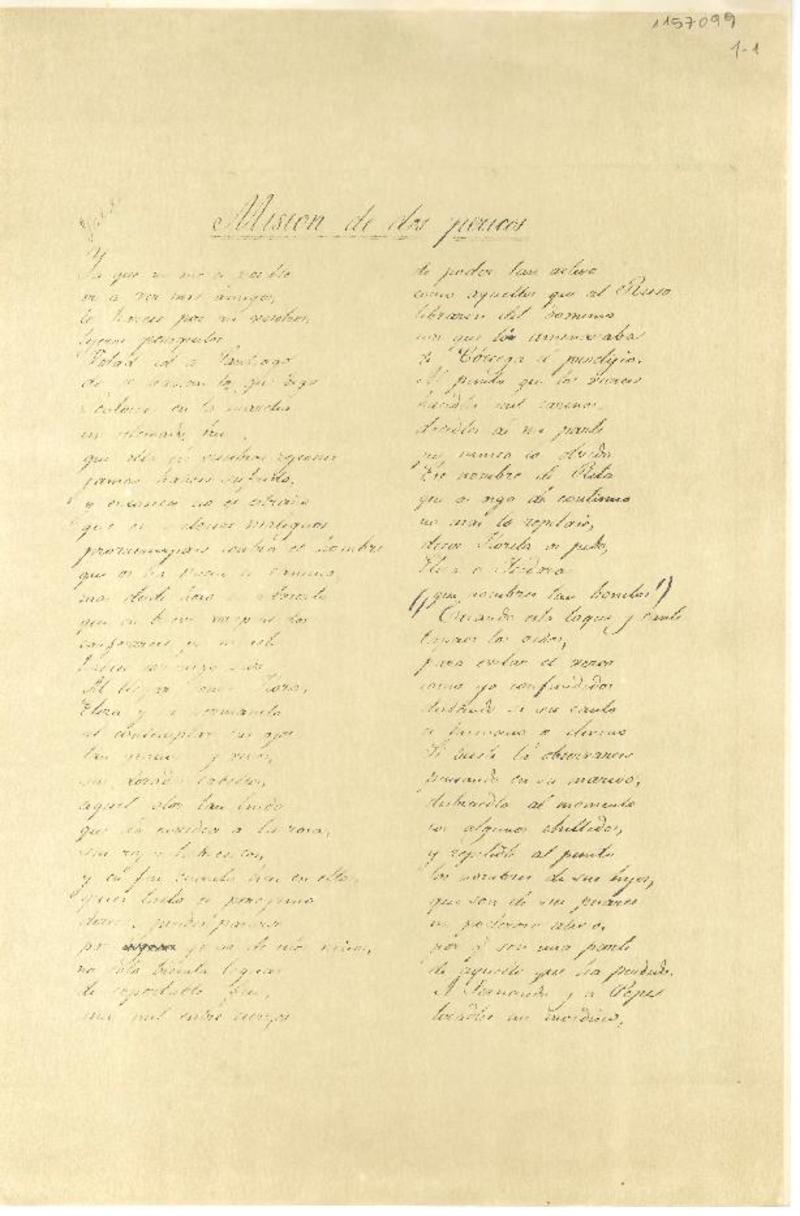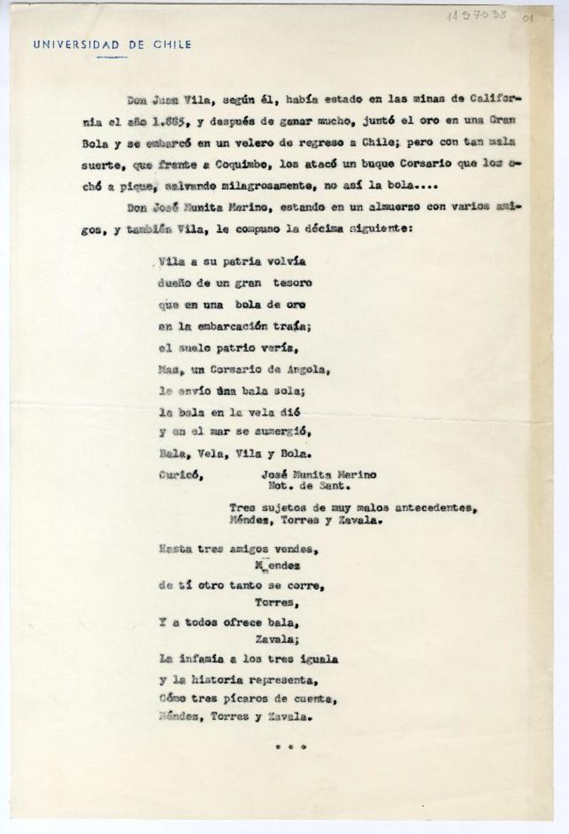 [Vila a su patria volvía...] [manuscrito] José Munita Merino ; transcripción.