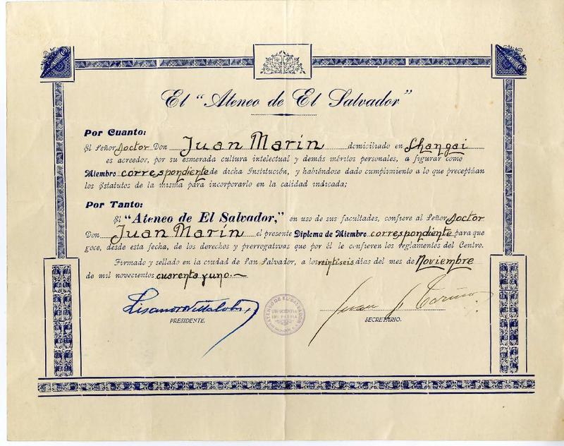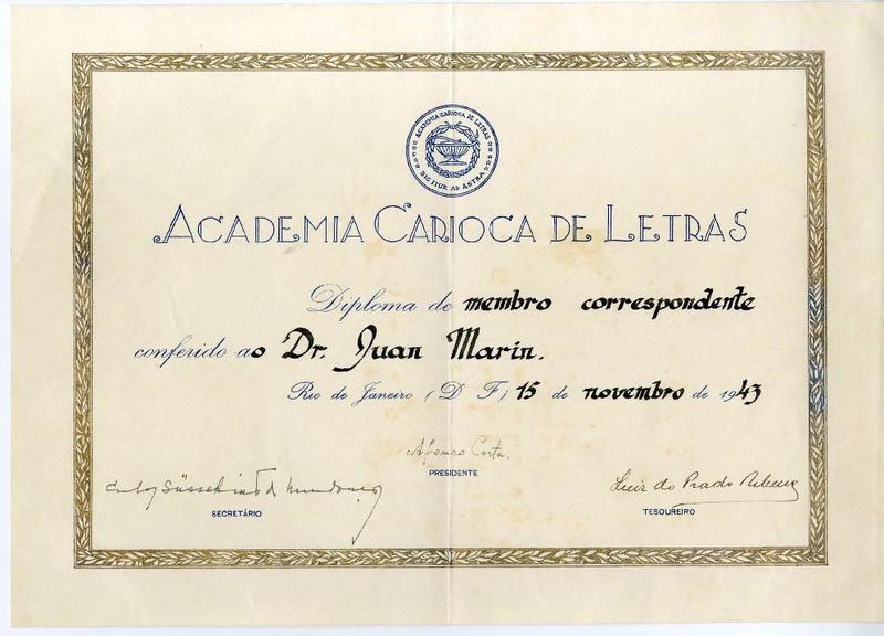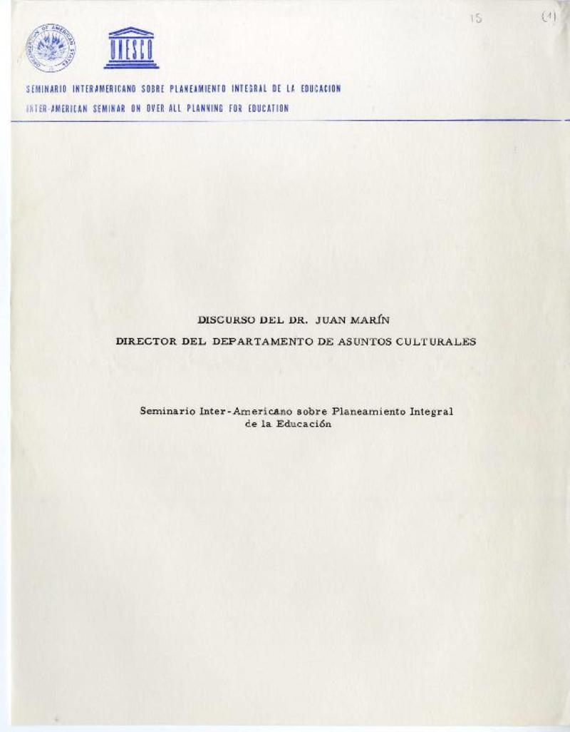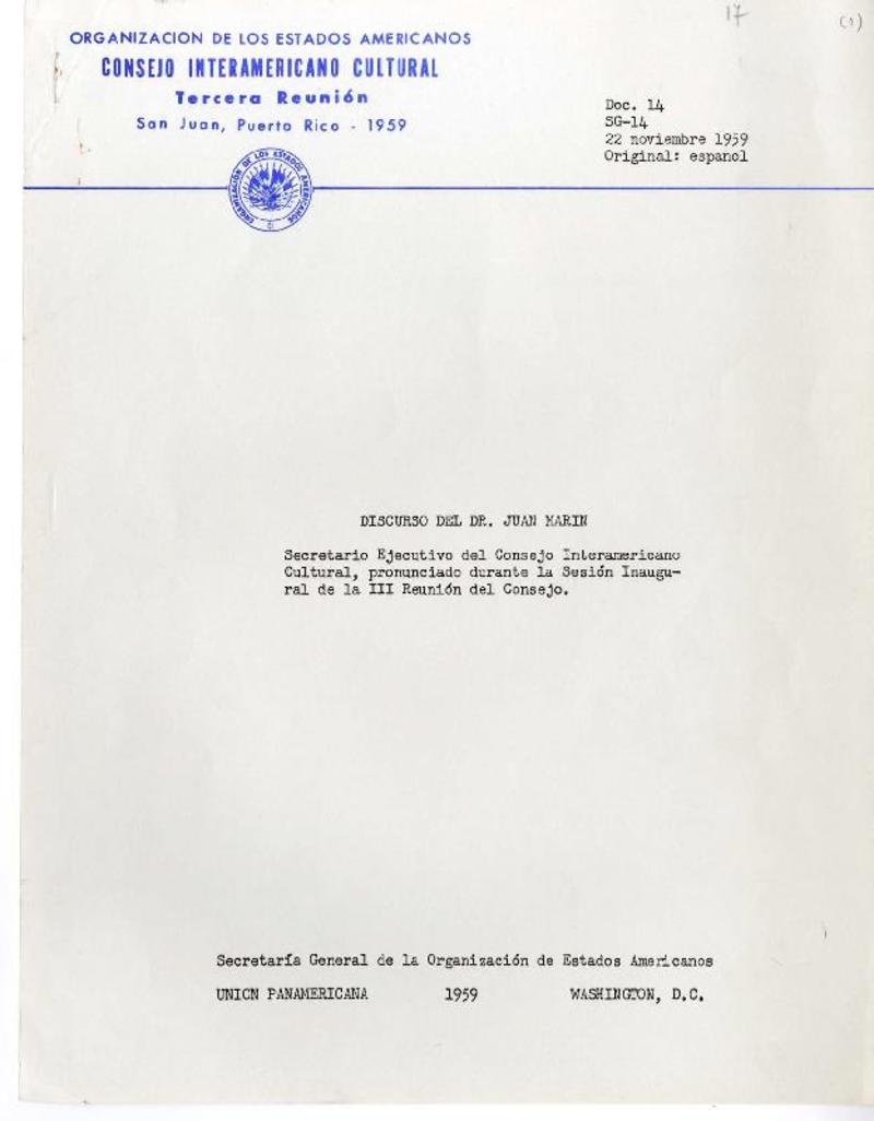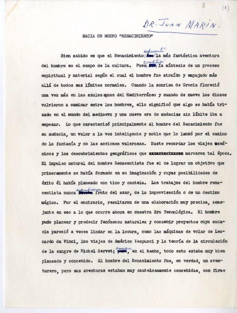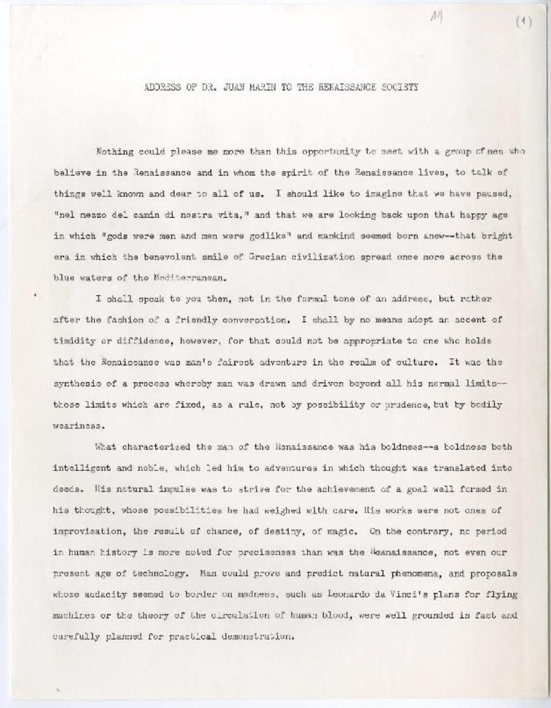 Address of Dr. Juan Marín to the Renaissance Society [manuscrito] Juan Marín.