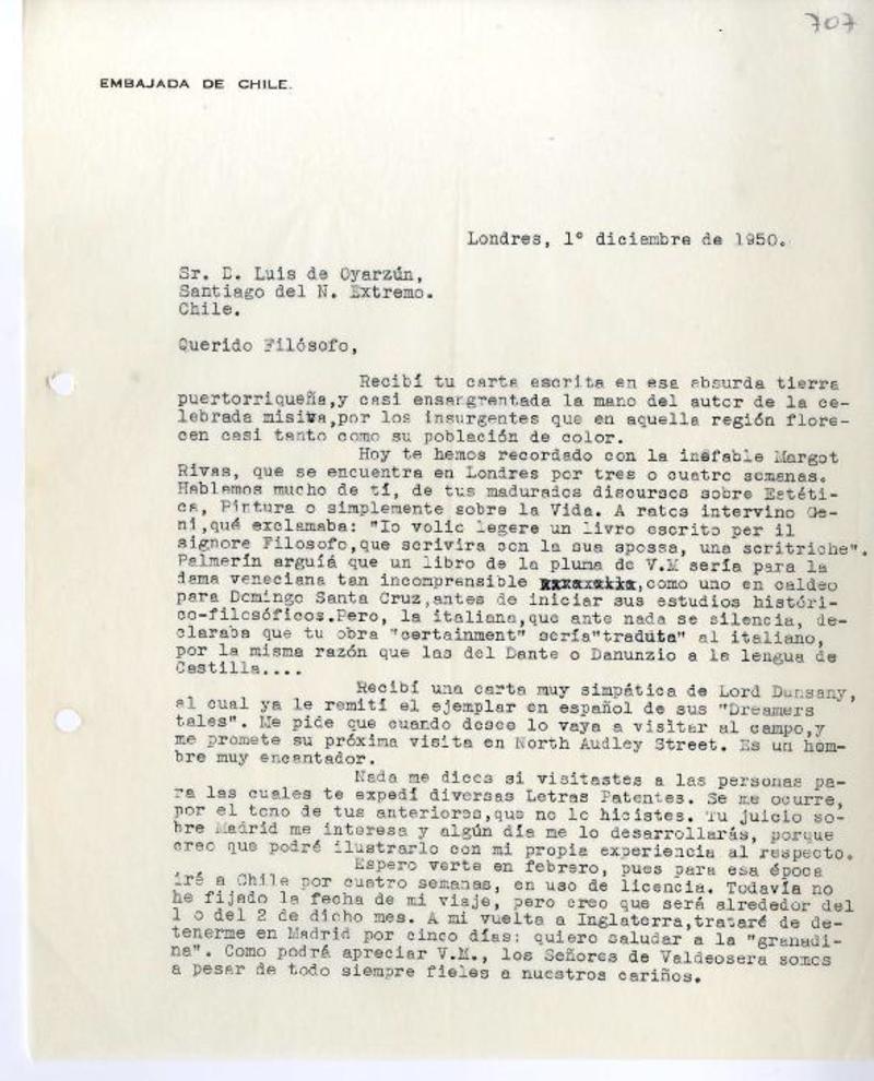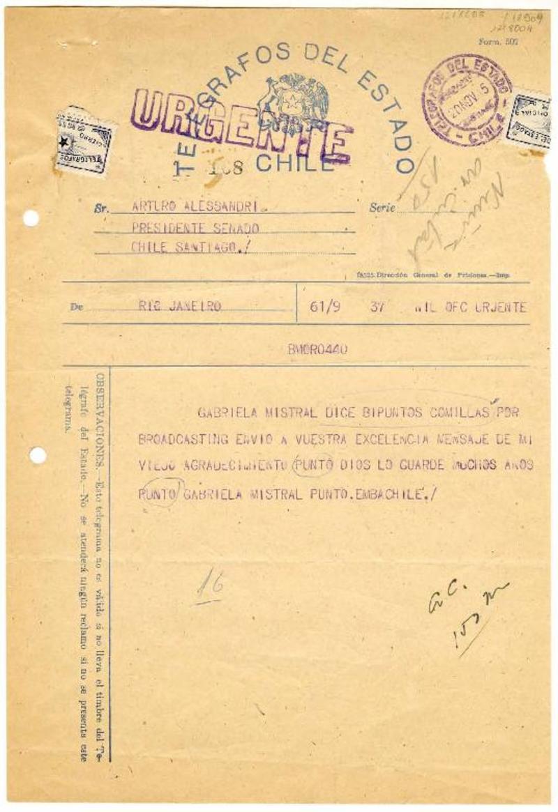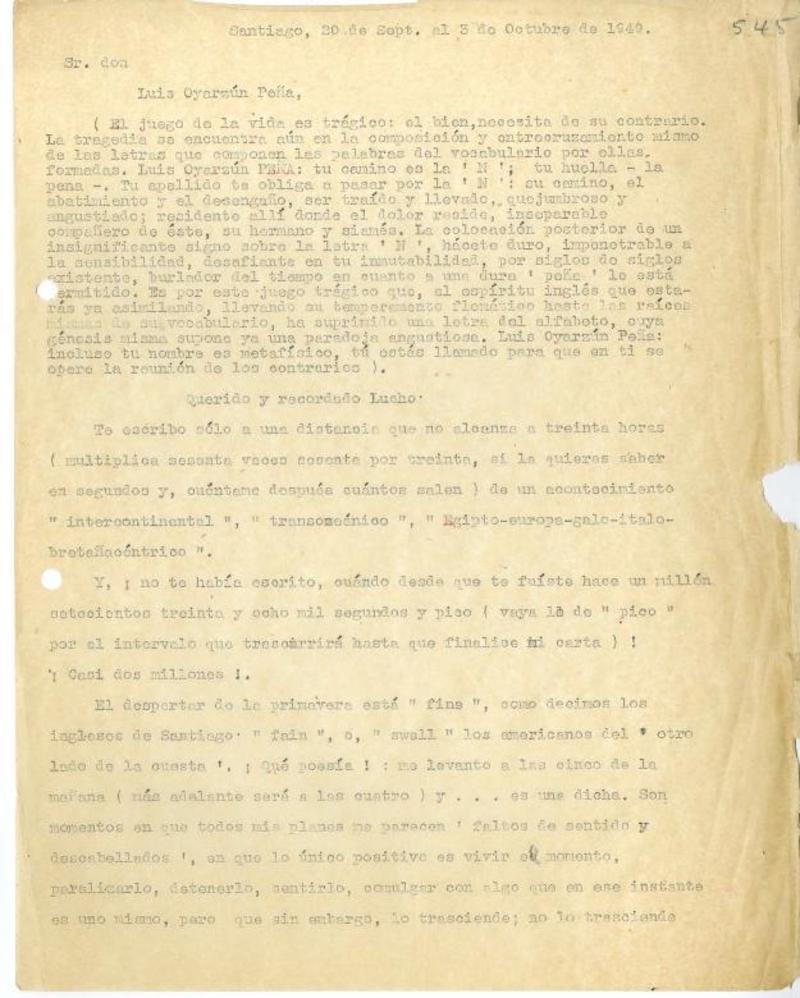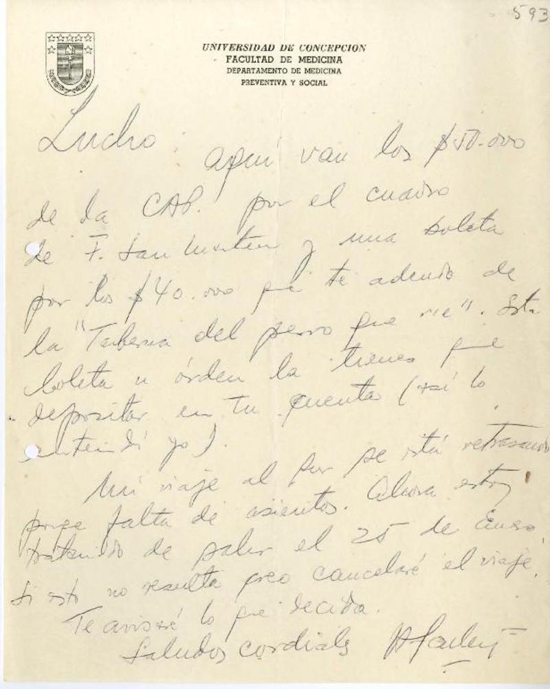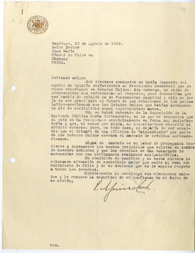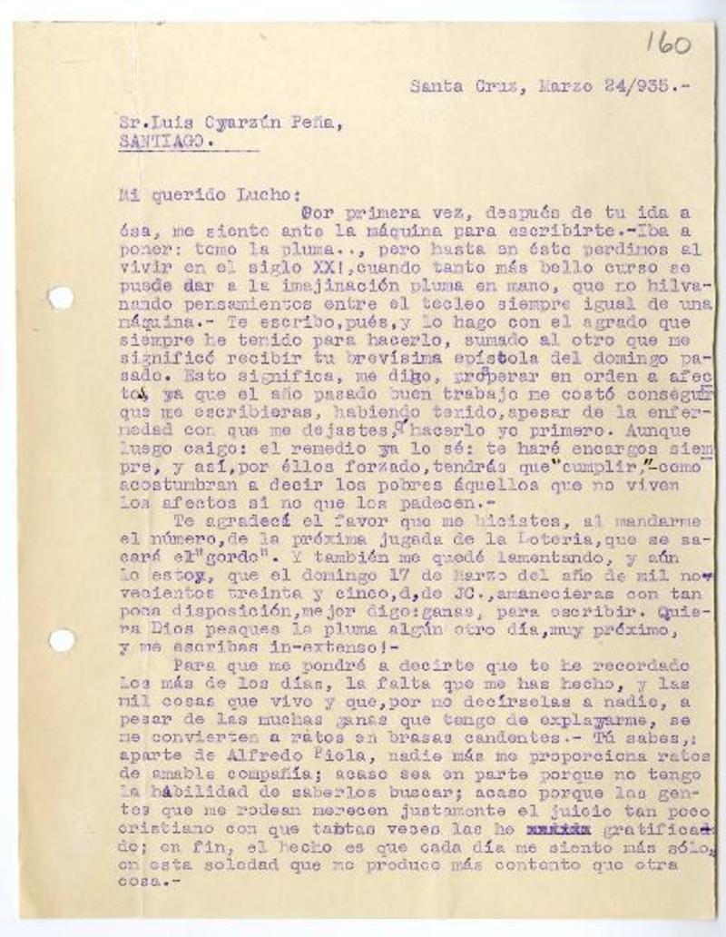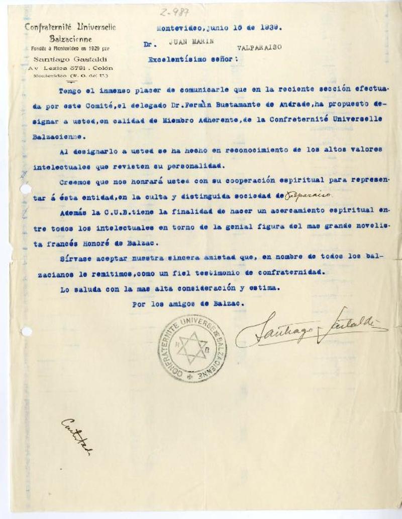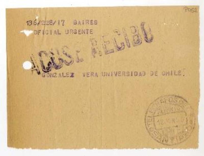 Valparaíso, Chile [a] Oscar castro e Isolda Pradel Carta, 1939, [manuscrito] Augusto D'Halmar.