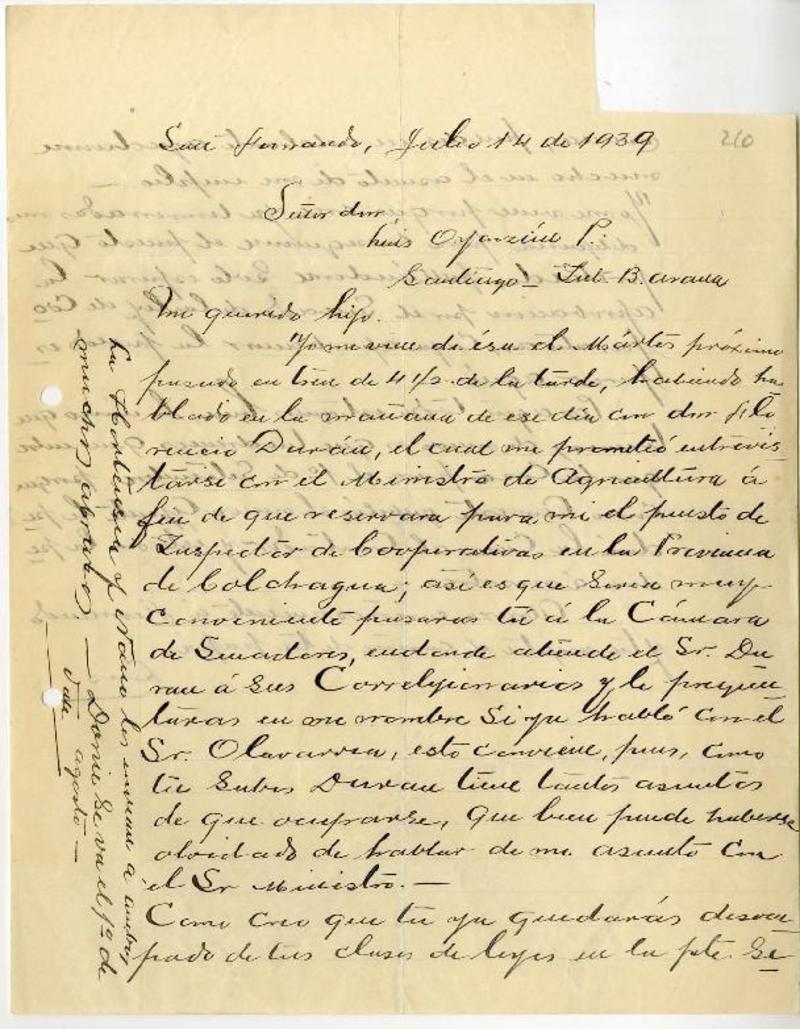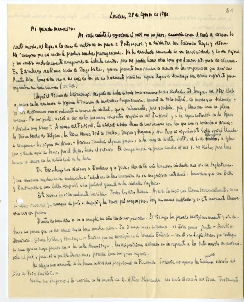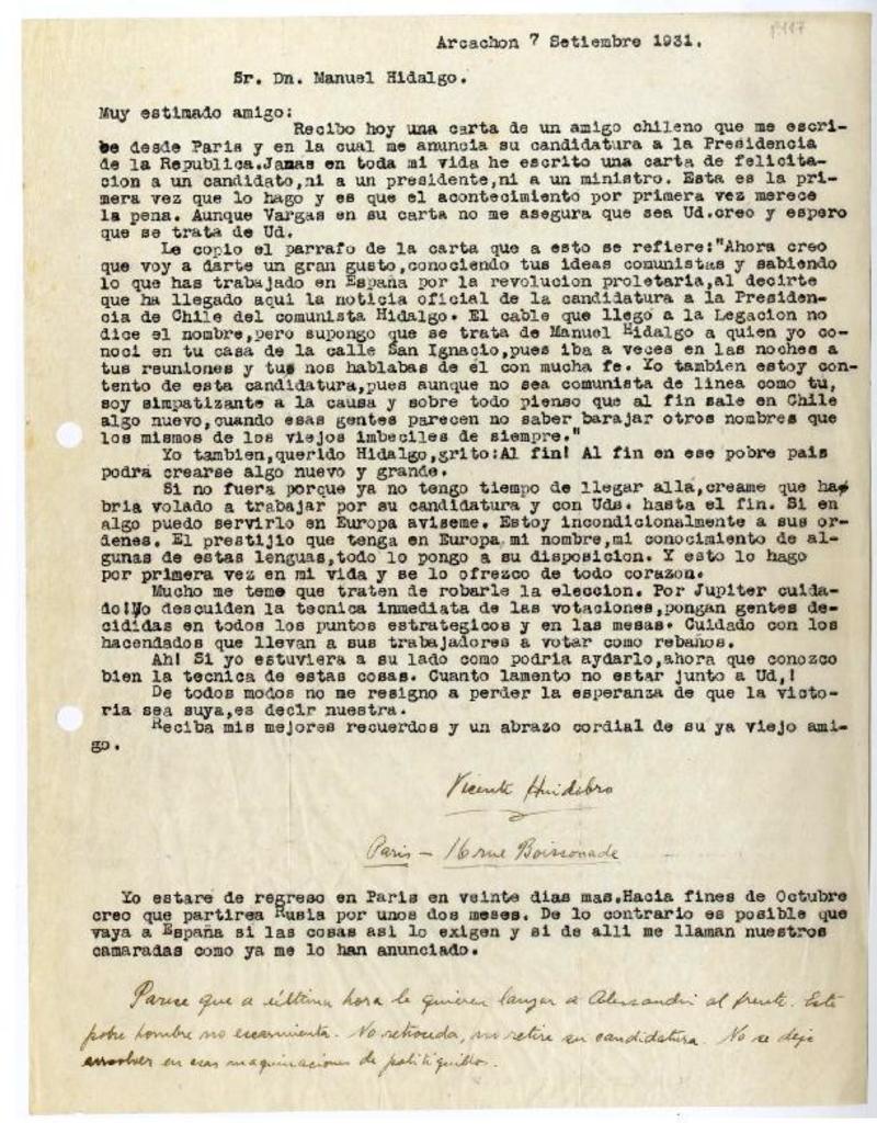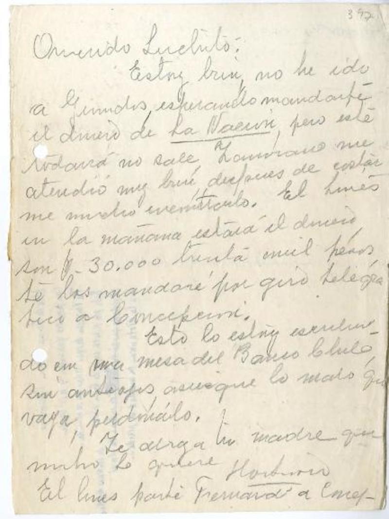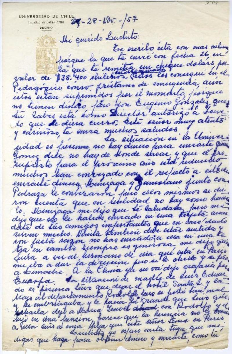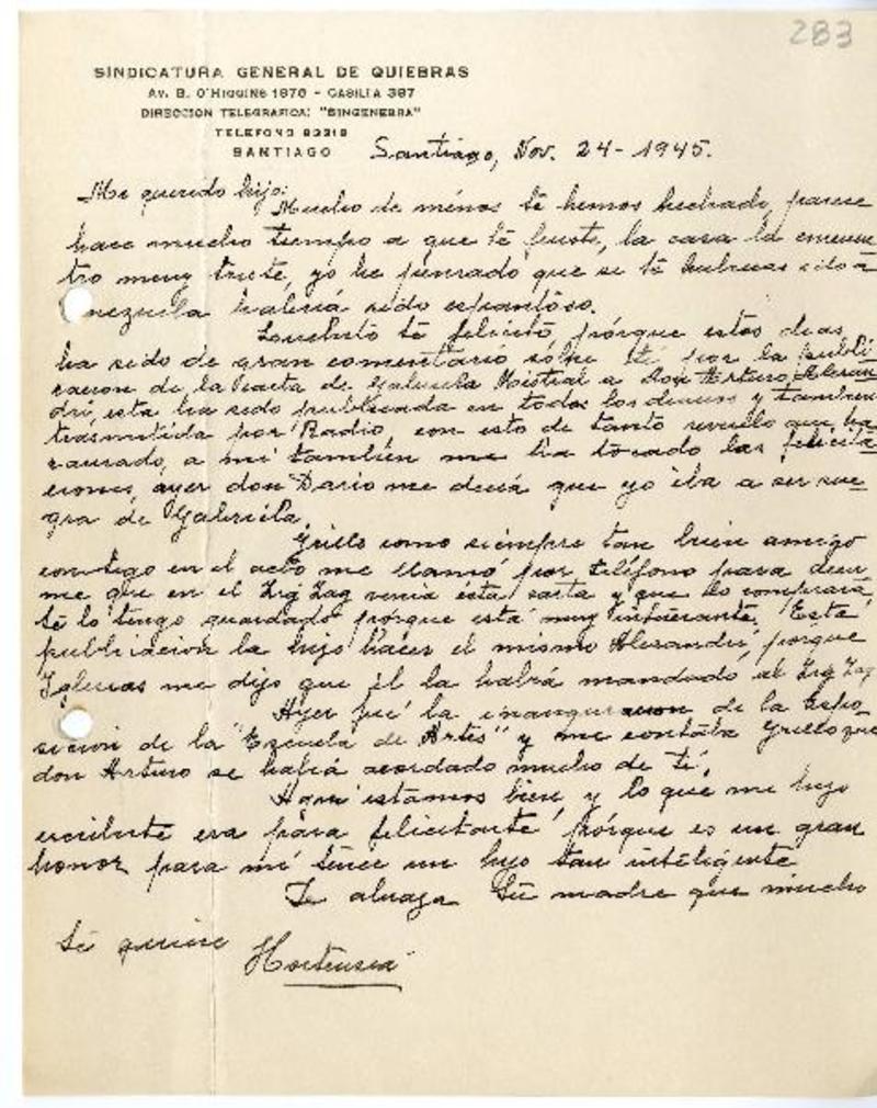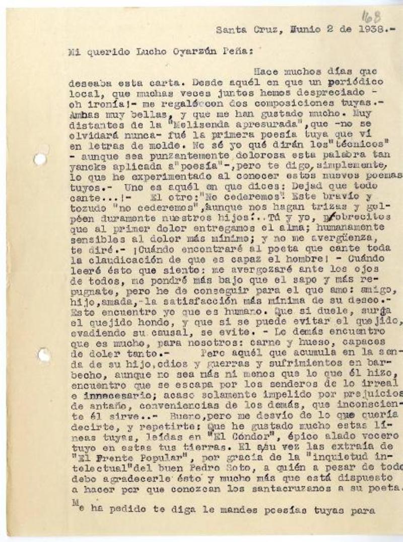 Valparaíso, Chile [a] Oscar castro e Isolda Pradel Carta, 1939, [manuscrito] Augusto D'Halmar.