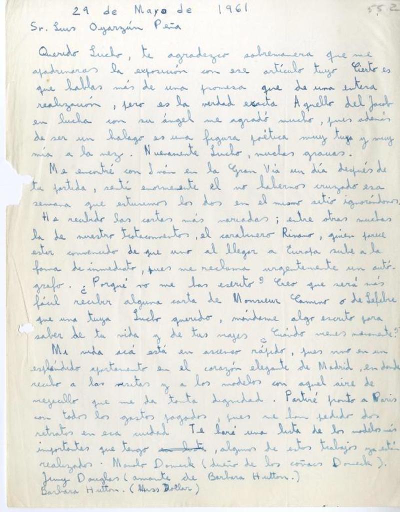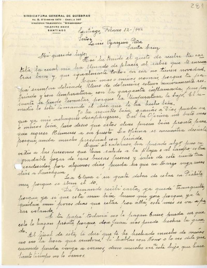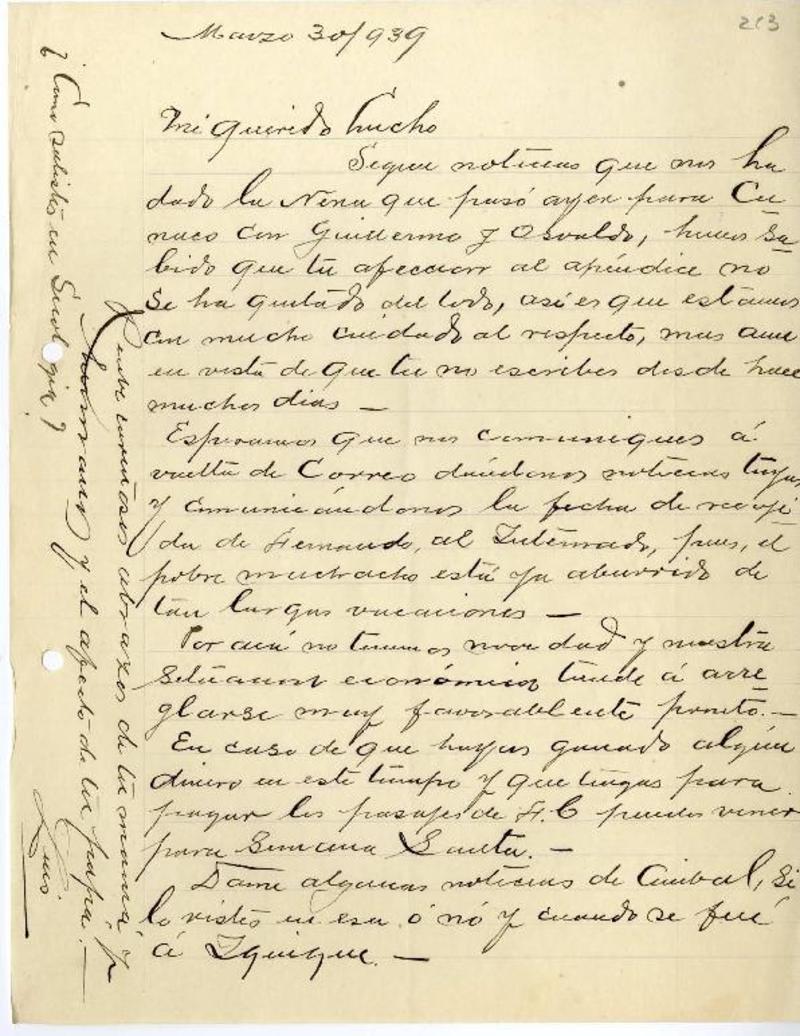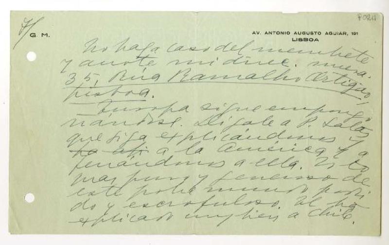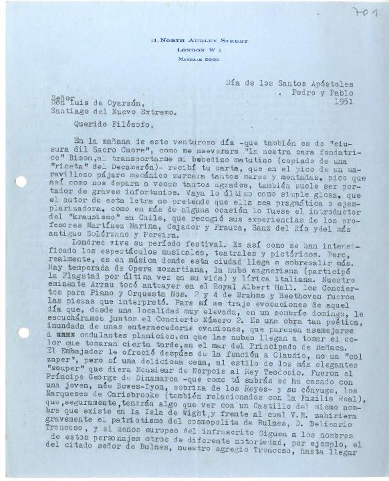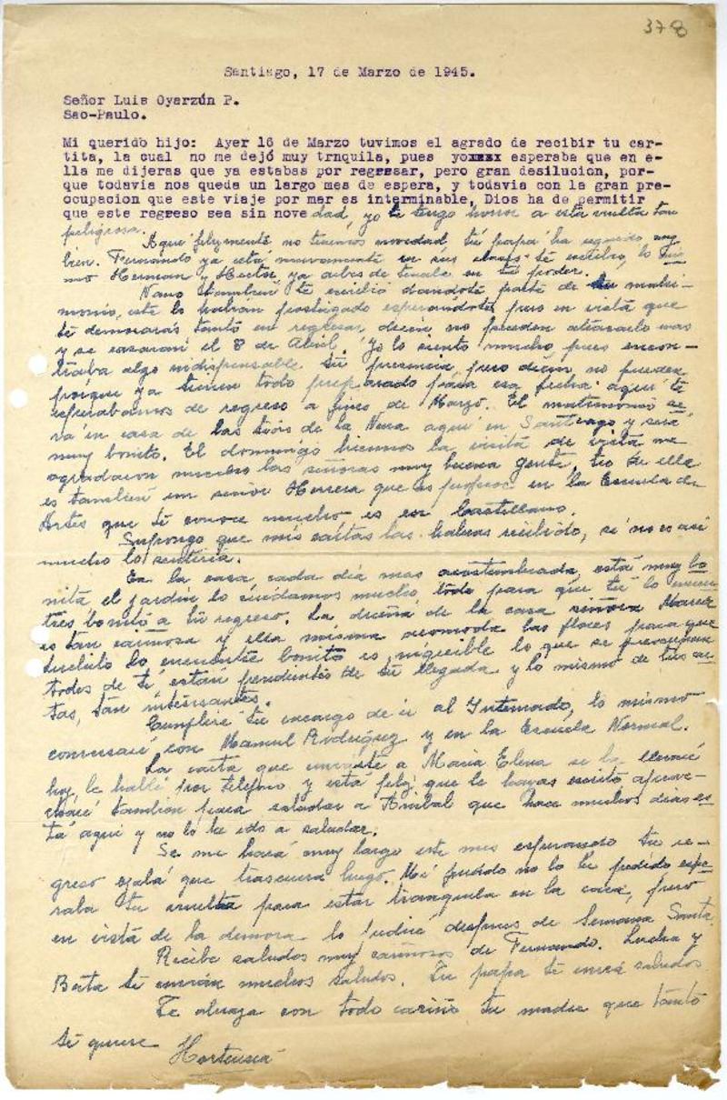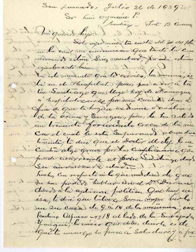 Valparaíso, Chile [a] Oscar castro e Isolda Pradel Carta, 1939, [manuscrito] Augusto D'Halmar.
