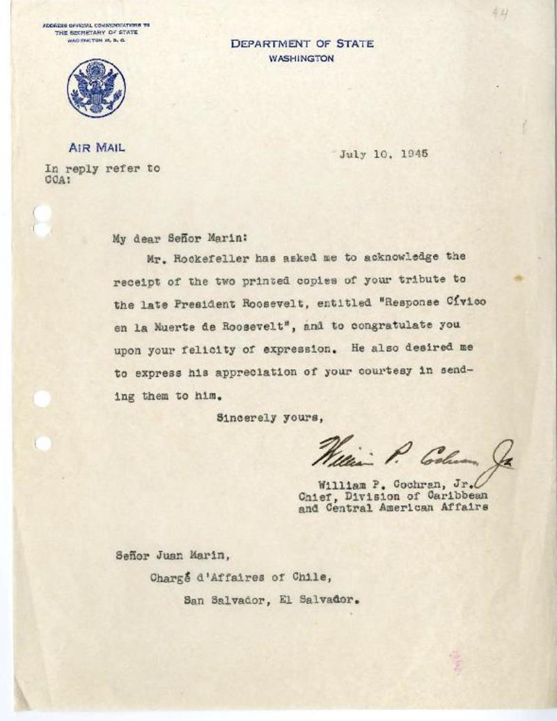 Washington D.C. [a] Oscar Castro, Rancagua, Chile Carta, 1942 julio 28, [manuscrito] Robert Spiers Benjamin.