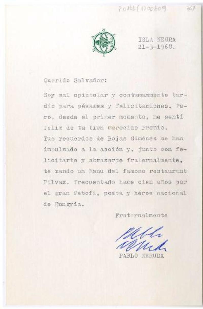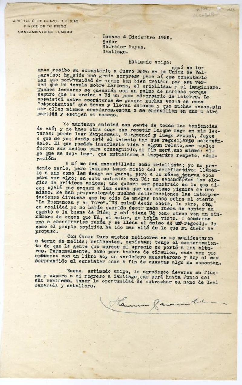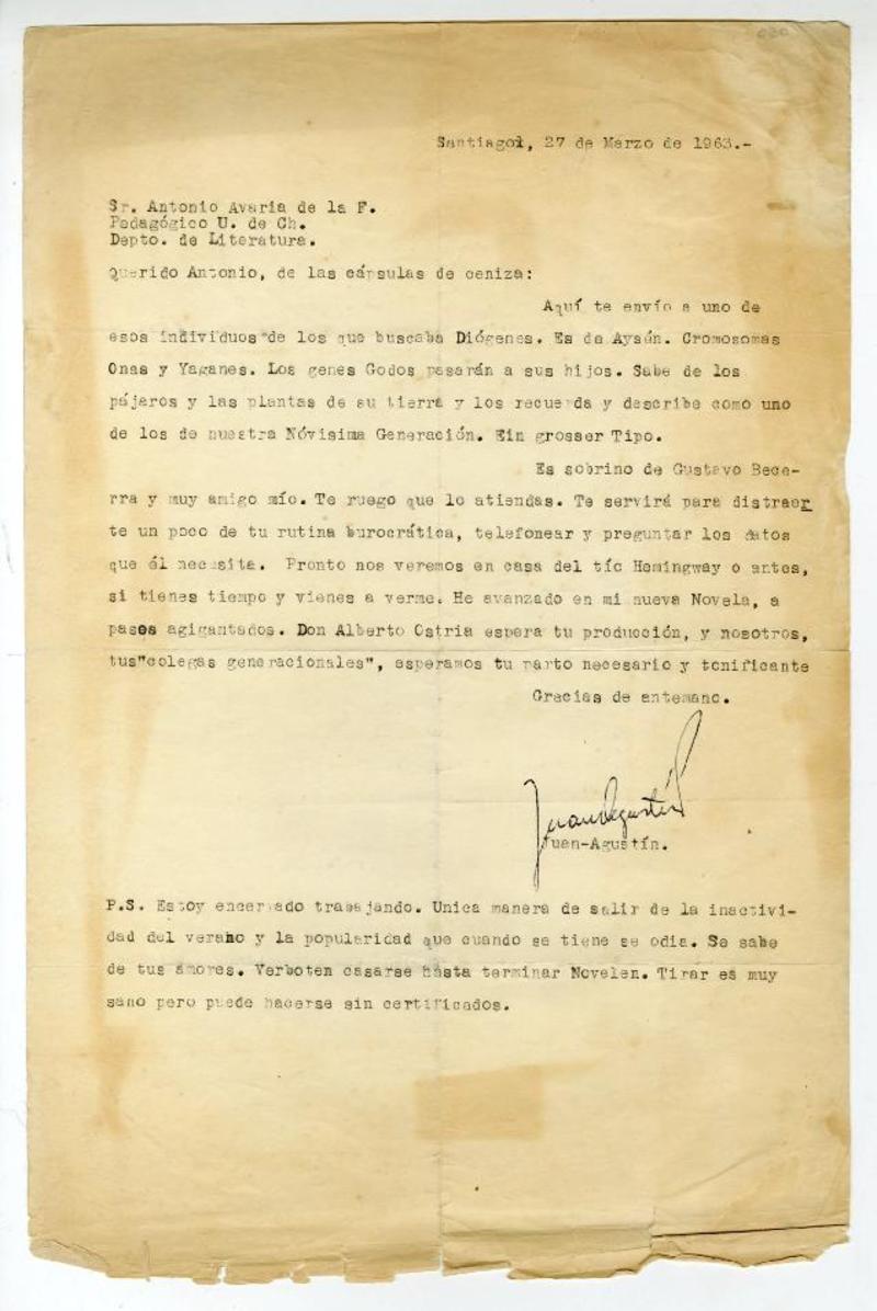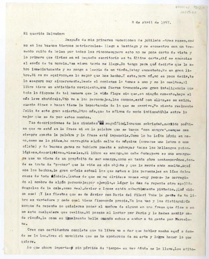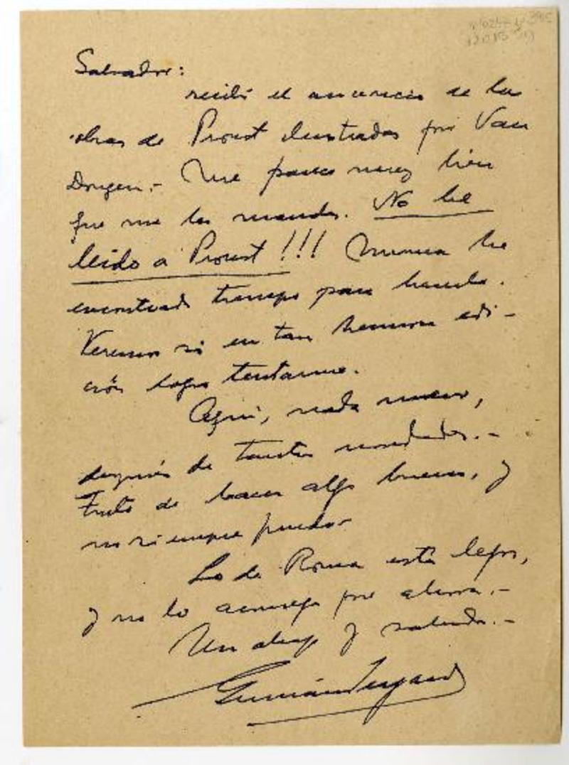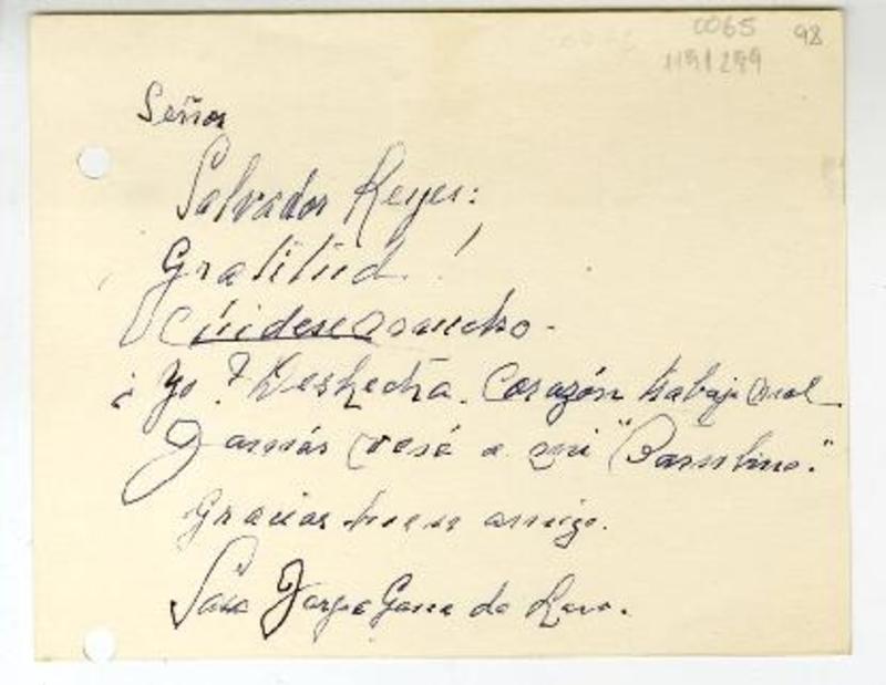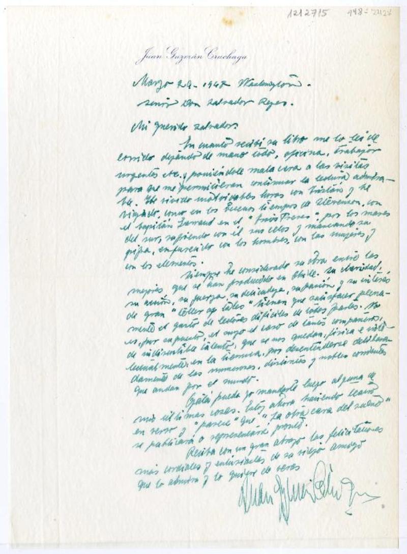 Guzmán Cruchaga, Juan - Correspondencia - Autores chilenos - Manuscritos chilenos - Reyes, Salvador