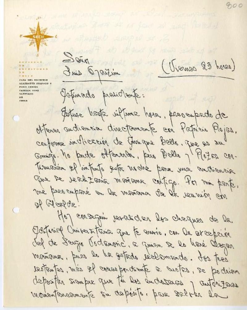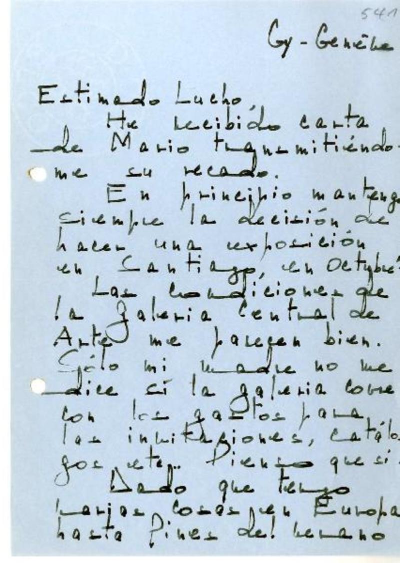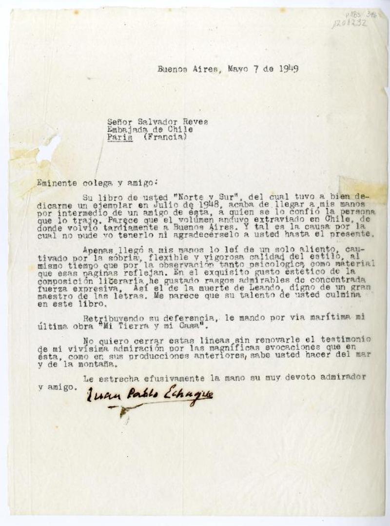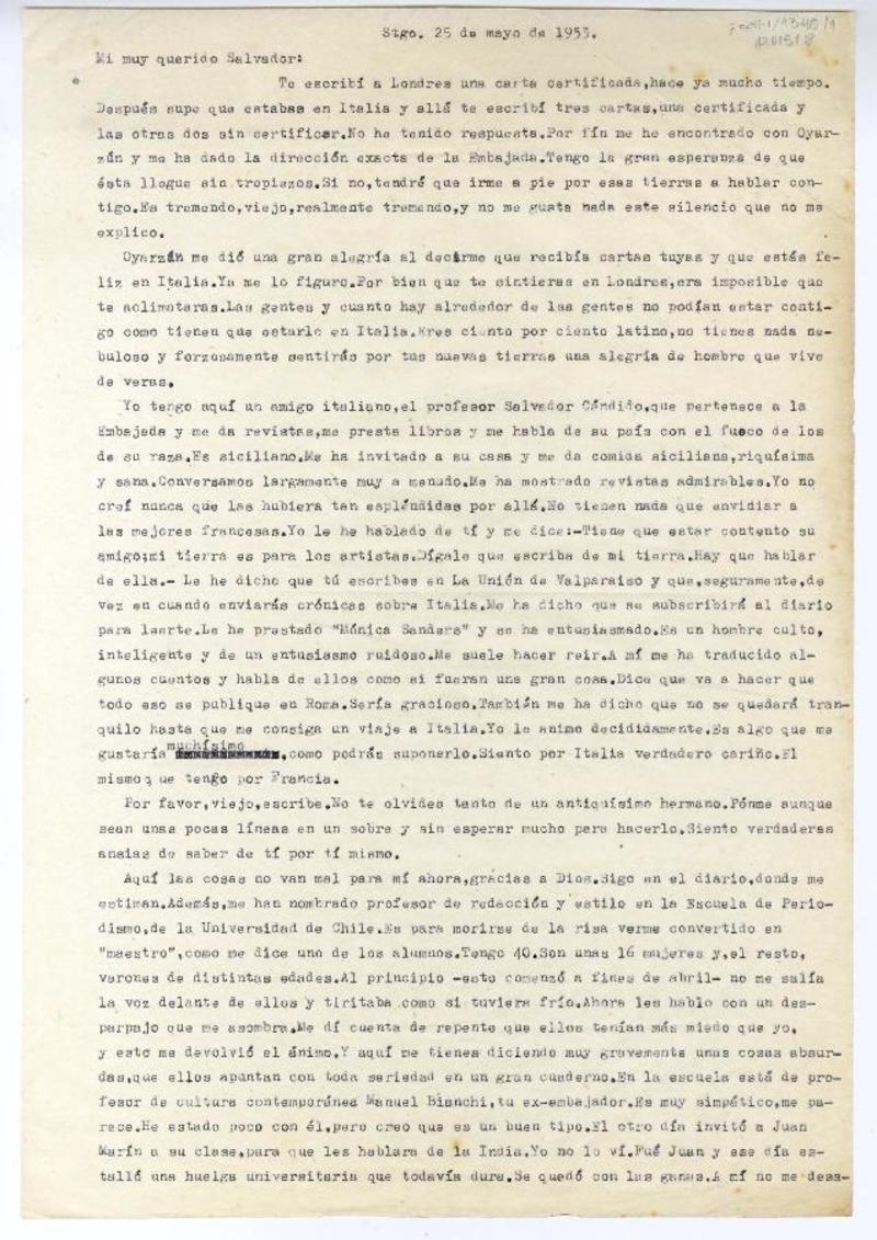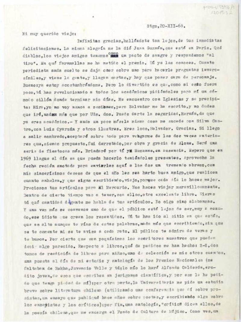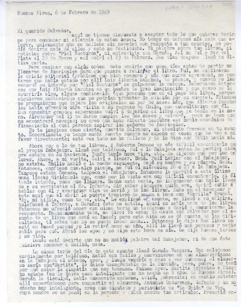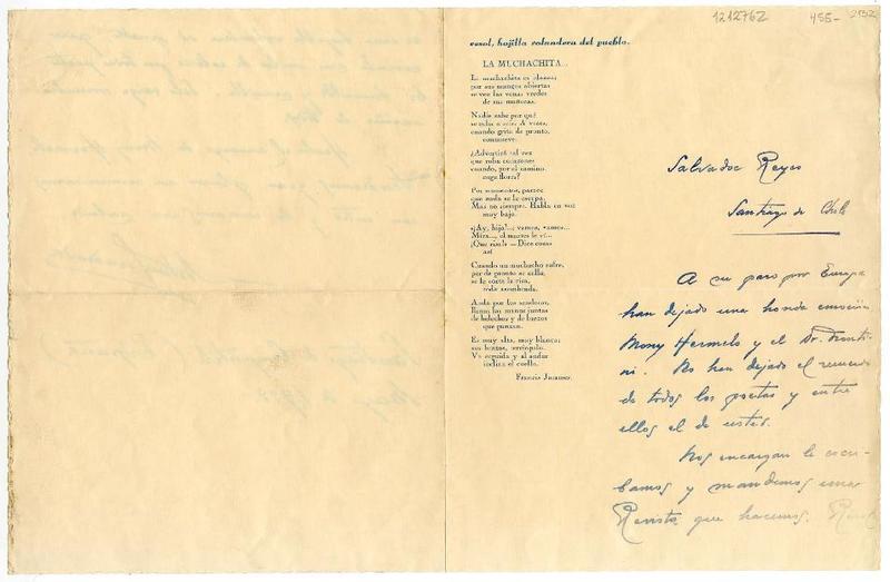 Guzmán Cruchaga, Juan - Correspondencia - Autores chilenos - Manuscritos chilenos - Reyes, Salvador