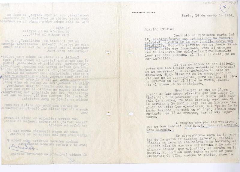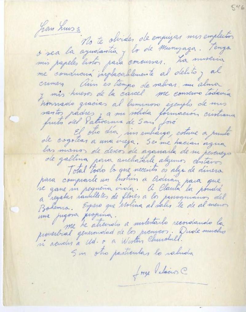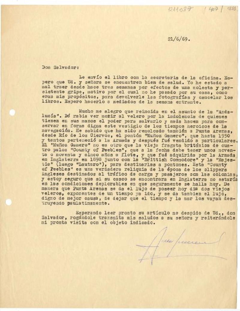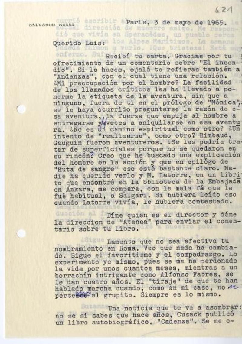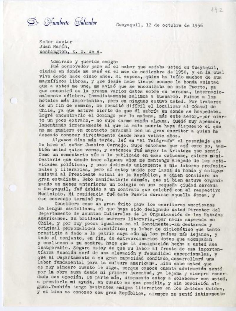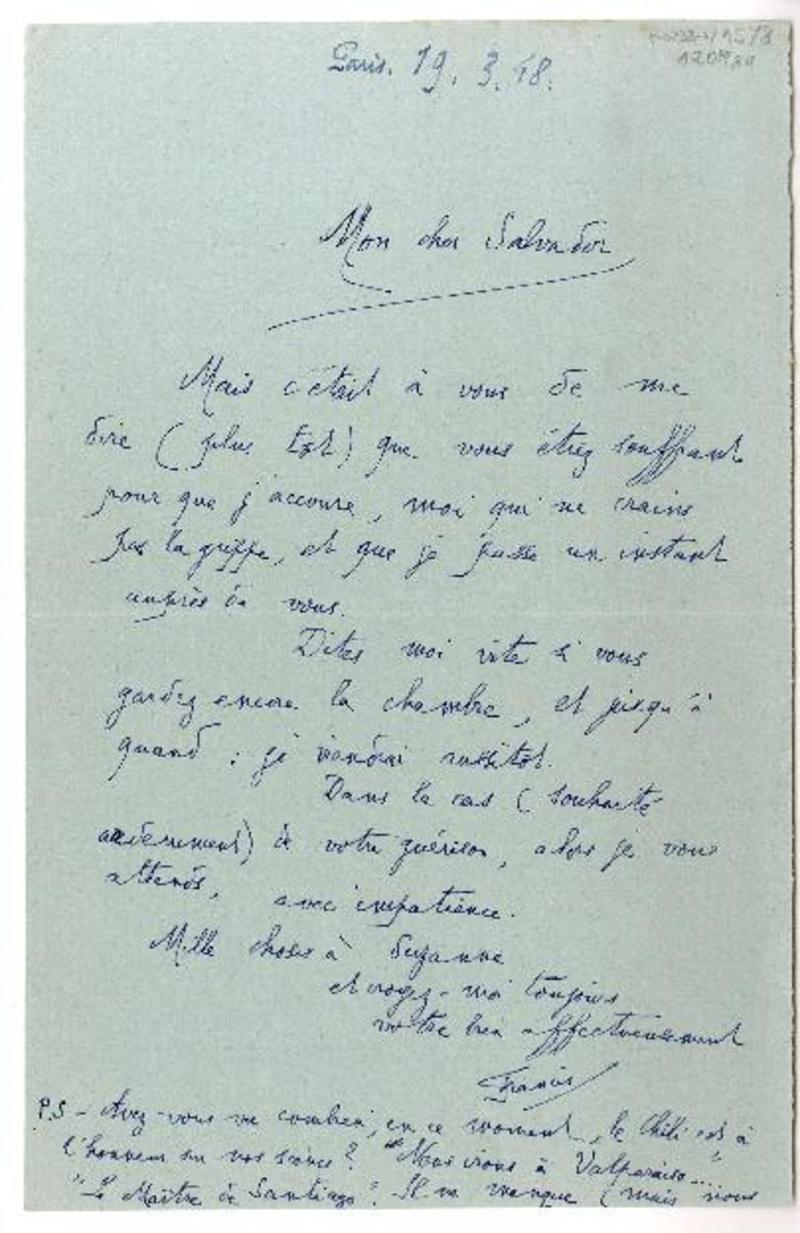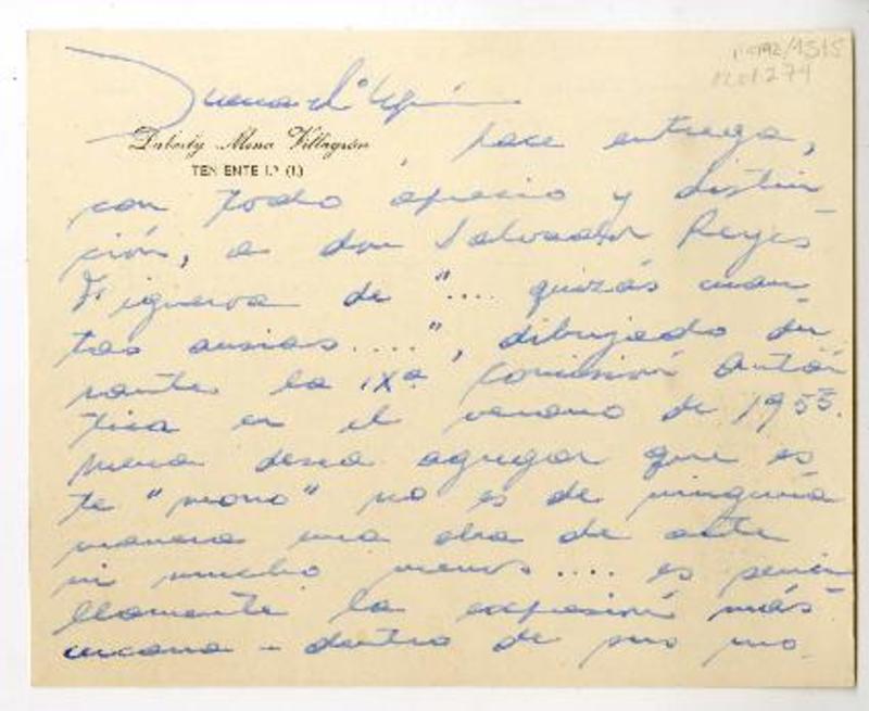 Guzmán Cruchaga, Juan - Correspondencia - Autores chilenos - Manuscritos chilenos - Reyes, Salvador