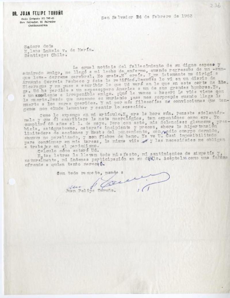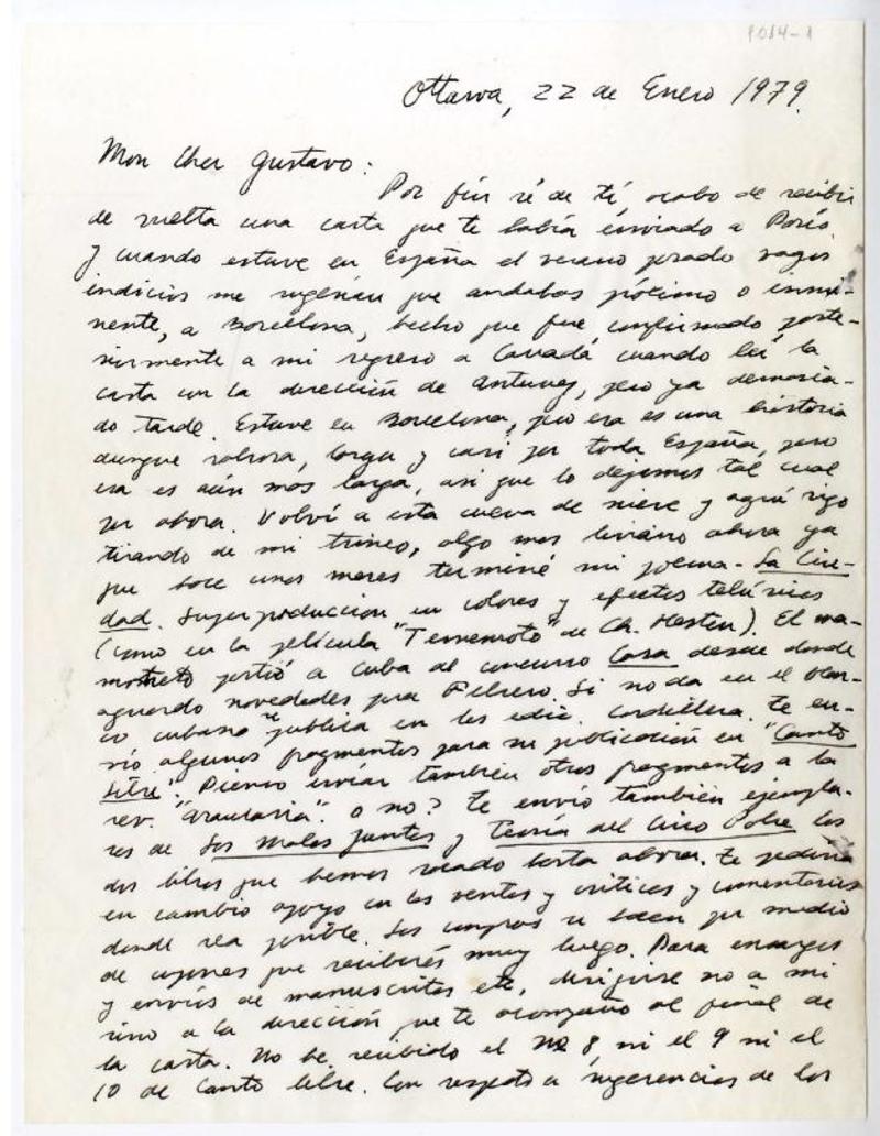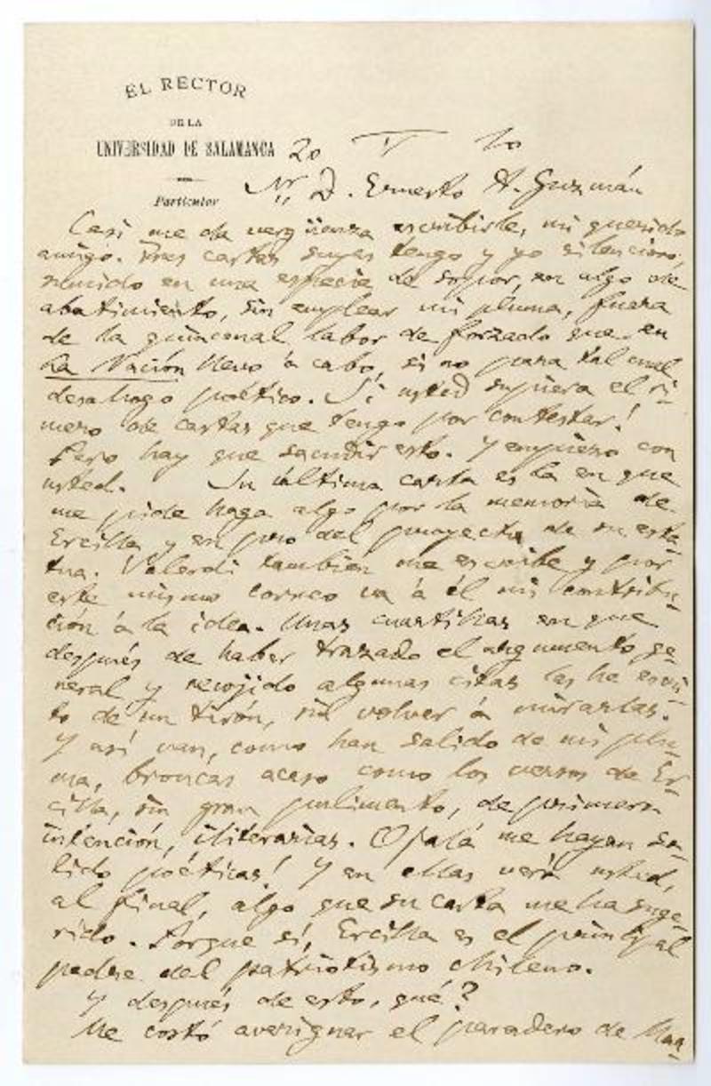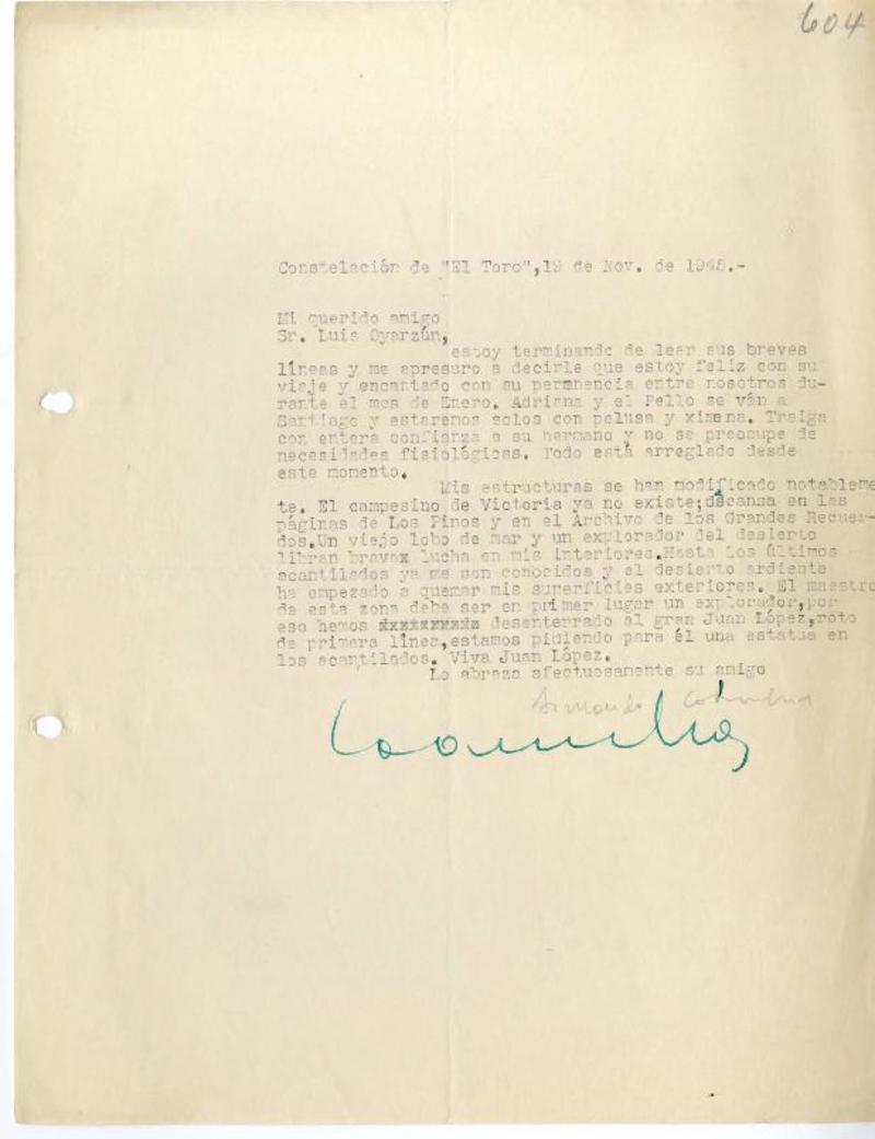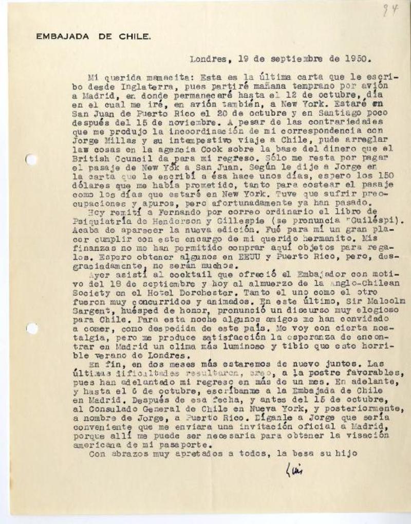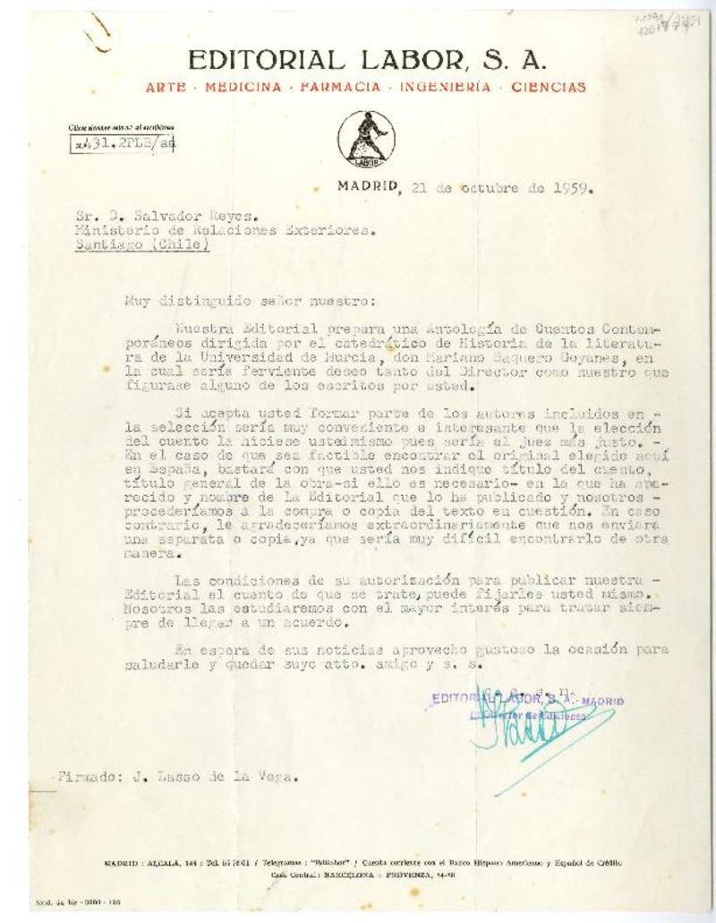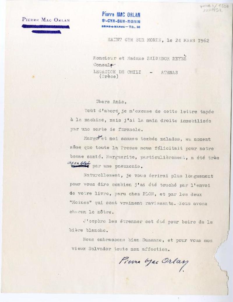 Guzmán Cruchaga, Juan - Correspondencia - Autores chilenos - Manuscritos chilenos - Reyes, Salvador