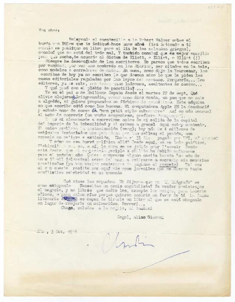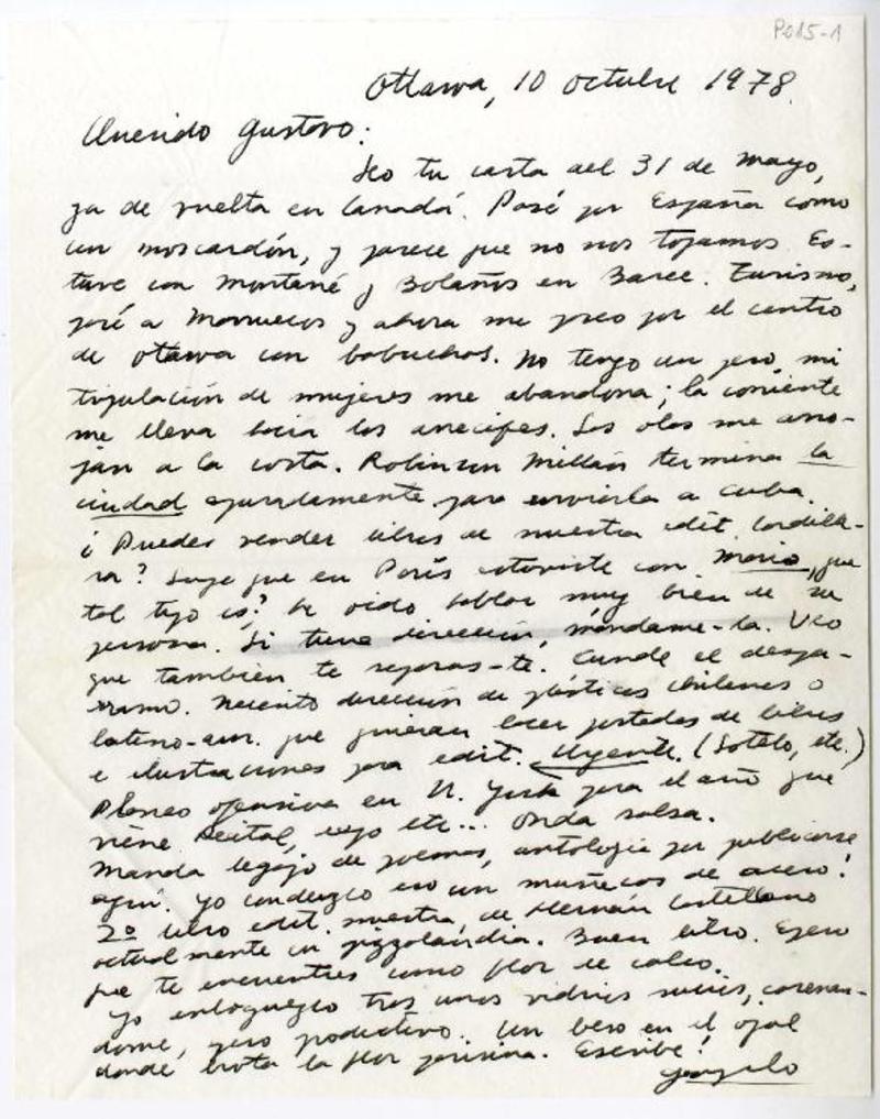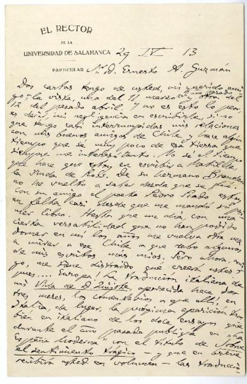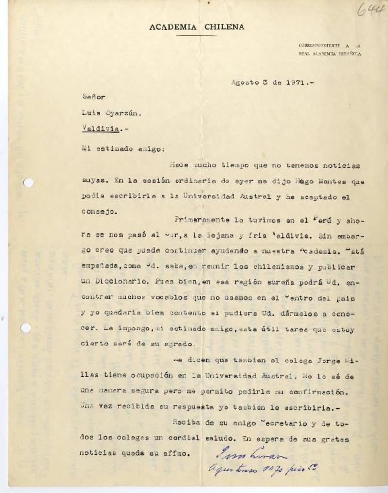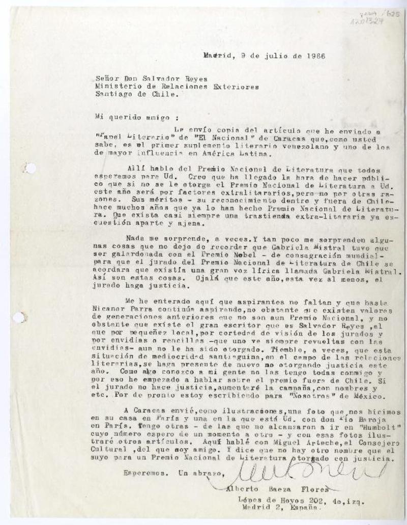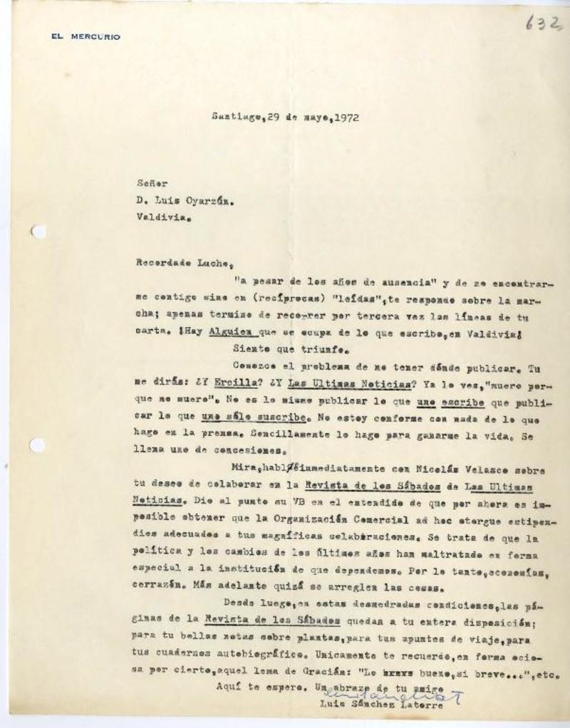Guzmán Cruchaga, Juan - Correspondencia - Autores chilenos - Manuscritos chilenos - Reyes, Salvador