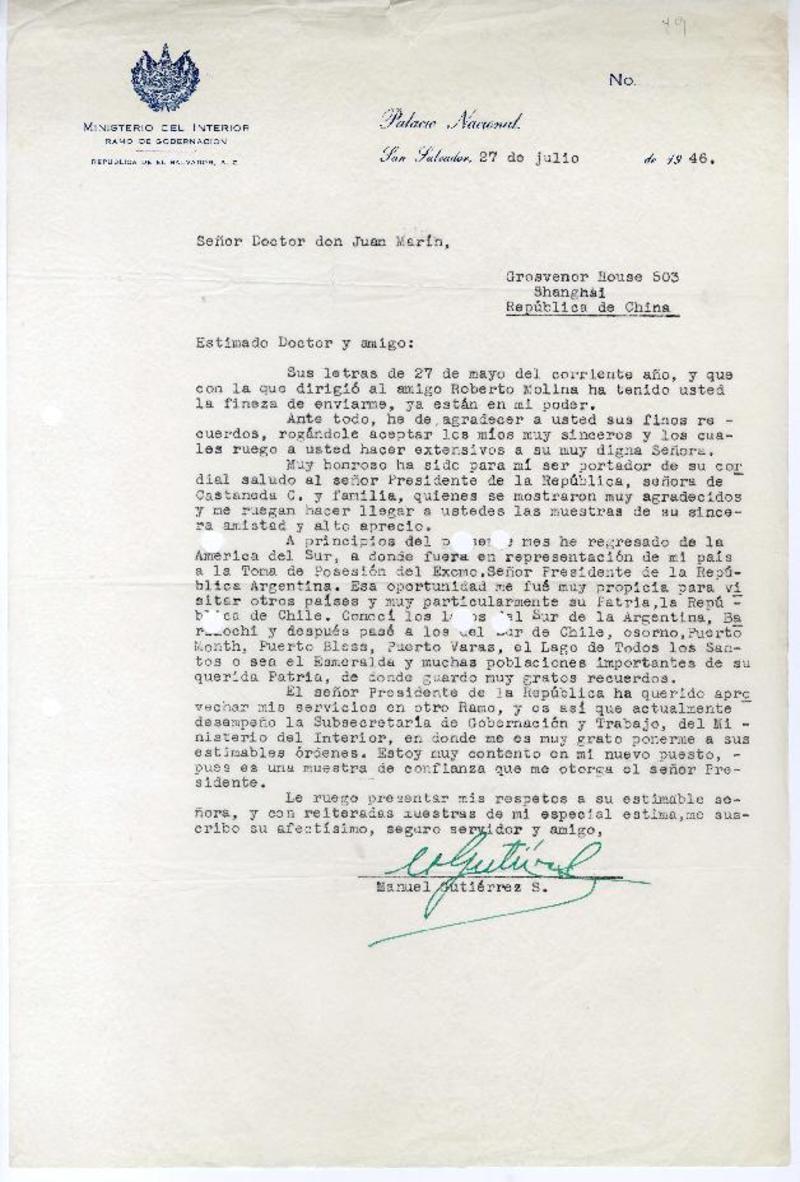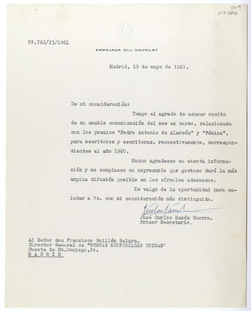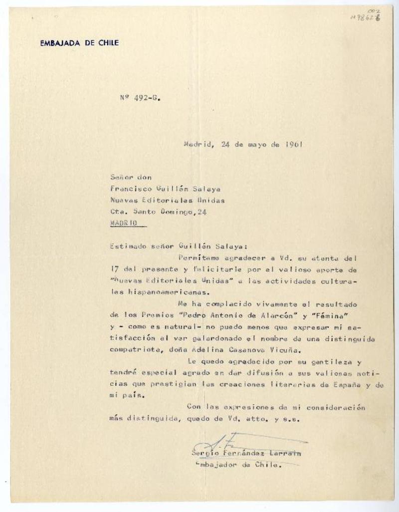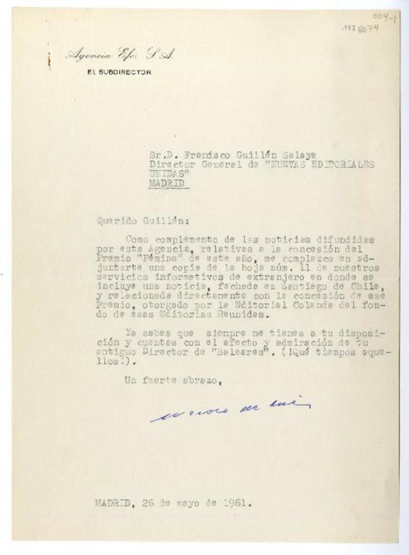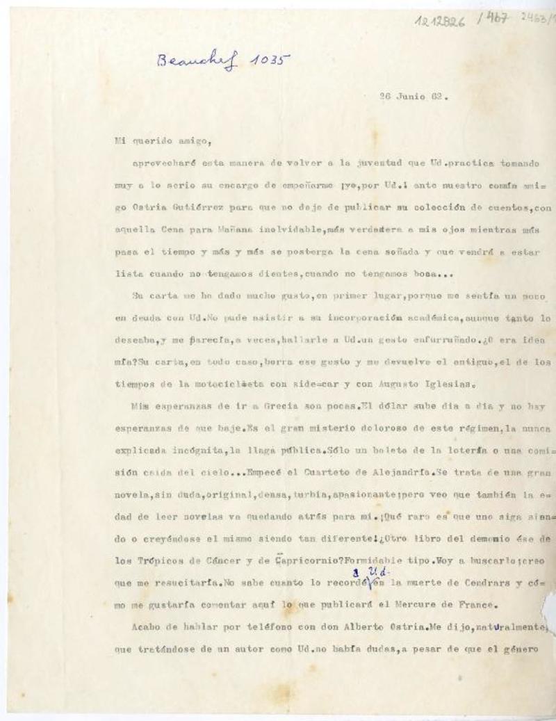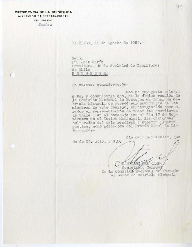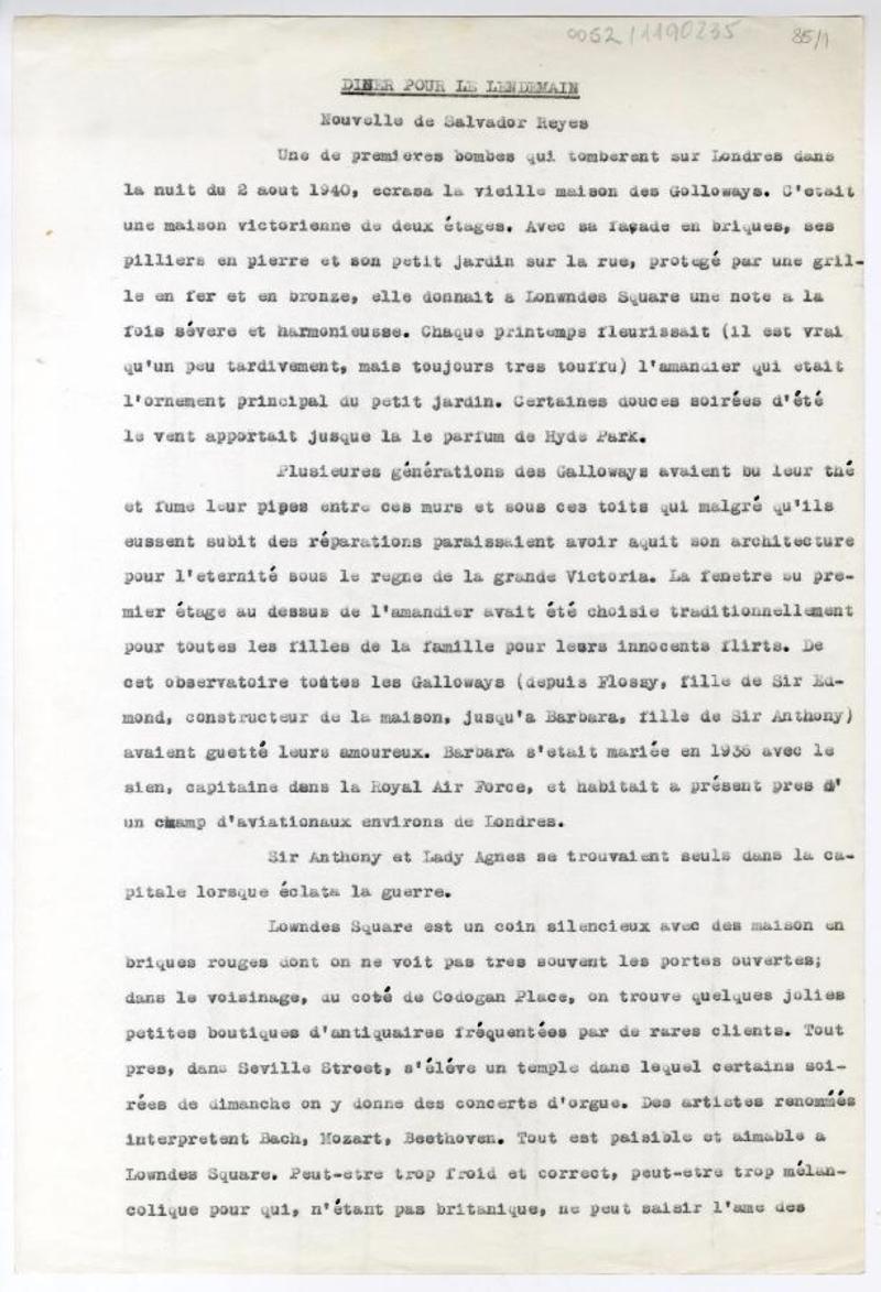 Guzmán Cruchaga, Juan - Correspondencia - Autores chilenos - Manuscritos chilenos - Reyes, Salvador