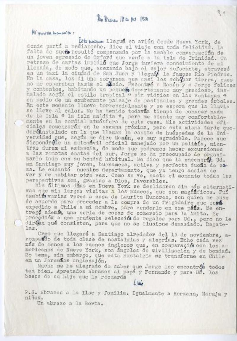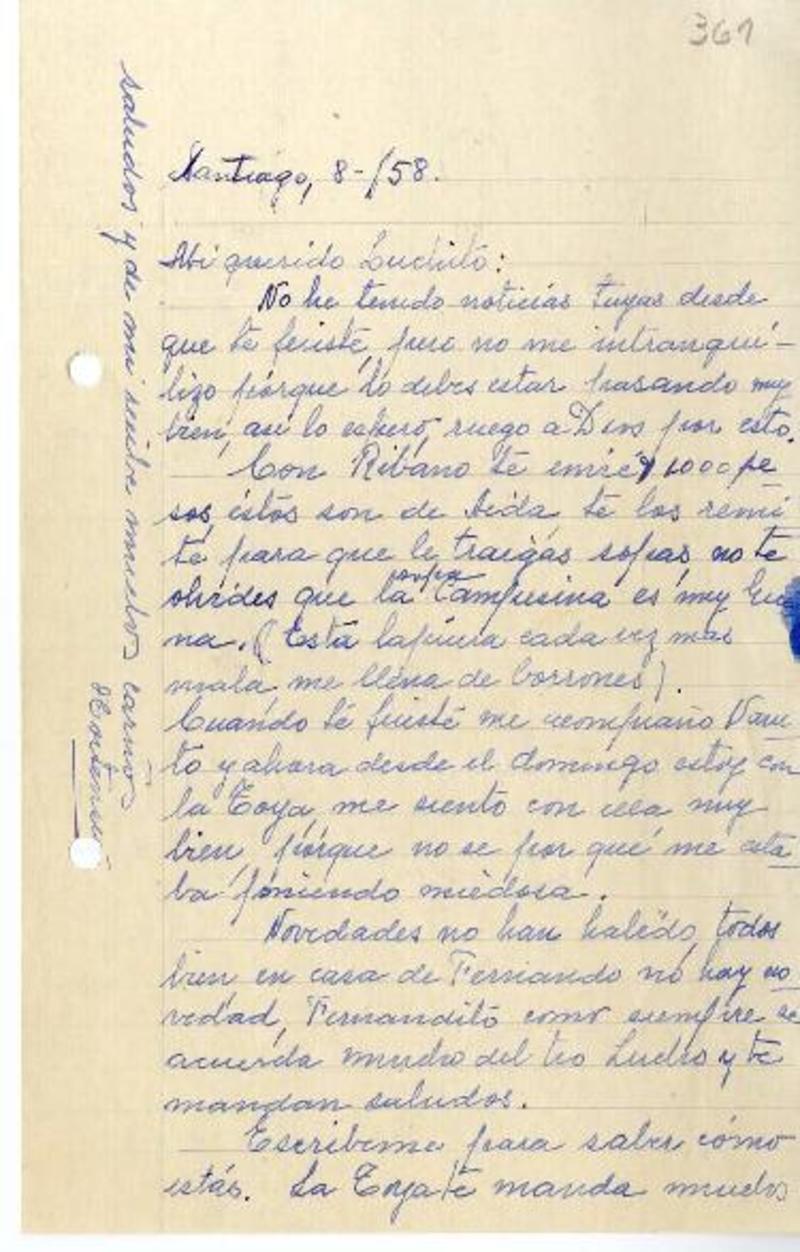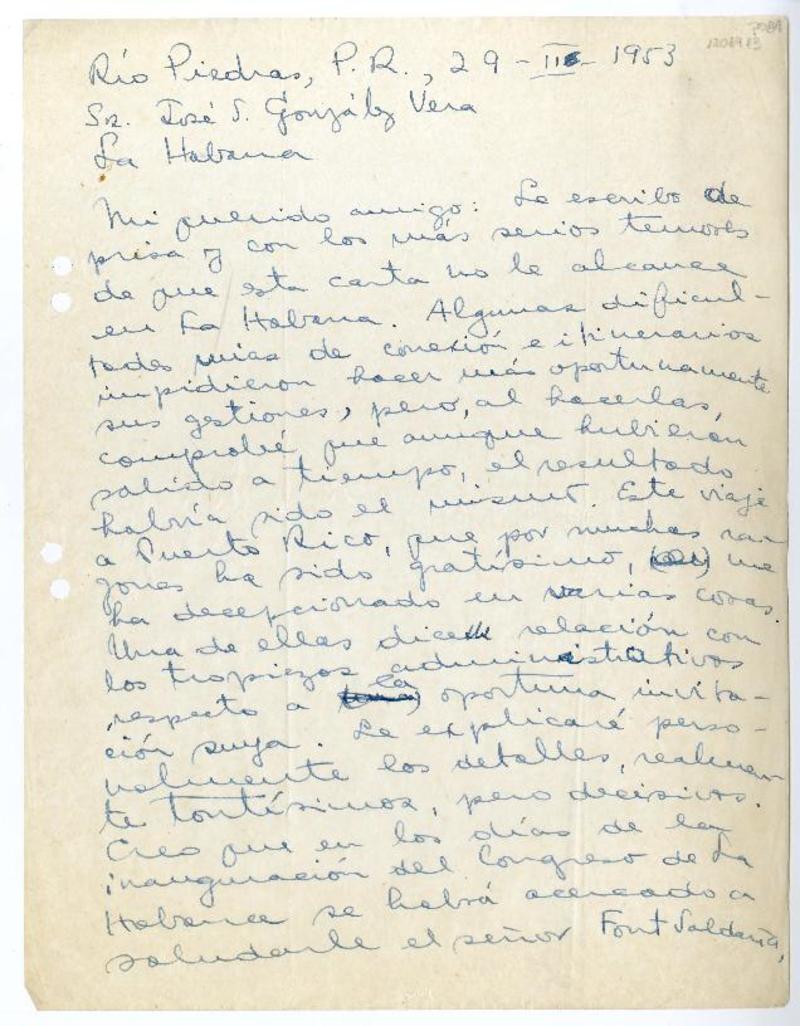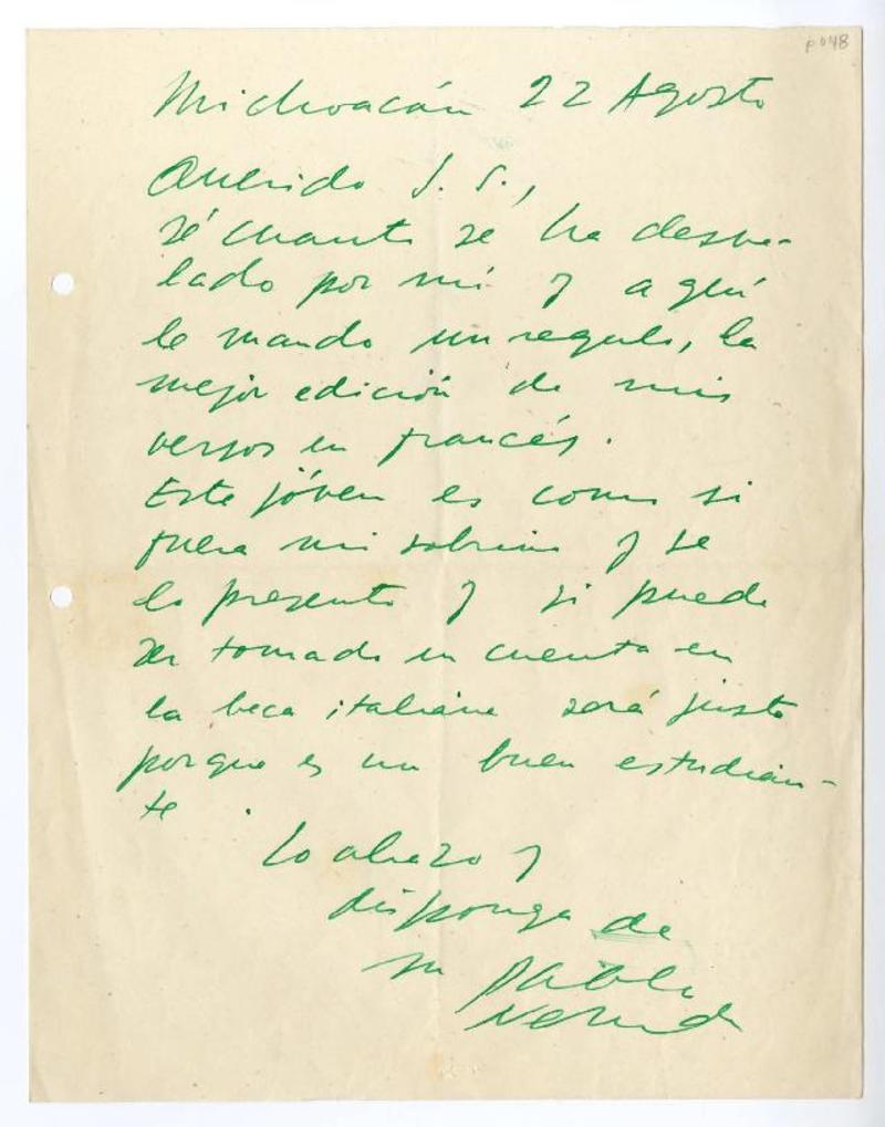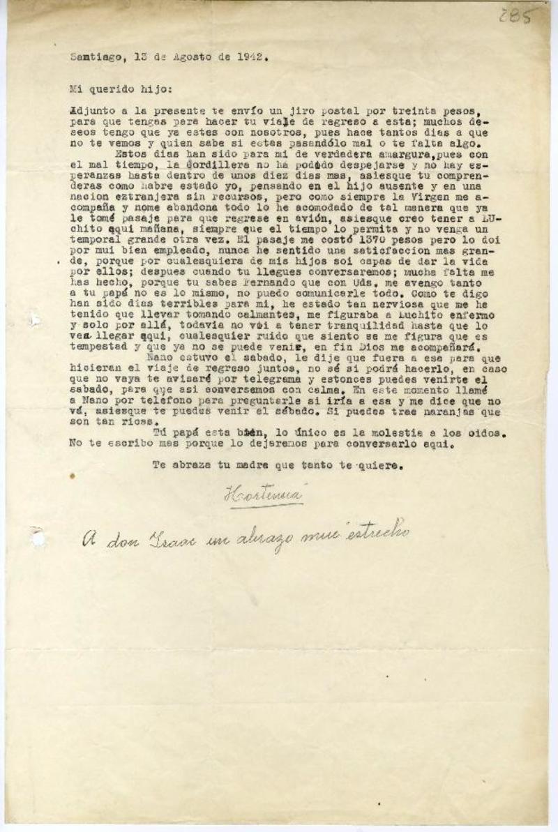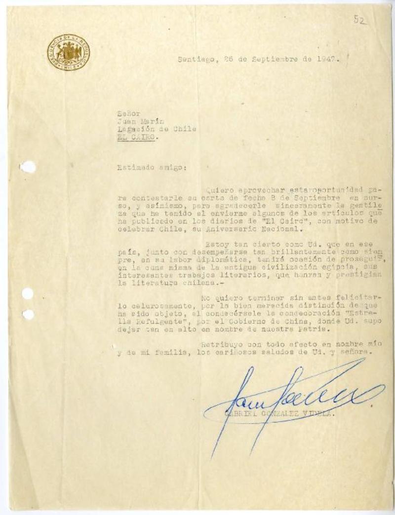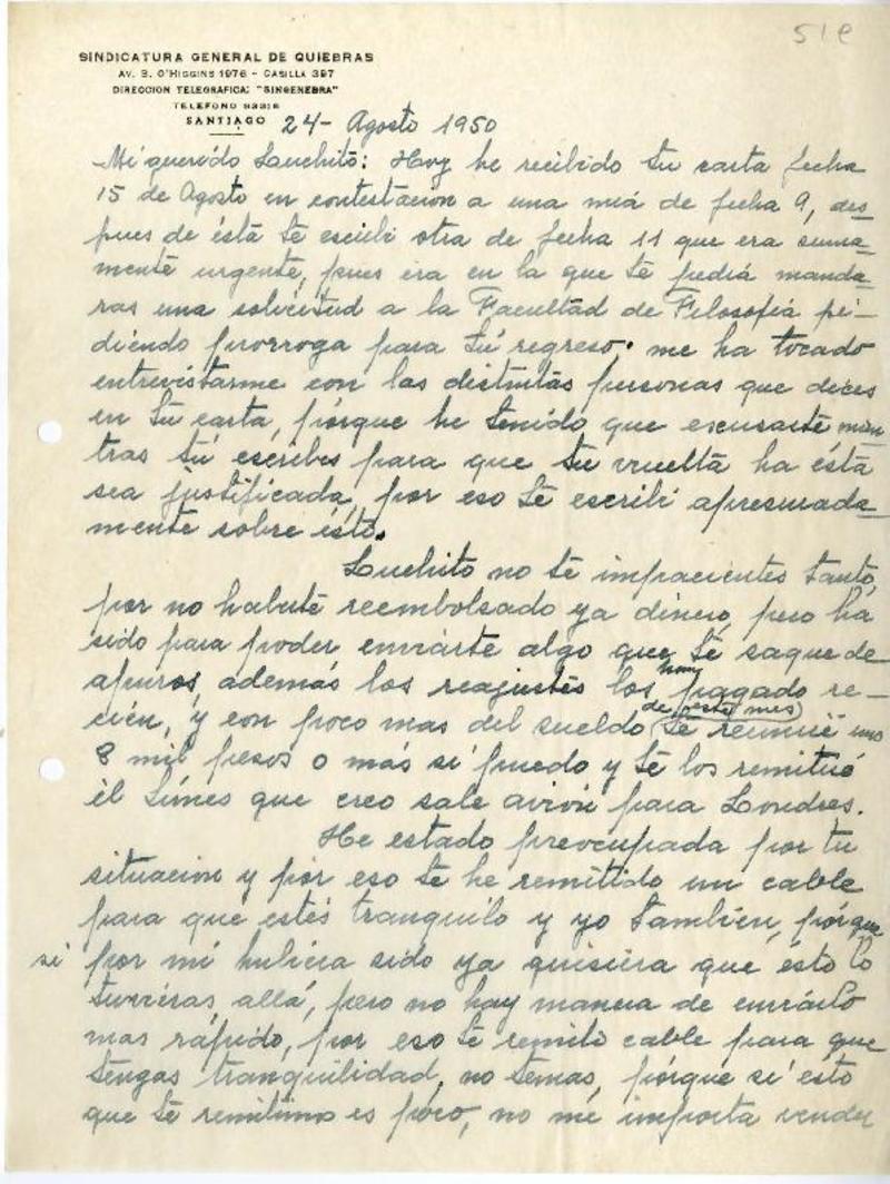 Veracruz, México, [a] José Santos González Vera Carta, 1949 agosto 25, [manuscrito] Gabriela Mistral.