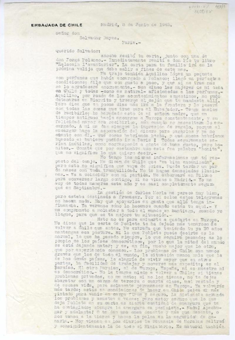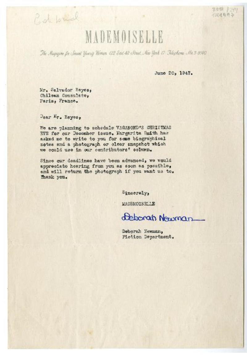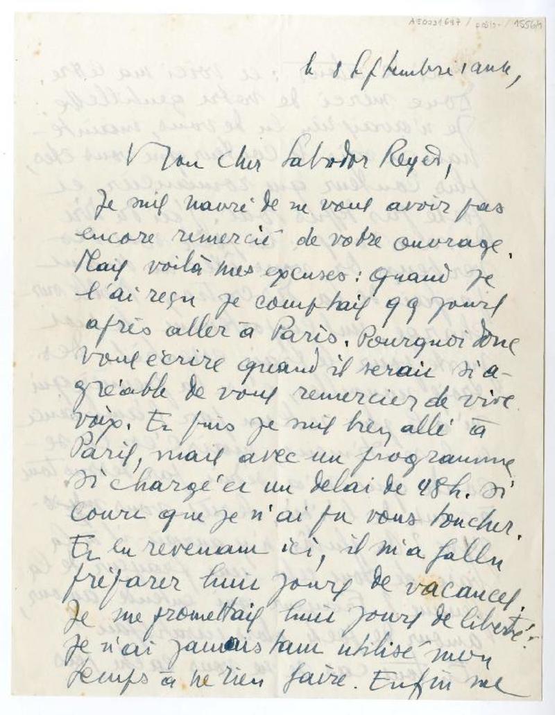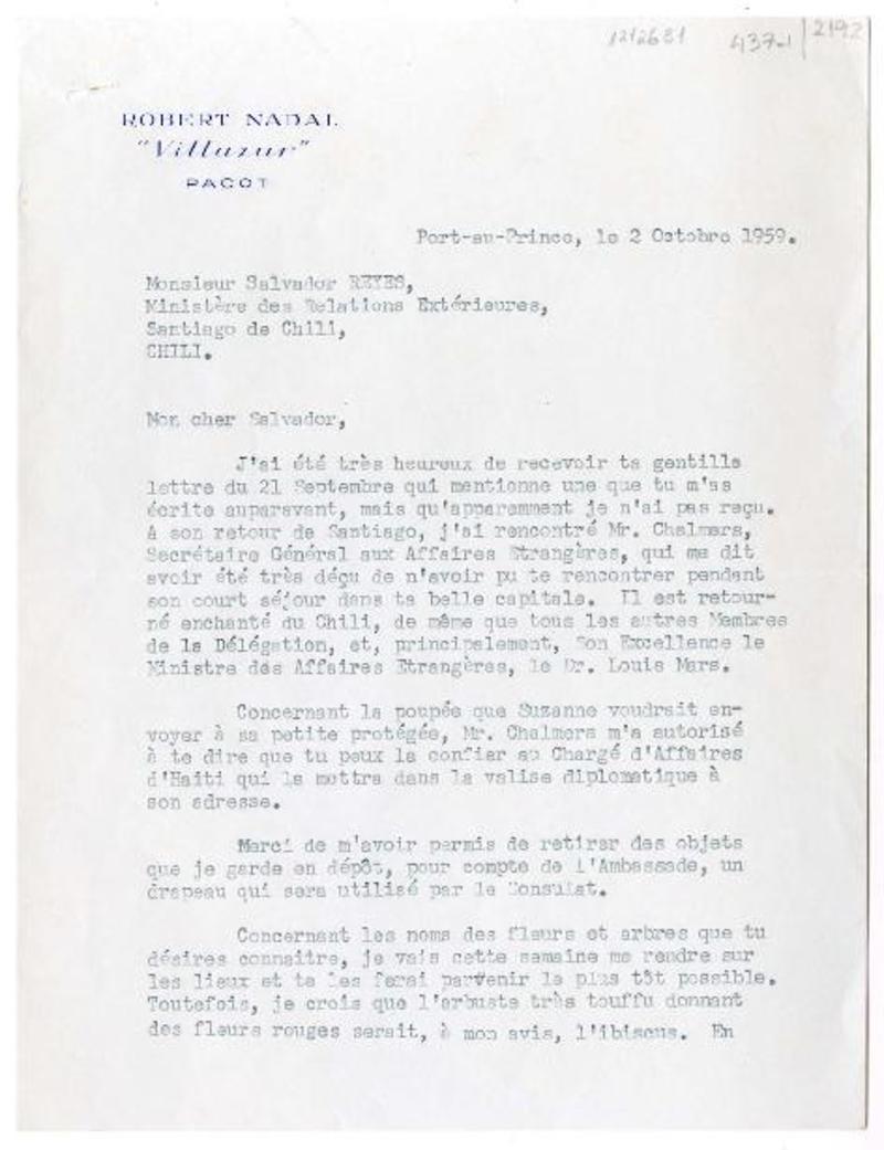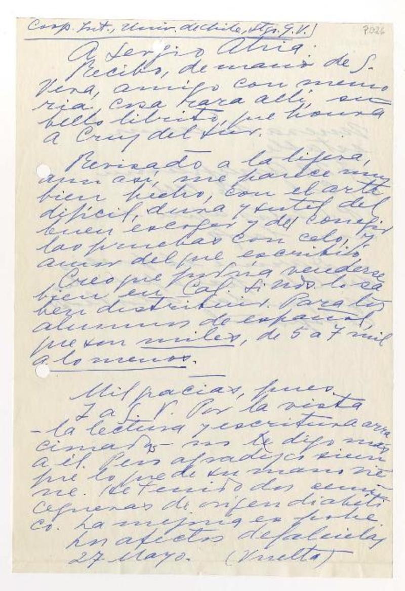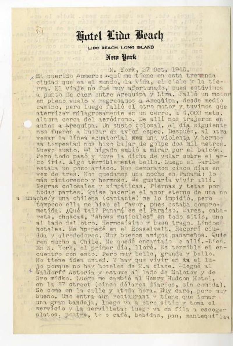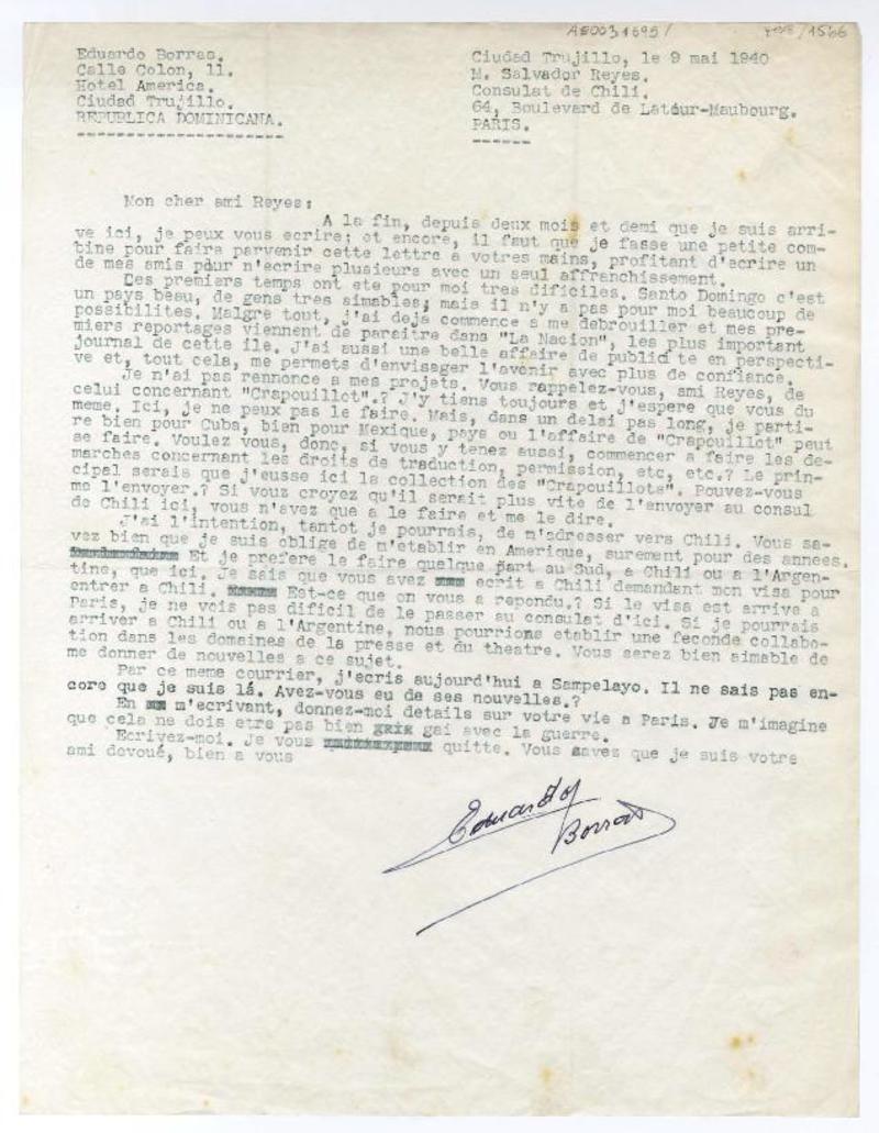 Valparaíso, Chile [a] Salvador Reyes, Paris, Francia Cartas, 10 de junio y 14 de octubre de 1948, [manuscrito] Alfredo Silva Carvallo.