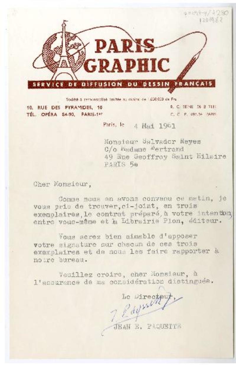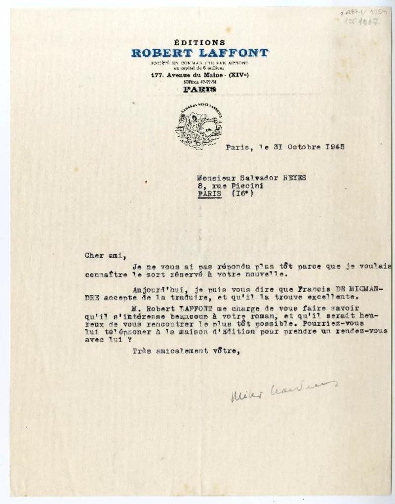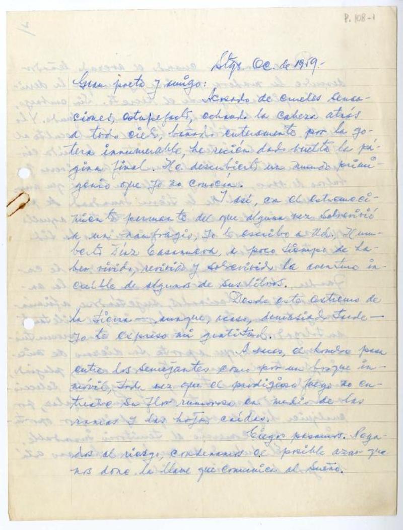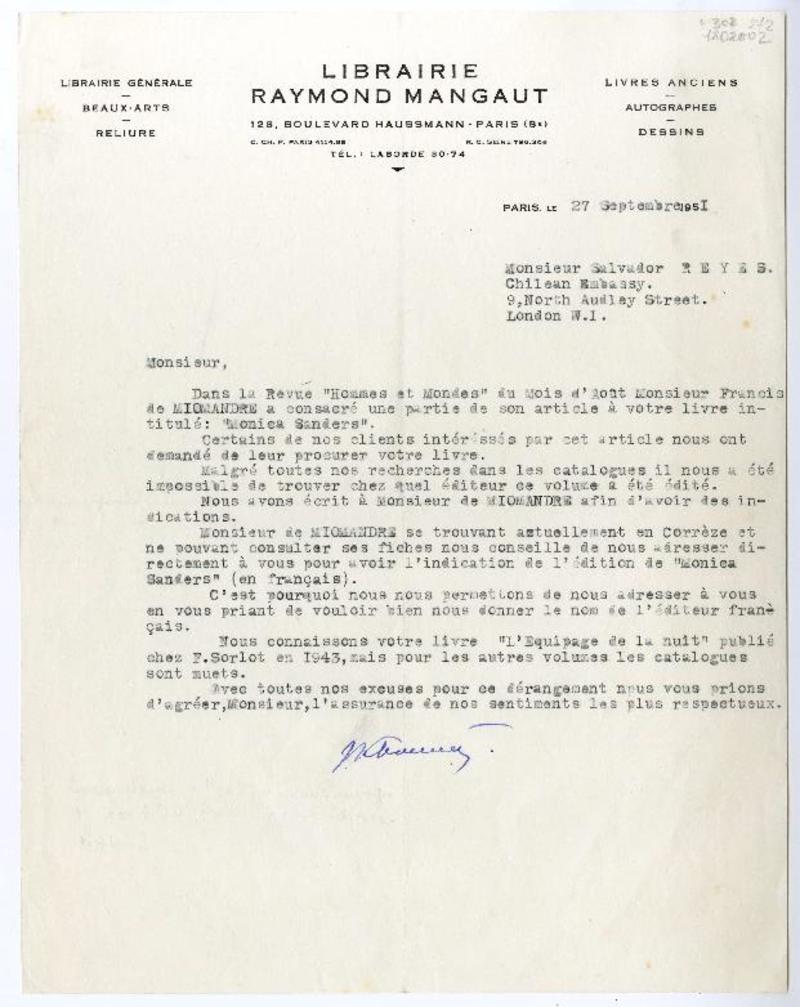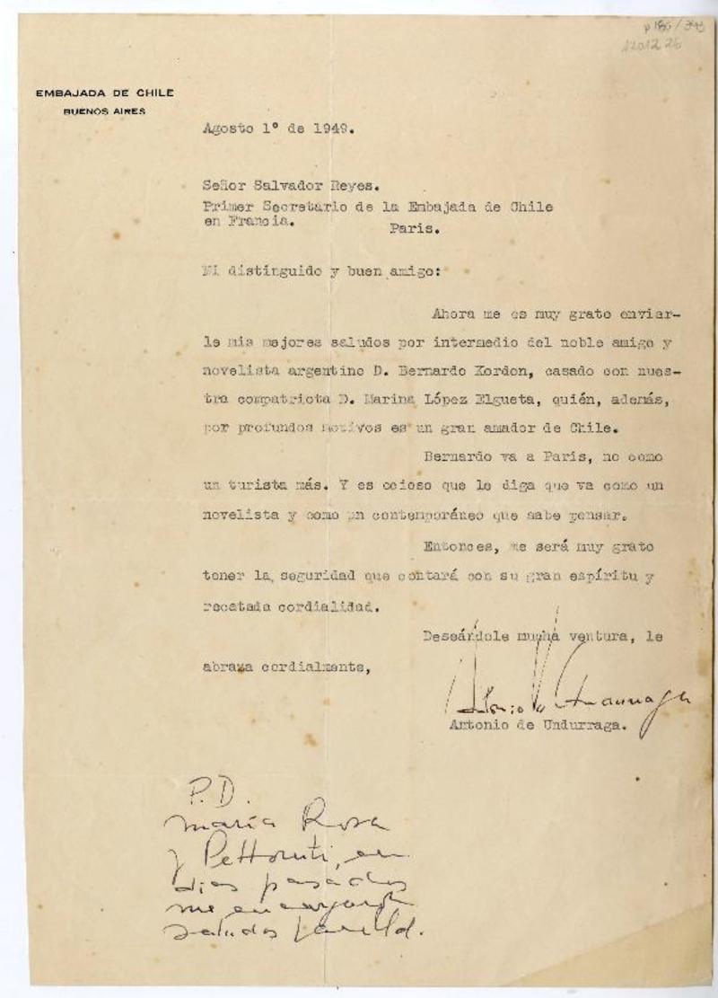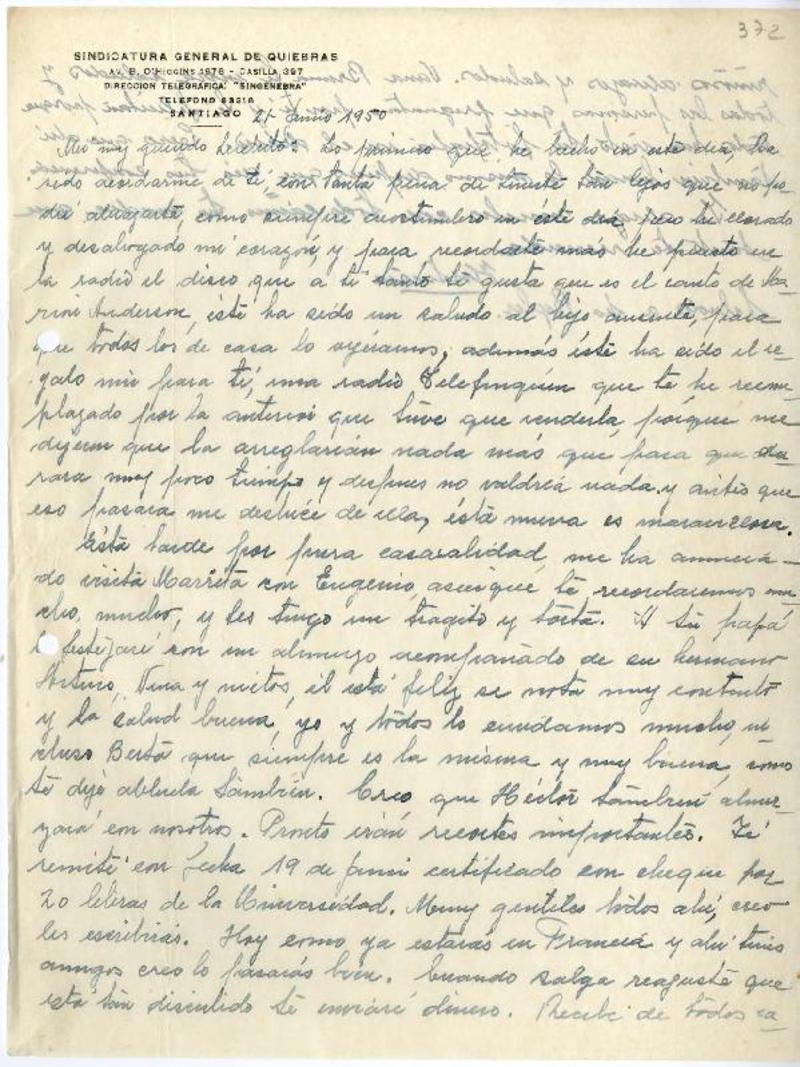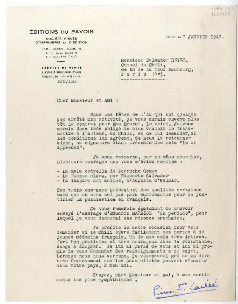 Valparaíso, Chile [a] Salvador Reyes, Paris, Francia Cartas, 10 de junio y 14 de octubre de 1948, [manuscrito] Alfredo Silva Carvallo.