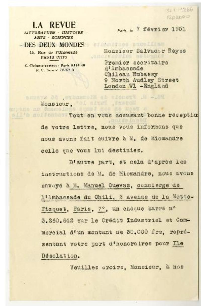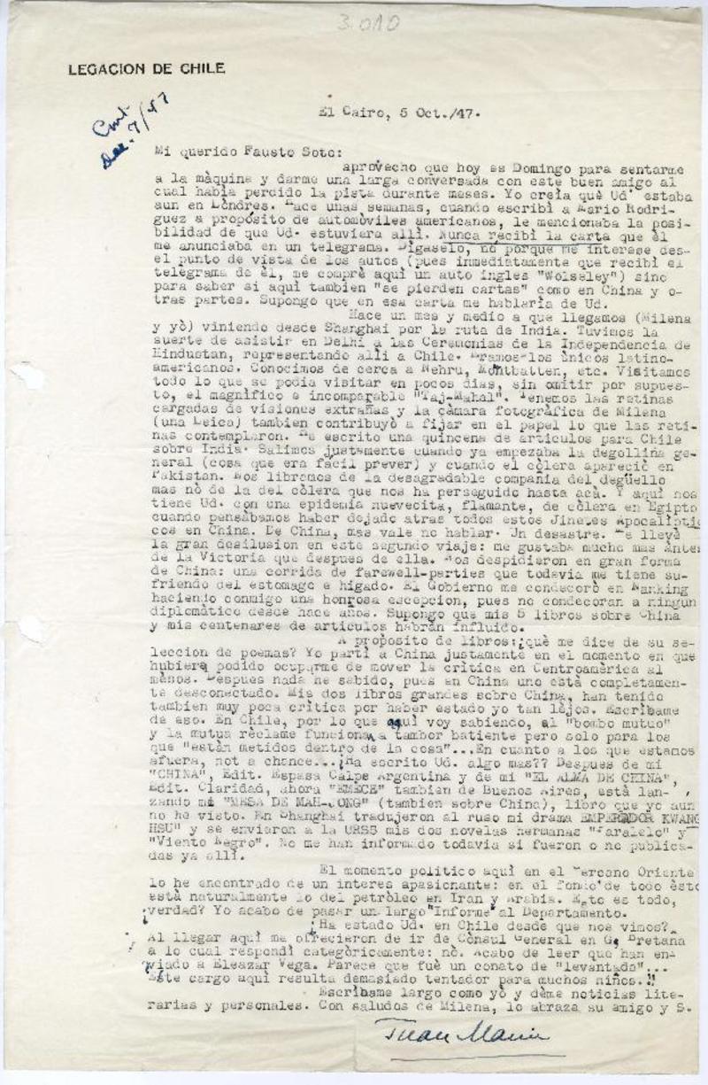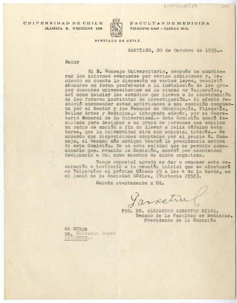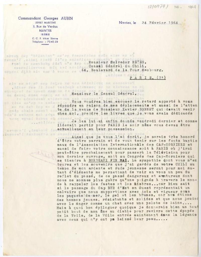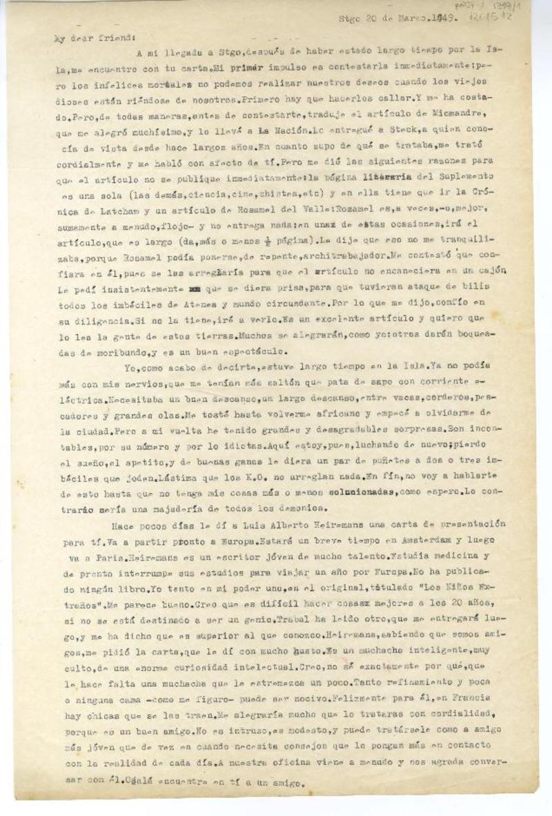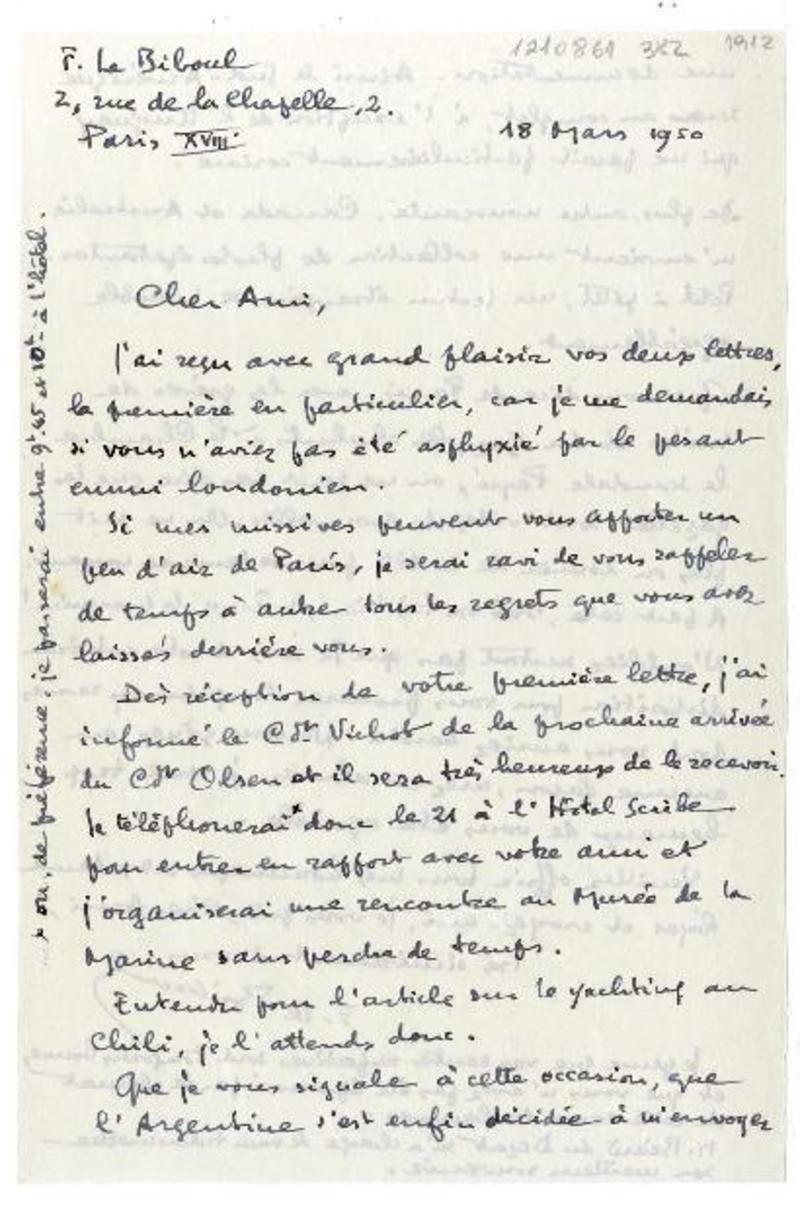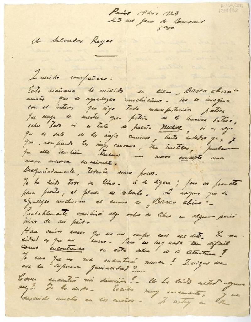 Valparaíso, Chile [a] Salvador Reyes, Paris, Francia Cartas, 10 de junio y 14 de octubre de 1948, [manuscrito] Alfredo Silva Carvallo.