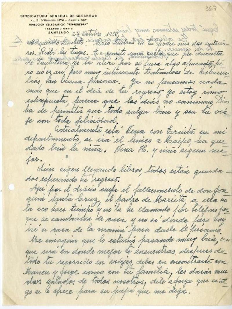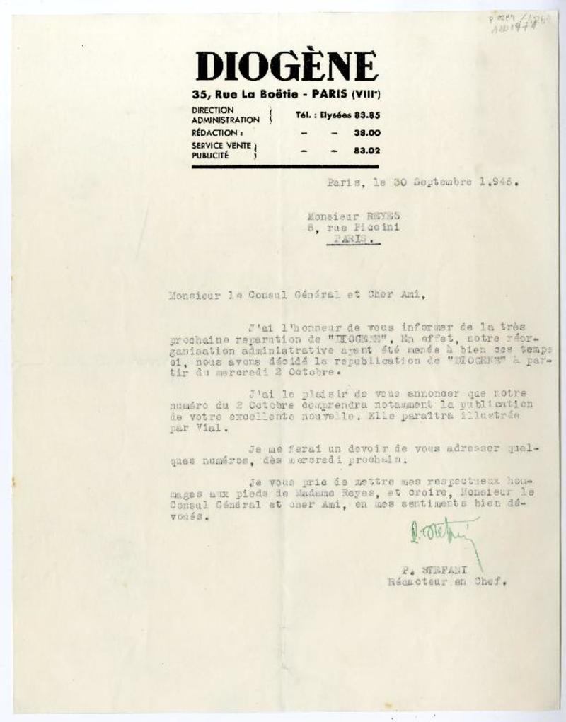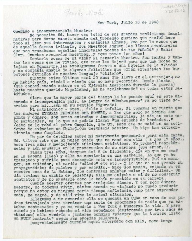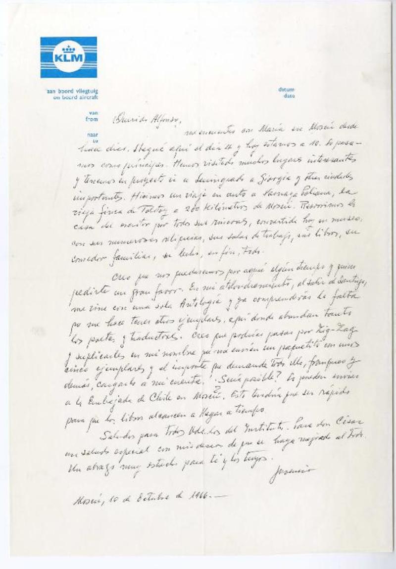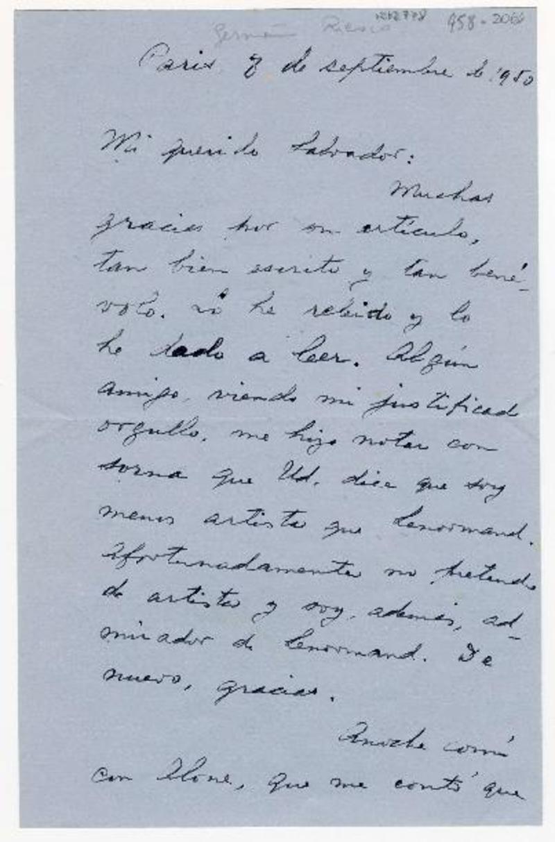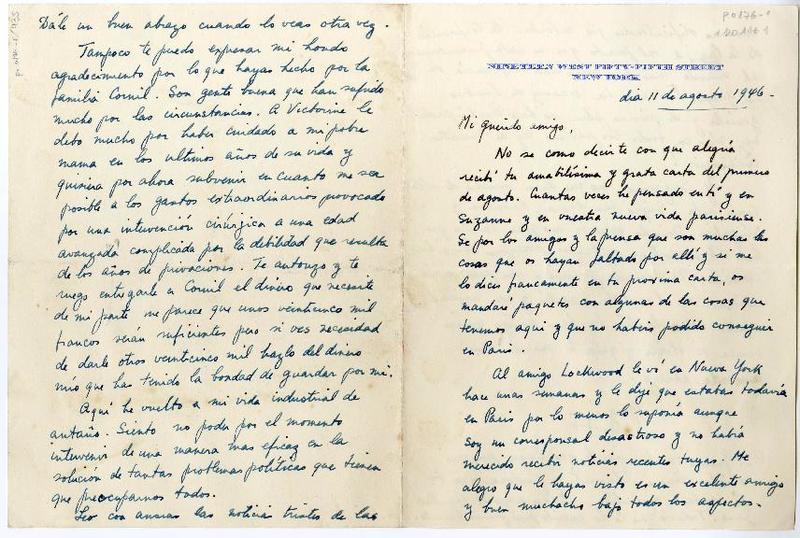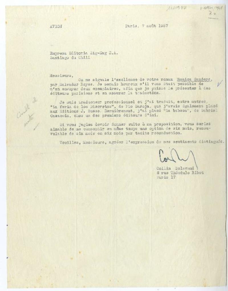 Valparaíso, Chile [a] Salvador Reyes, Paris, Francia Cartas, 10 de junio y 14 de octubre de 1948, [manuscrito] Alfredo Silva Carvallo.