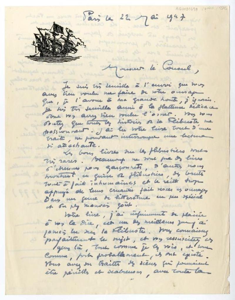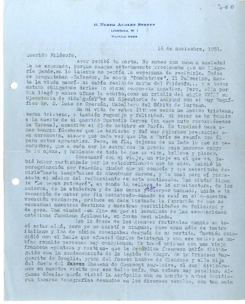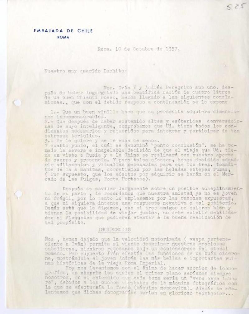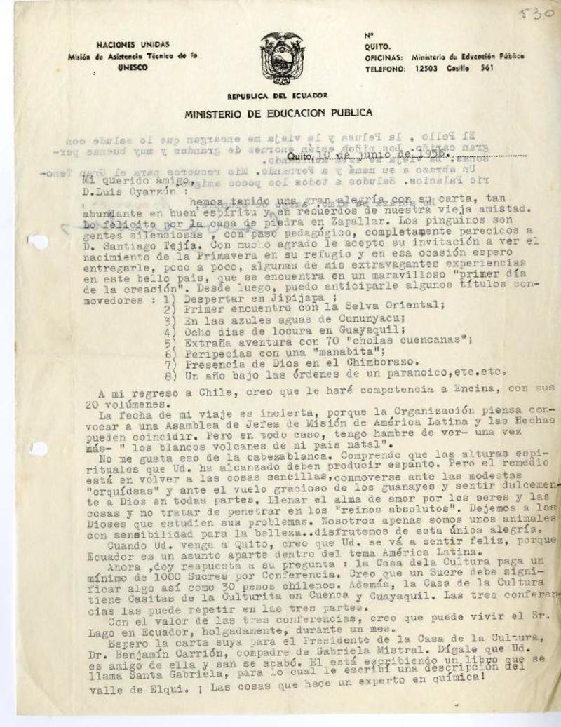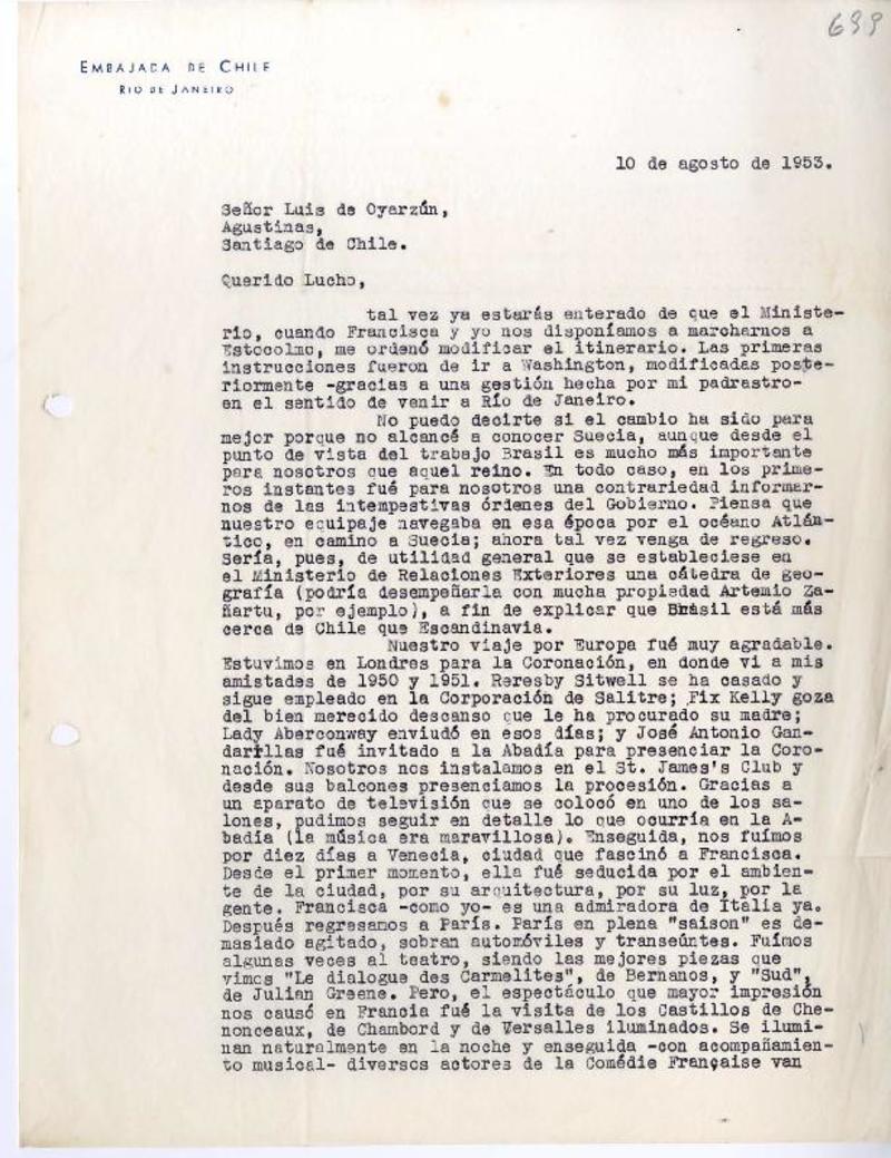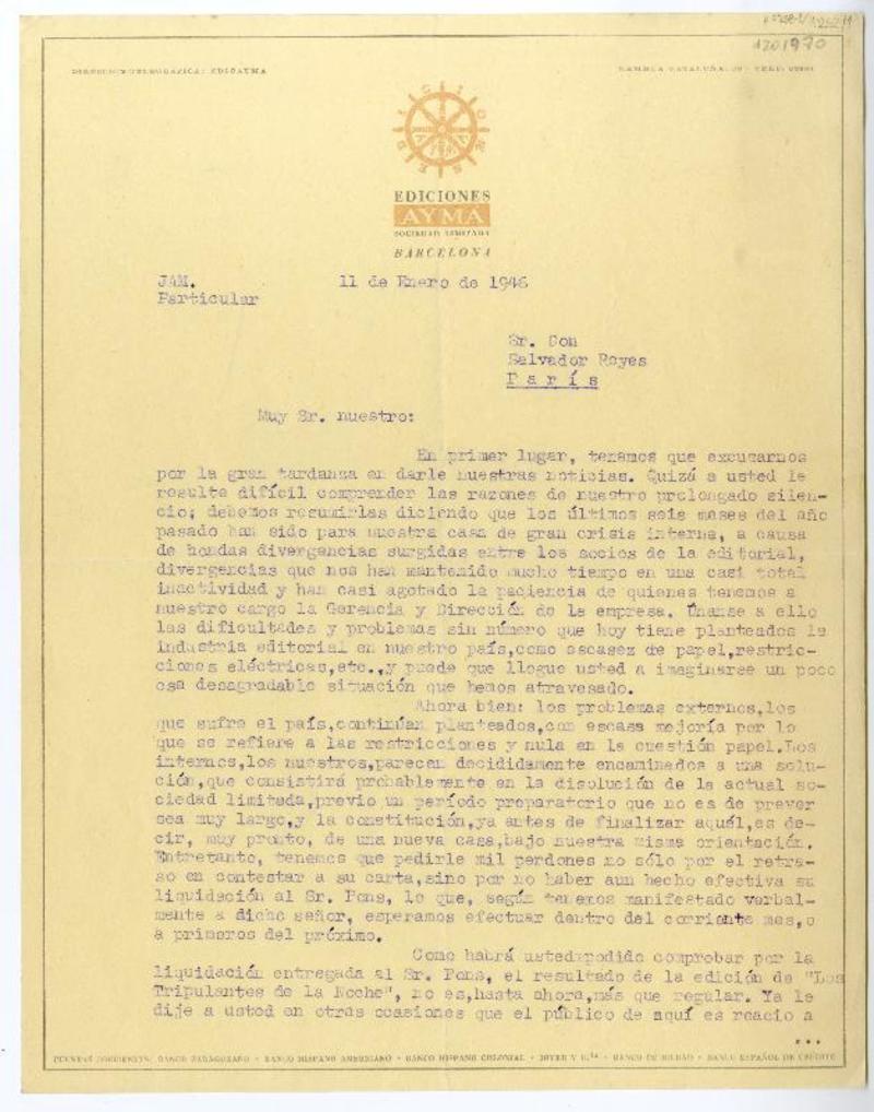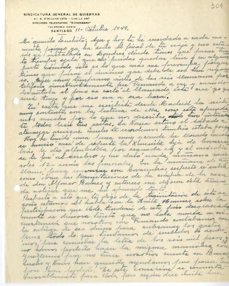 Valparaíso, Chile [a] Salvador Reyes, Paris, Francia Cartas, 10 de junio y 14 de octubre de 1948, [manuscrito] Alfredo Silva Carvallo.
