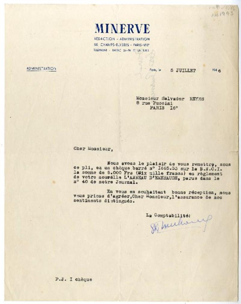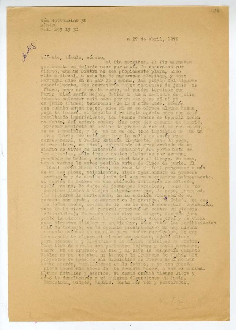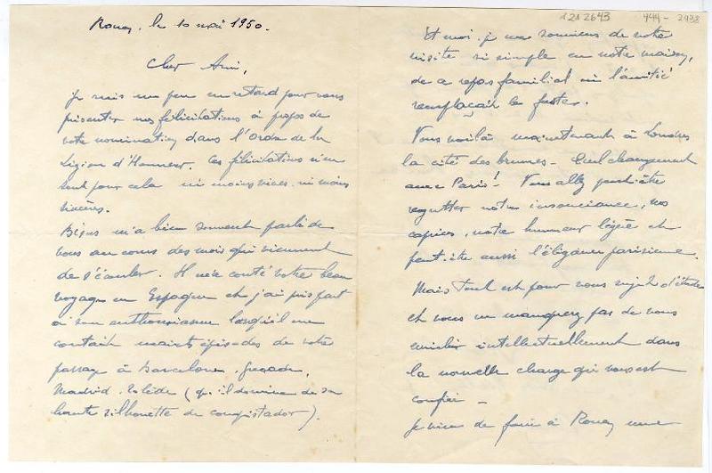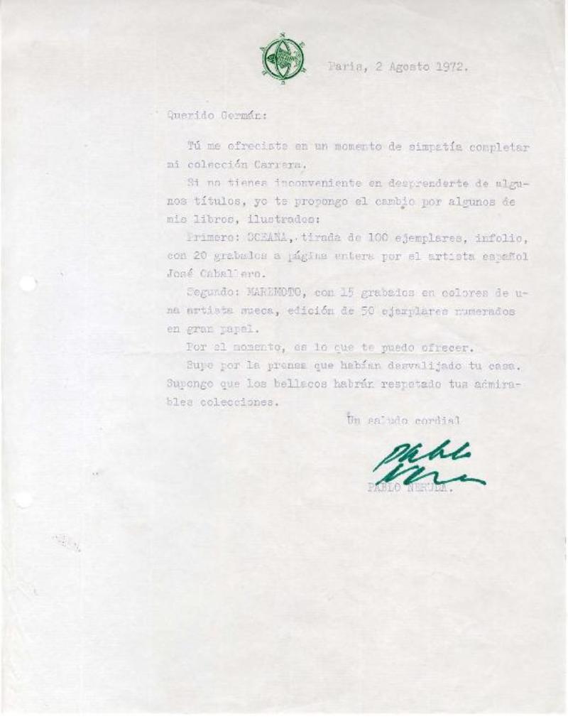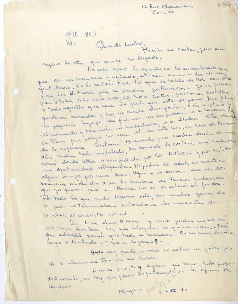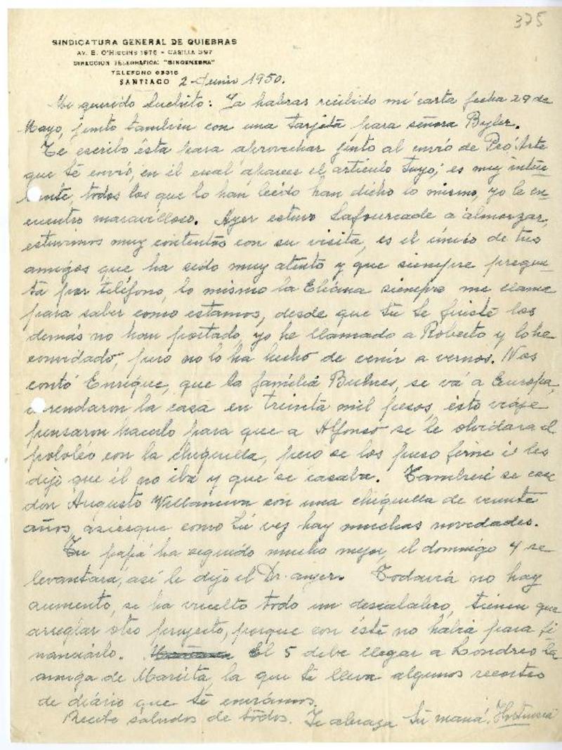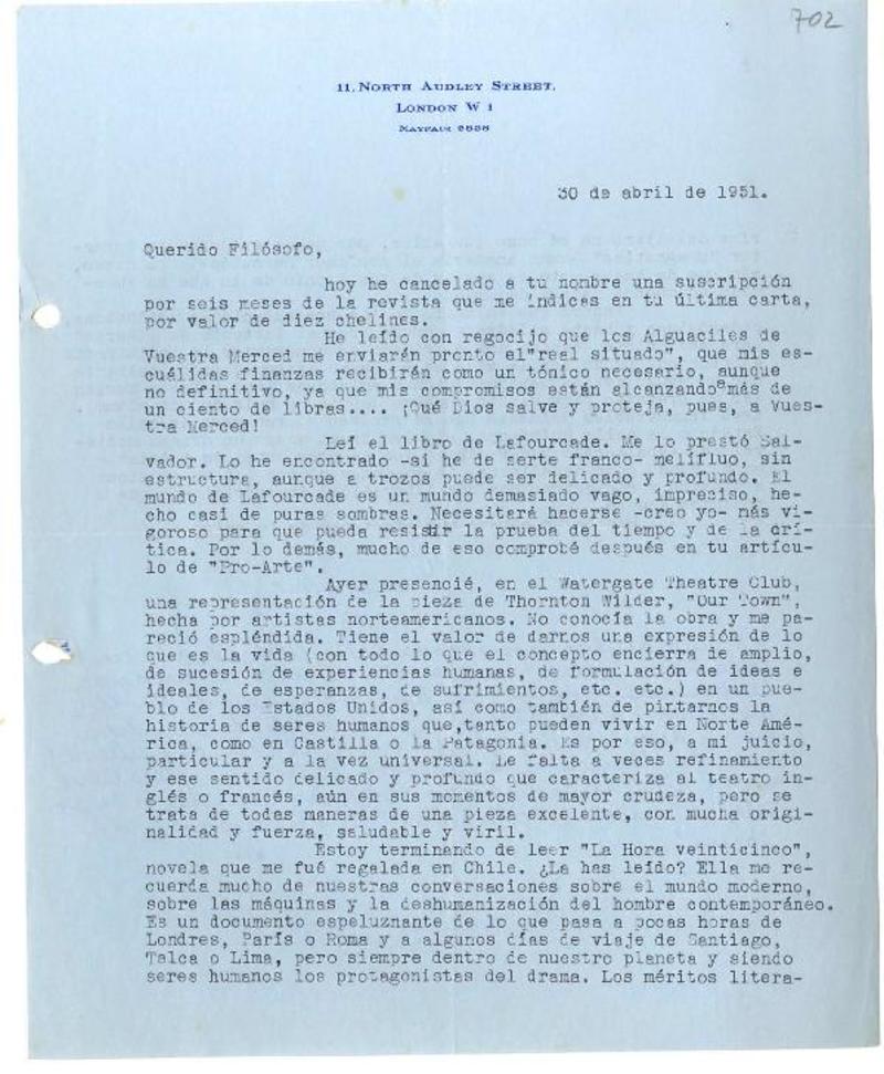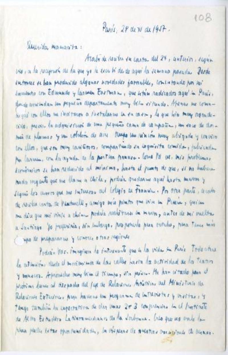 Valparaíso, Chile [a] Salvador Reyes, Paris, Francia Cartas, 10 de junio y 14 de octubre de 1948, [manuscrito] Alfredo Silva Carvallo.