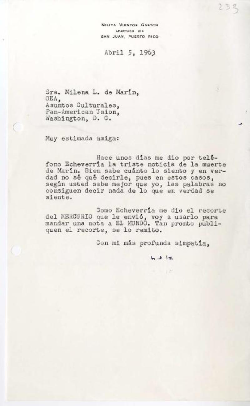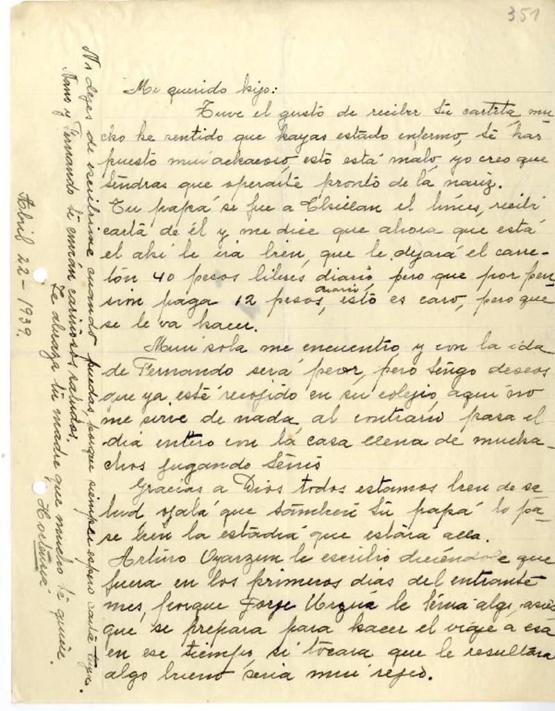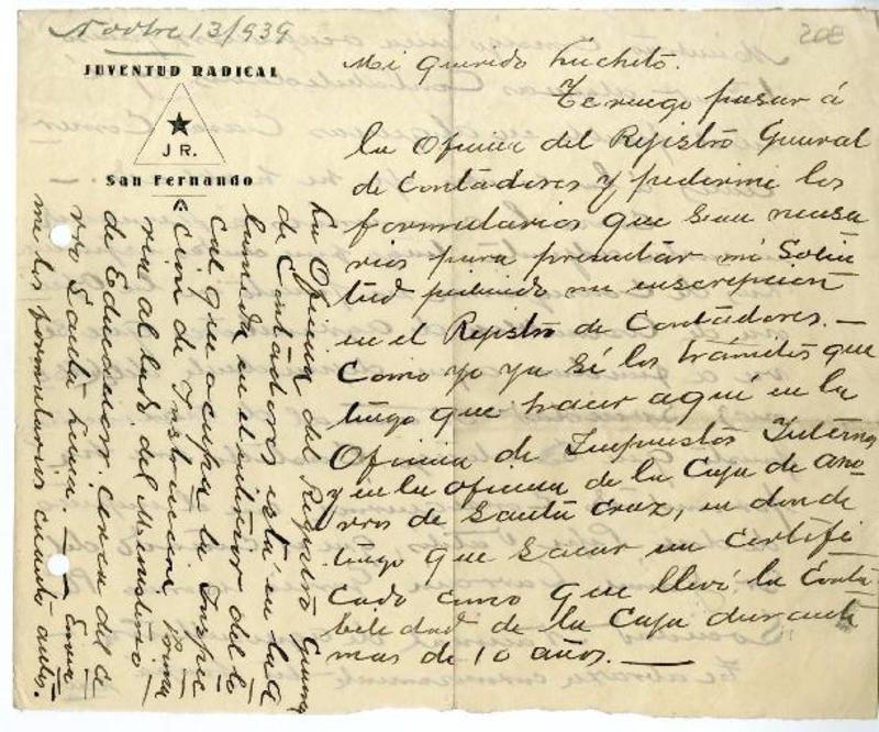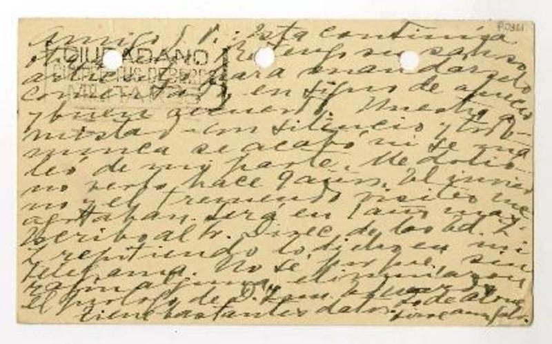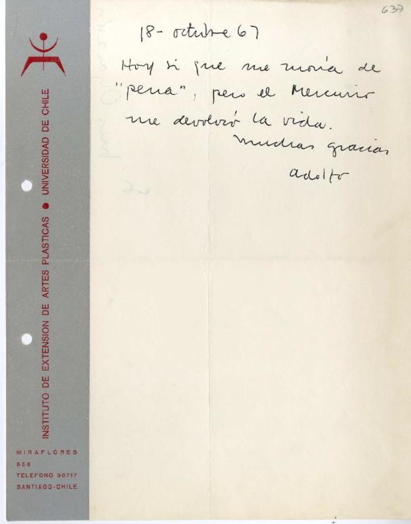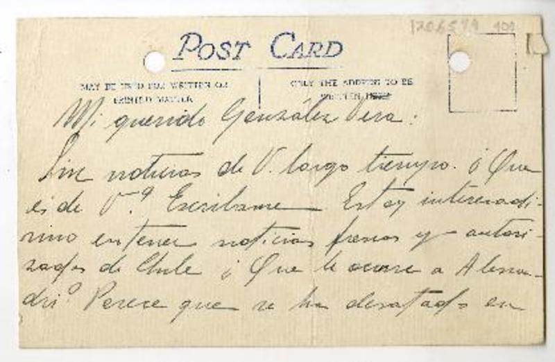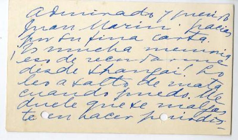 Viña del Mar, Chile [a] Oscar Castro Tarjeta, 1939 abril 13, [manuscrito] Juan Marín.