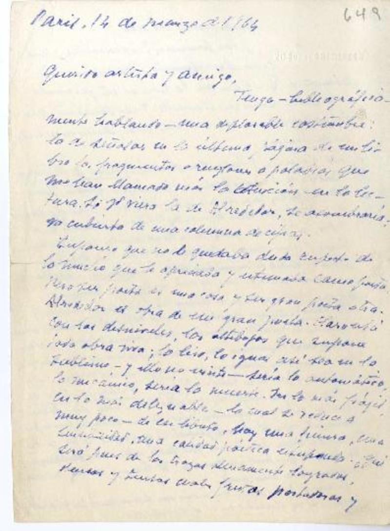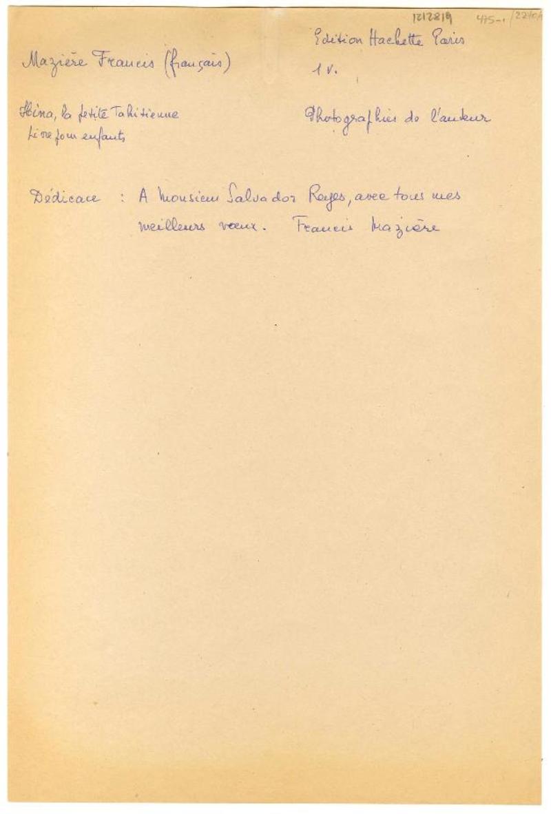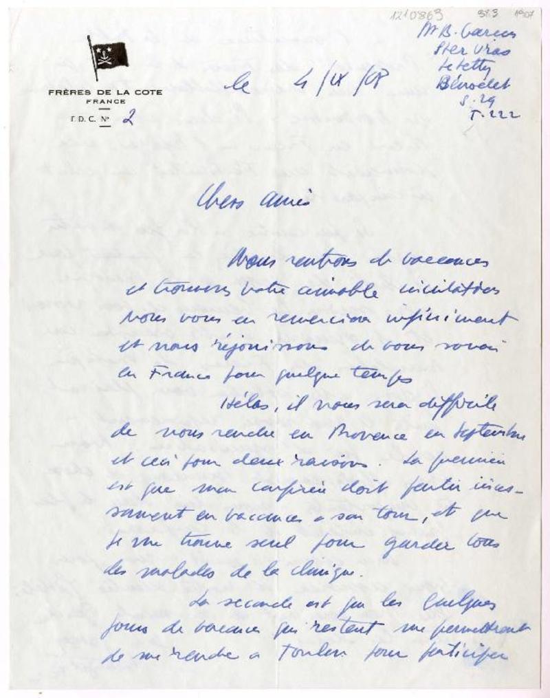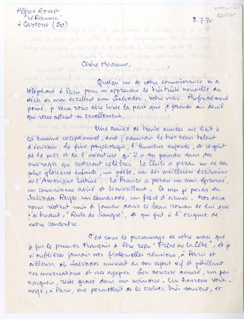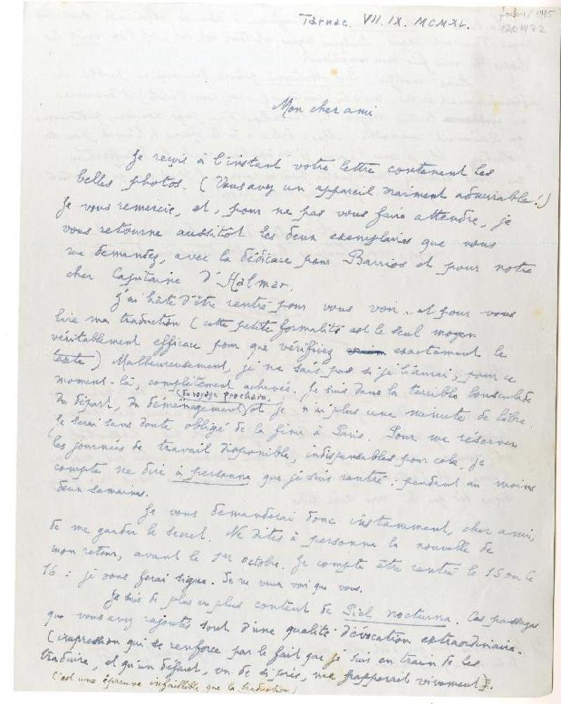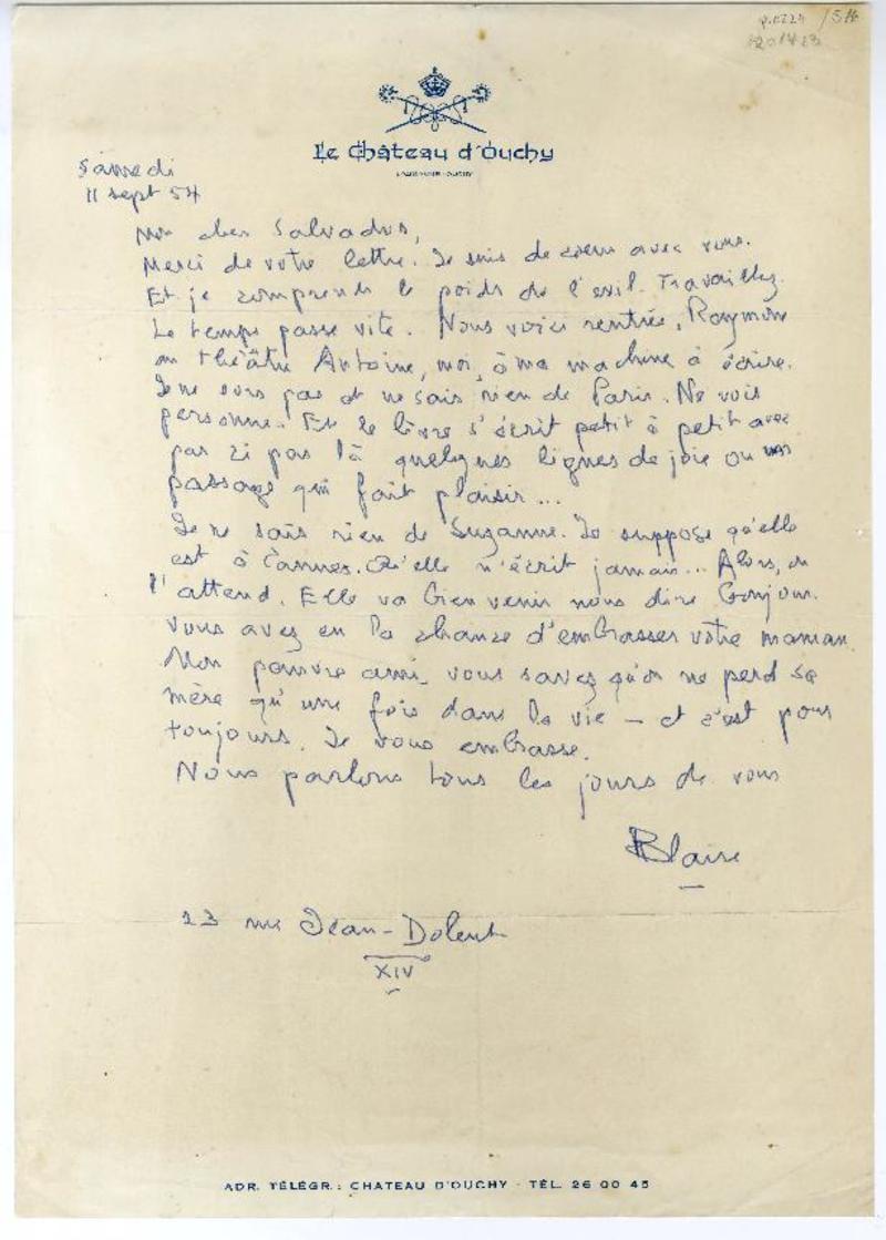Villefranche-sur-Mer, Francia [a] Salvador Reyes Cartas, enero, marzo y mayo de 1949, [manuscrito] Blaise Cendrars.