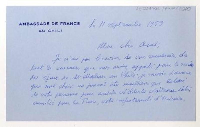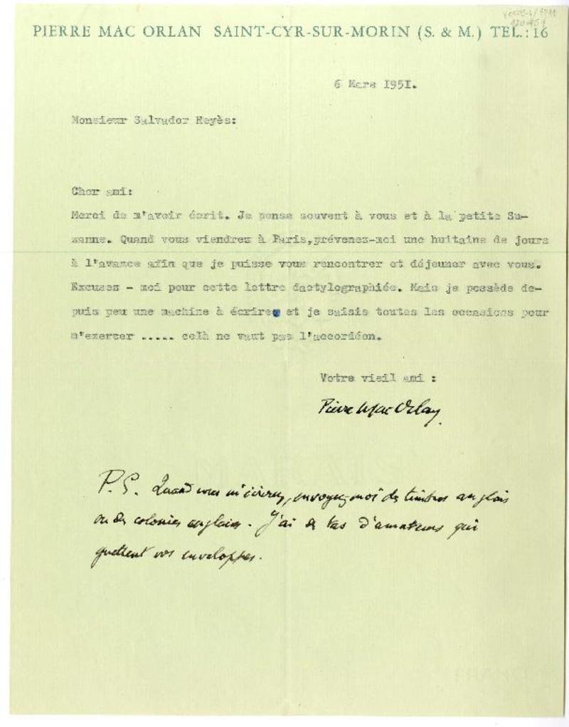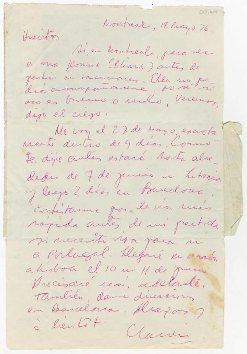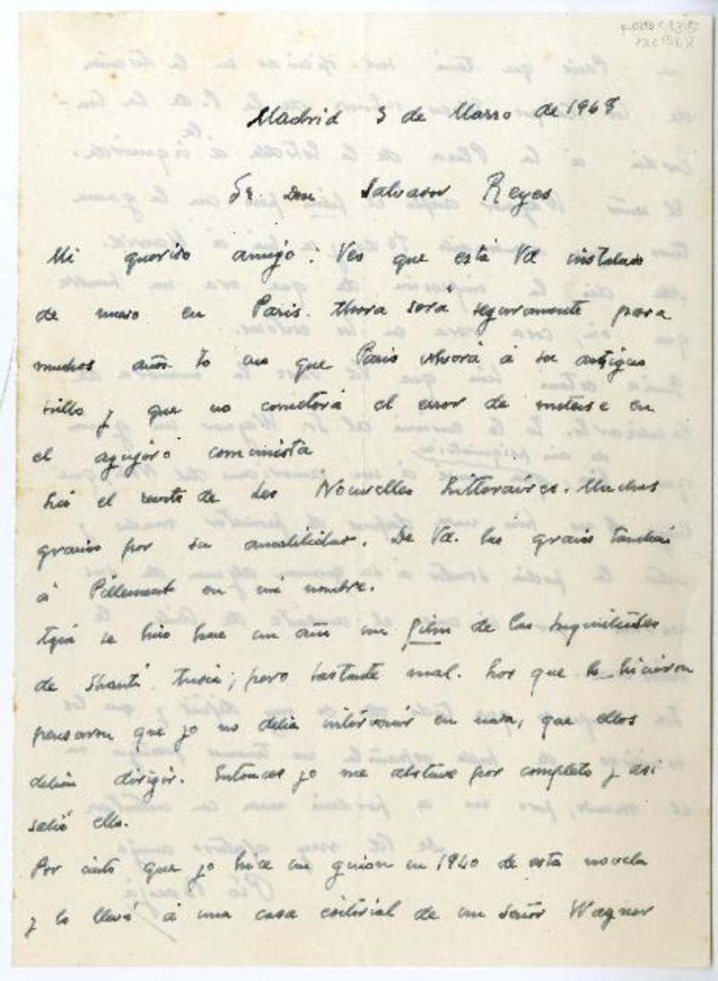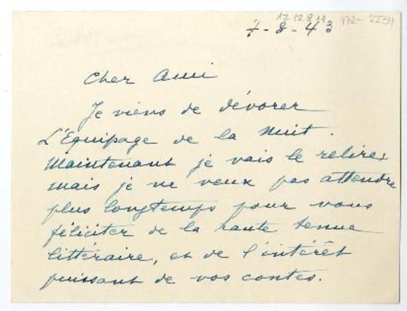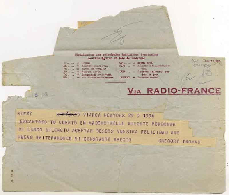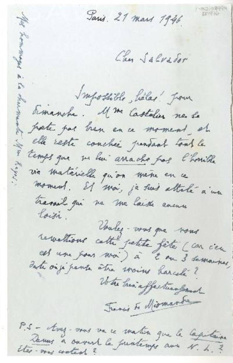 Villefranche-sur-Mer, Francia [a] Salvador Reyes Cartas, enero, marzo y mayo de 1949, [manuscrito] Blaise Cendrars.