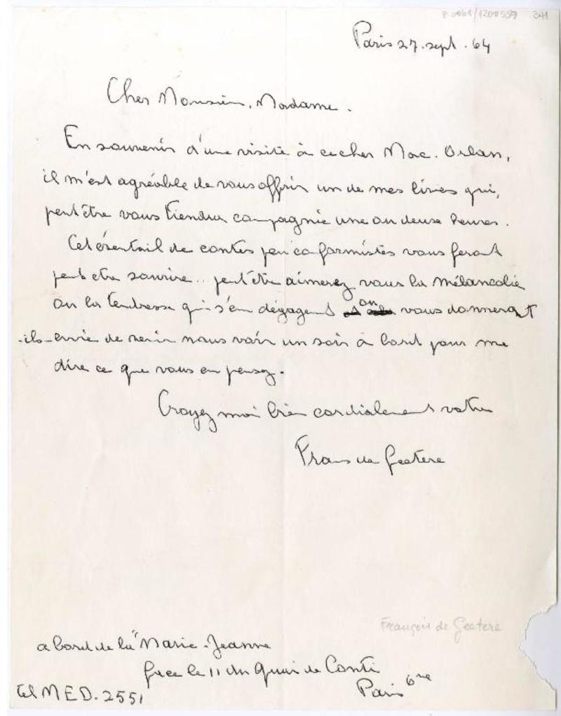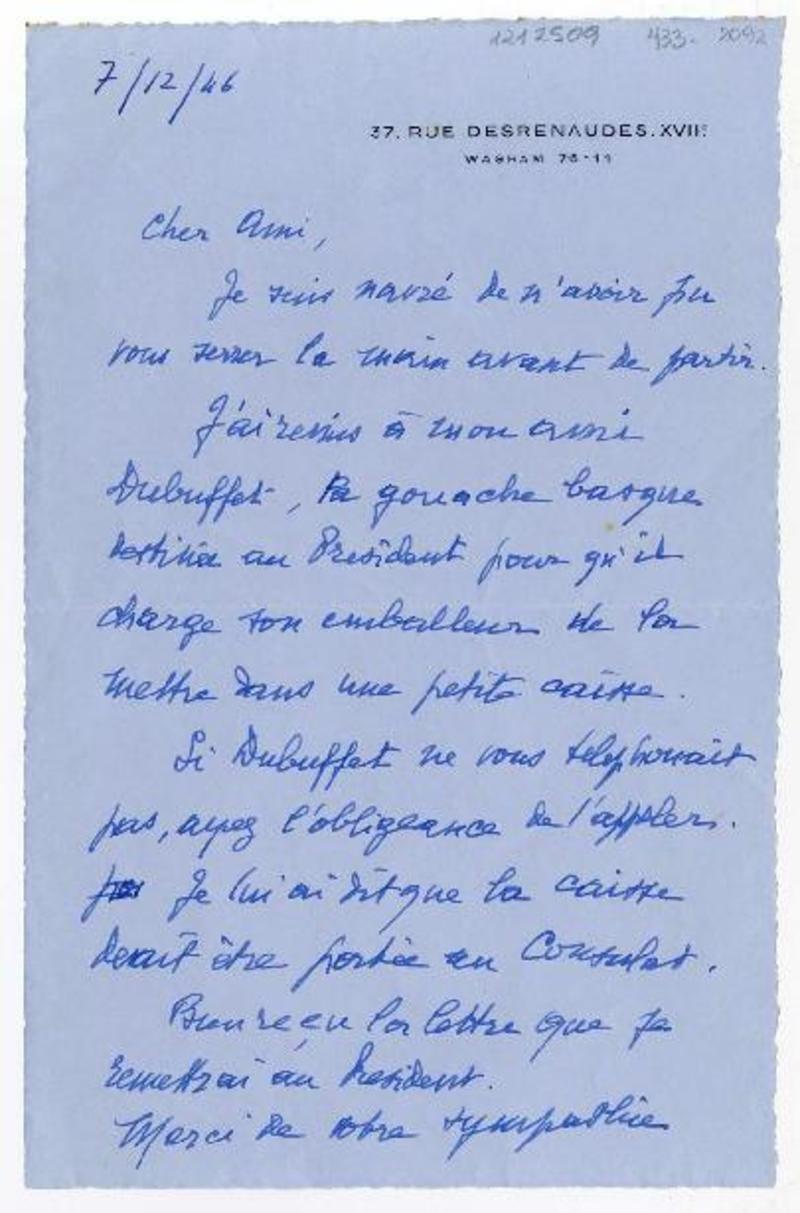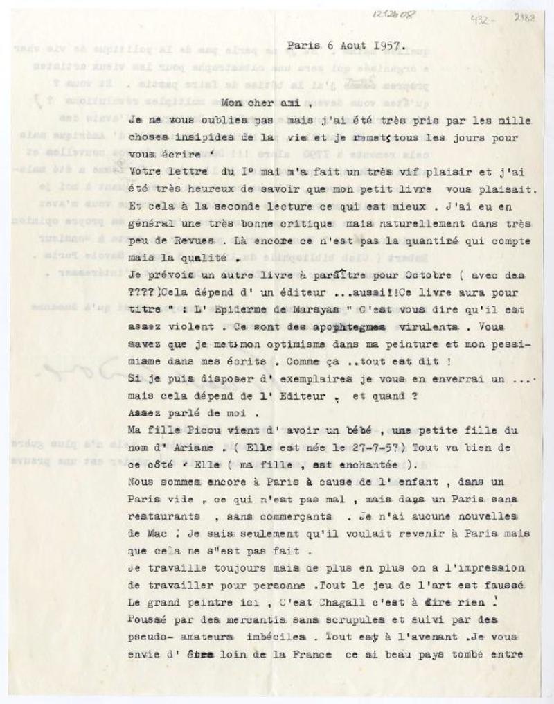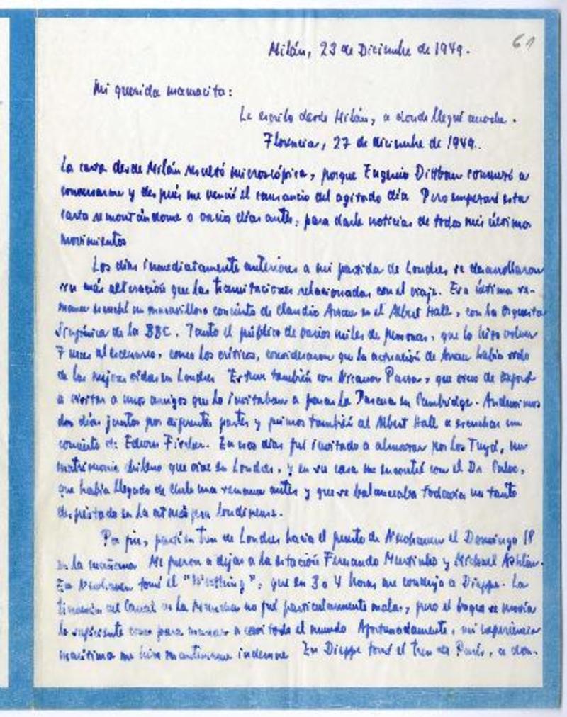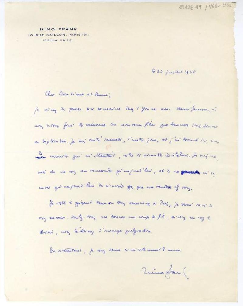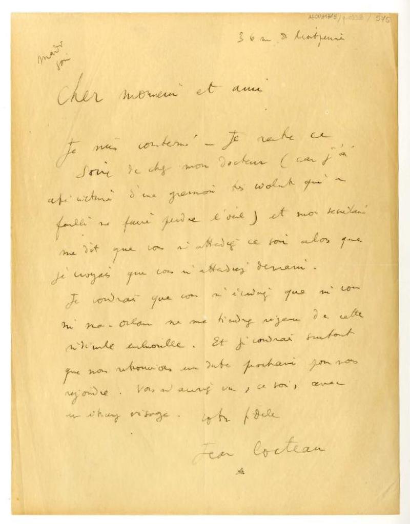 Villefranche-sur-Mer, Francia [a] Salvador Reyes Cartas, enero, marzo y mayo de 1949, [manuscrito] Blaise Cendrars.