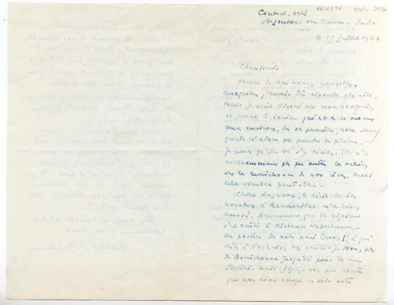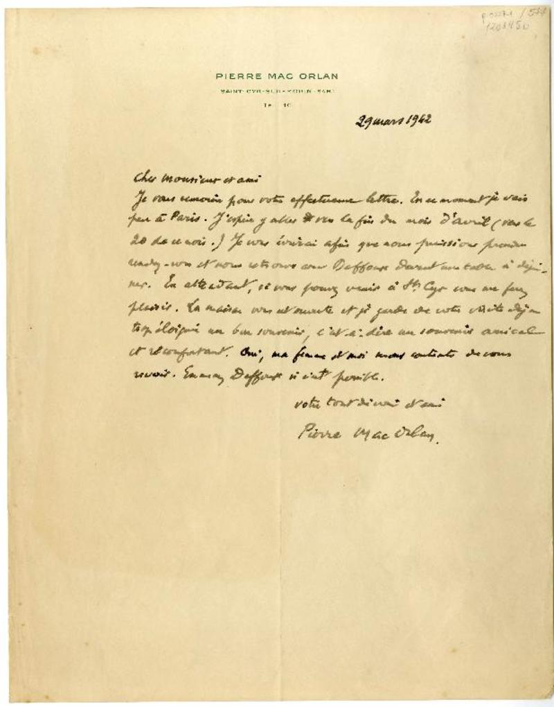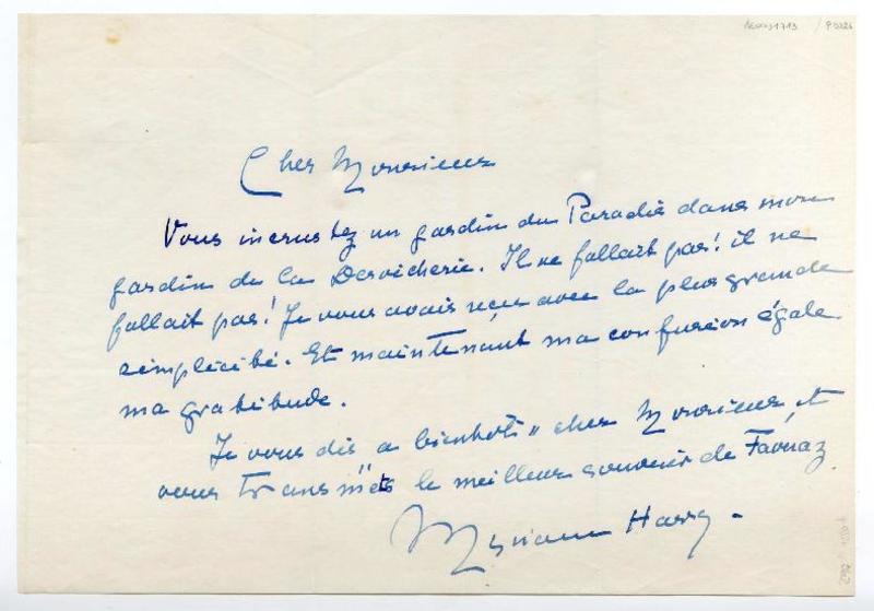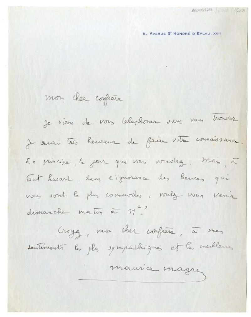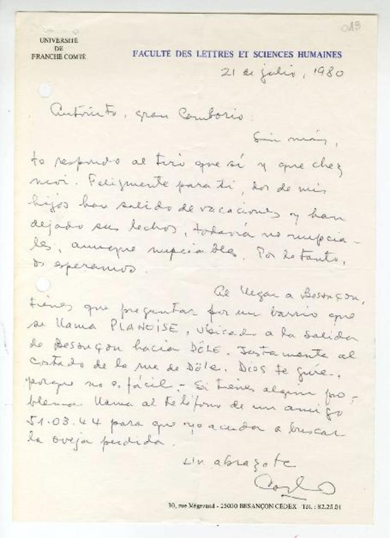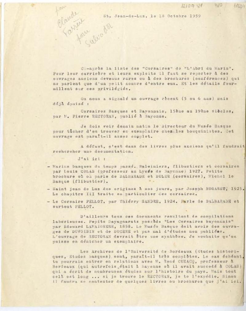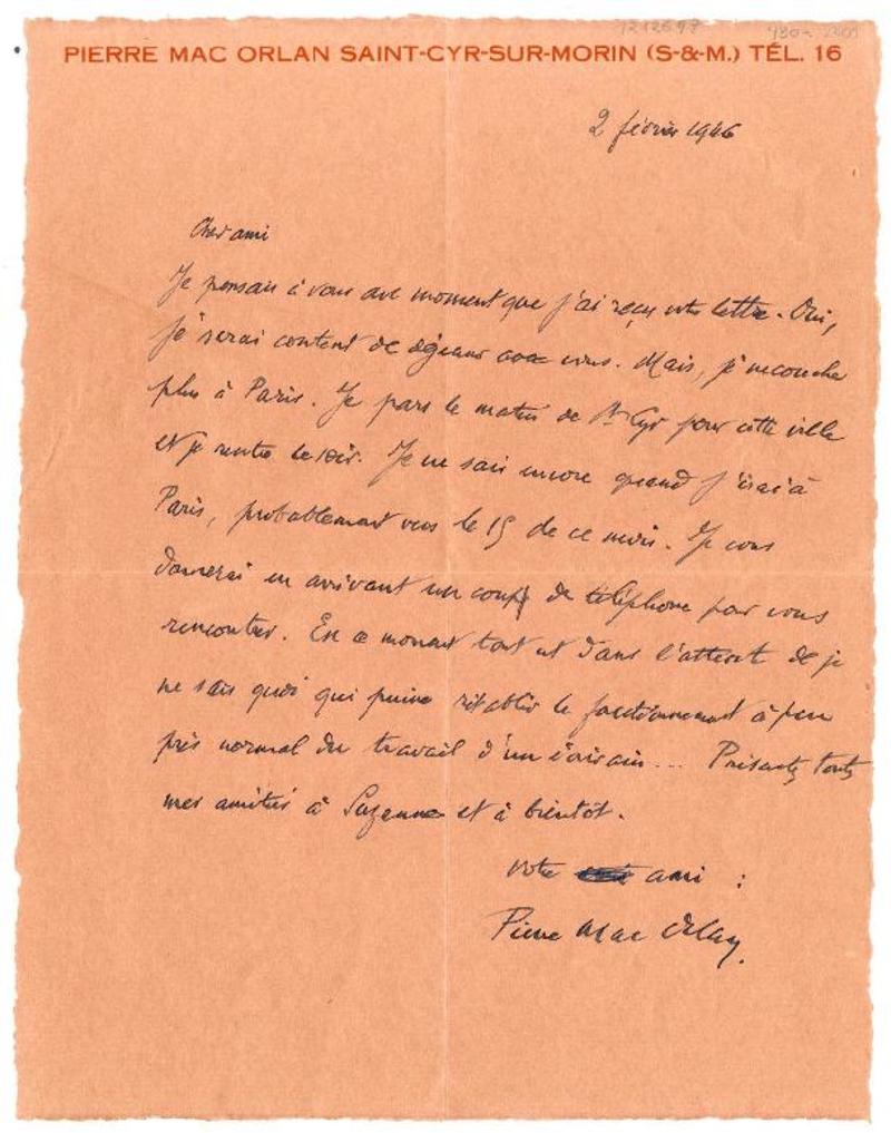 Villefranche-sur-Mer, Francia [a] Salvador Reyes Cartas, enero, marzo y mayo de 1949, [manuscrito] Blaise Cendrars.