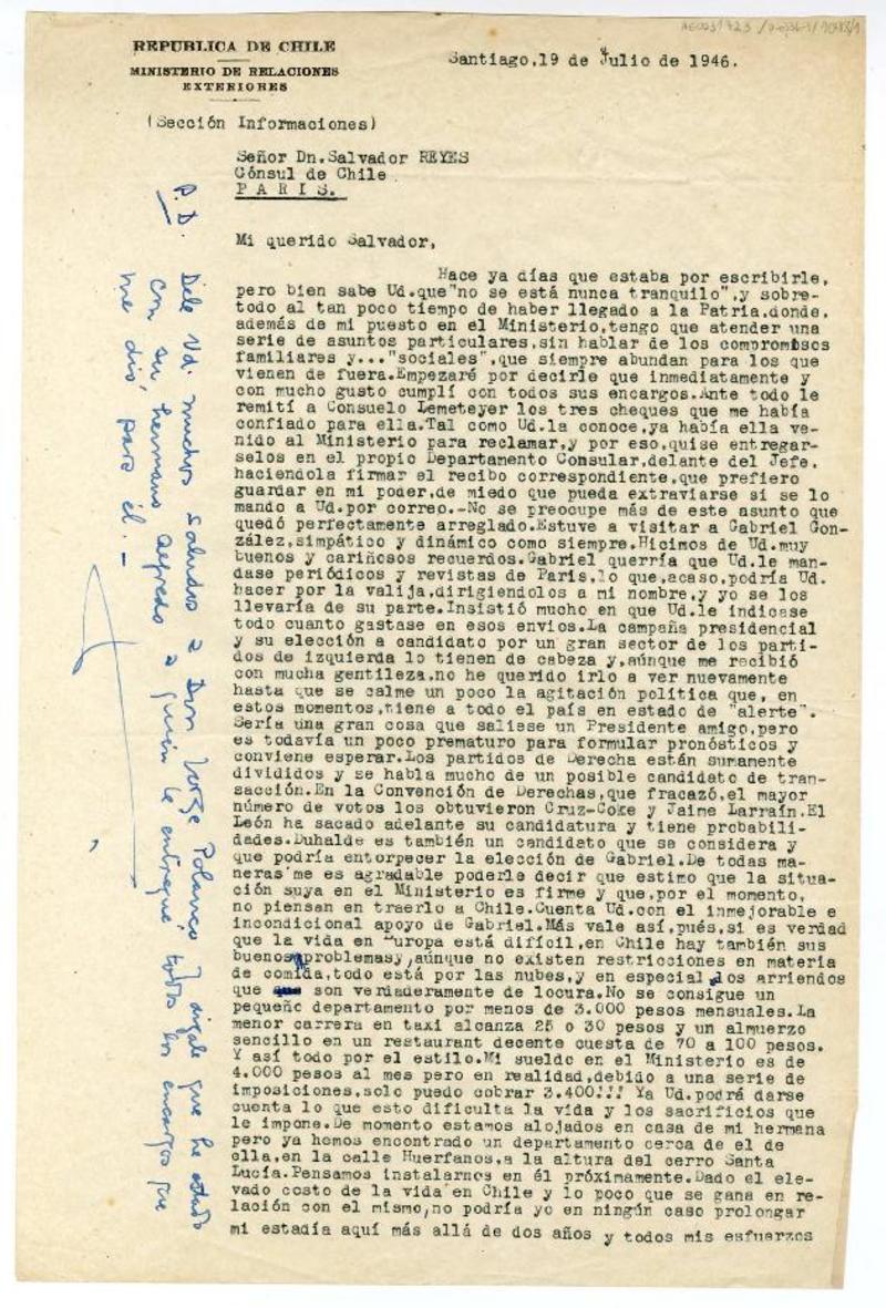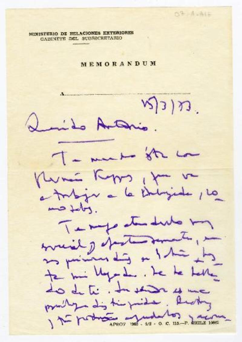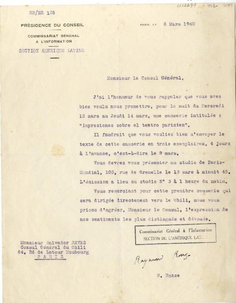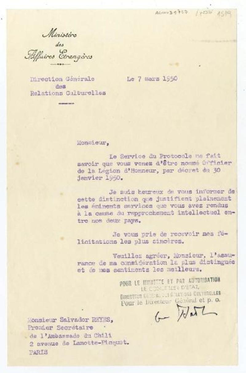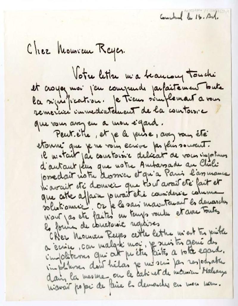 Correspondencia - Manuscritos chilenos - Reyes, Salvador - Ministerio de Relaciones Exteriores - Diplomáticos chilenos - Autores chilenos