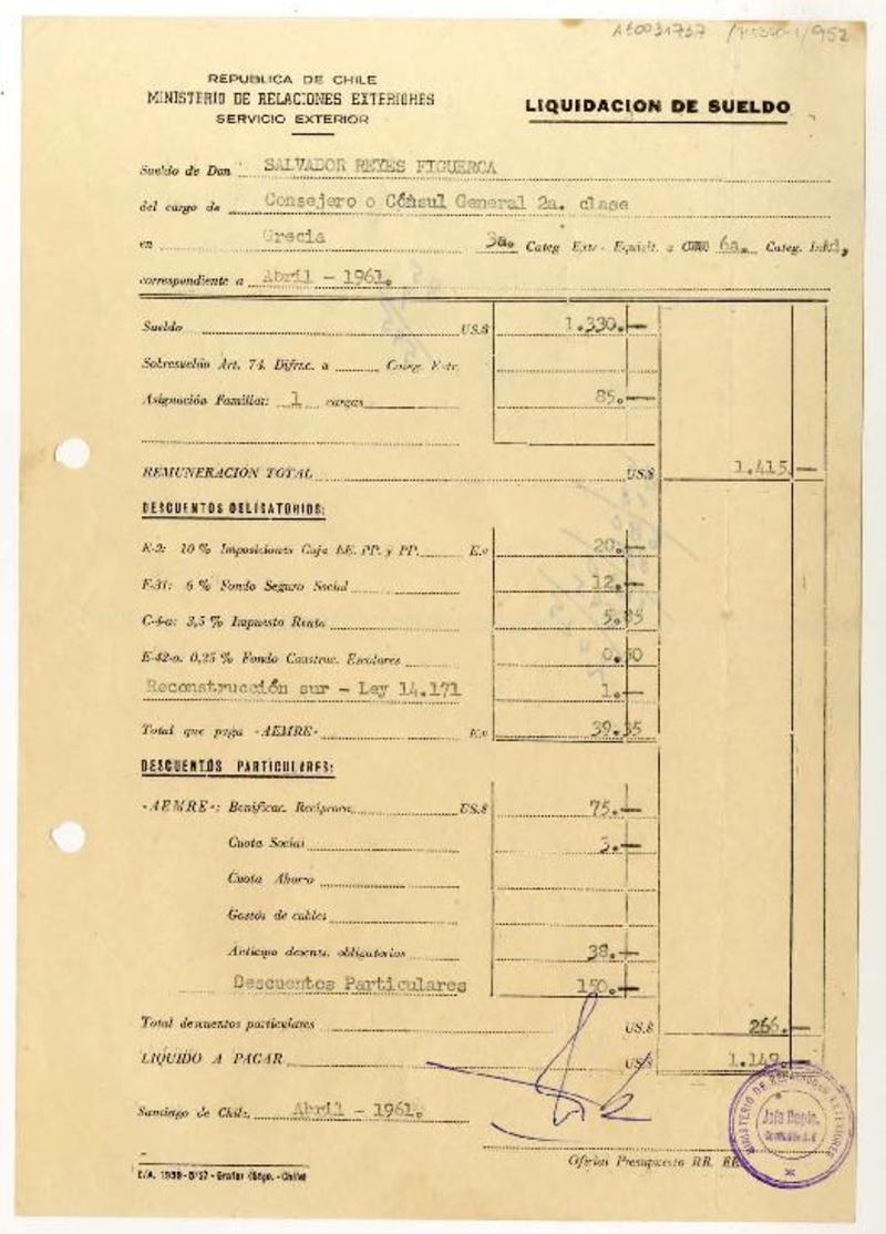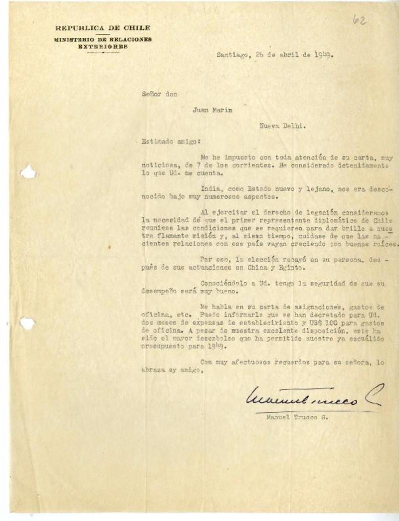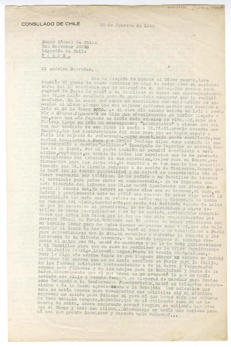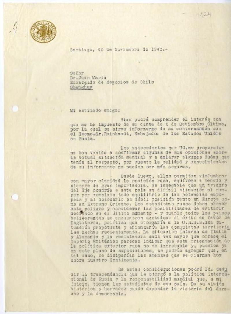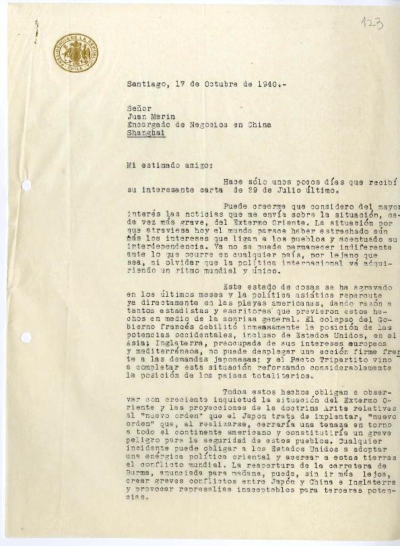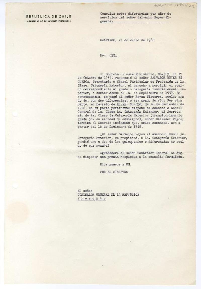 Correspondencia - Manuscritos chilenos - Reyes, Salvador - Ministerio de Relaciones Exteriores - Diplomáticos chilenos - Autores chilenos