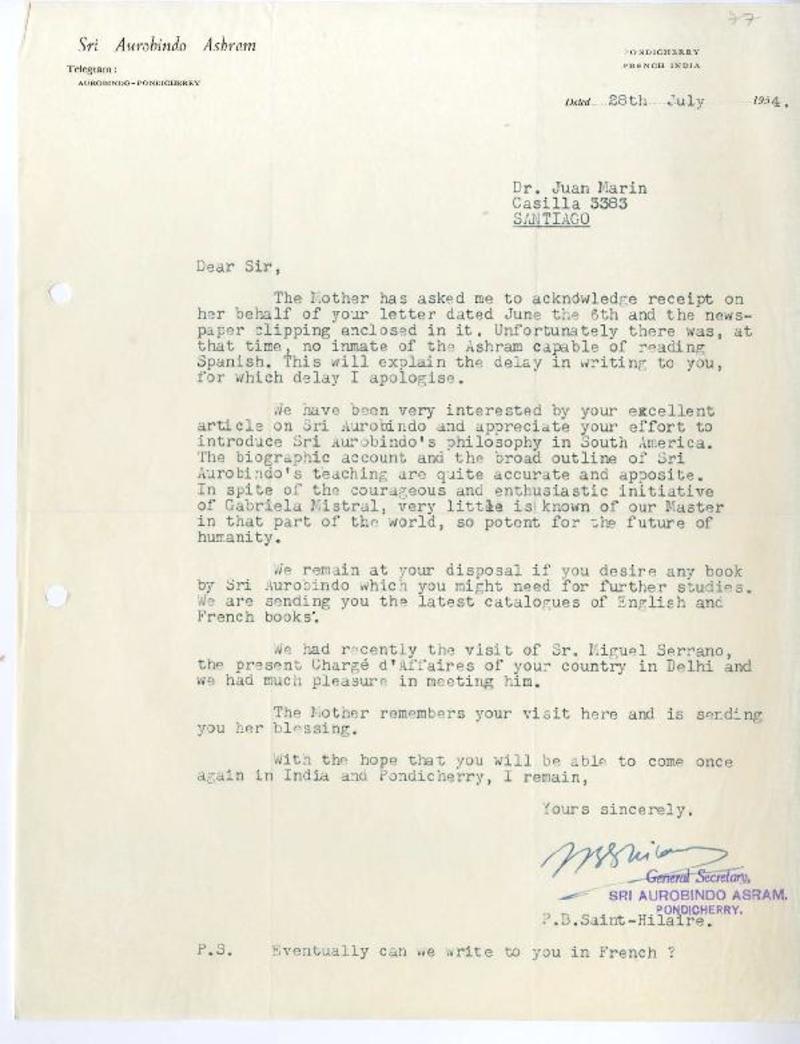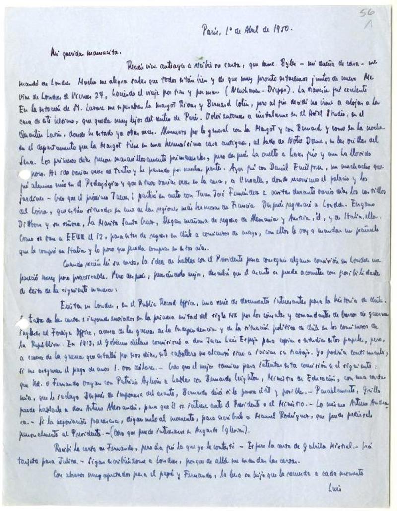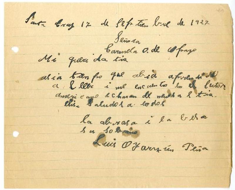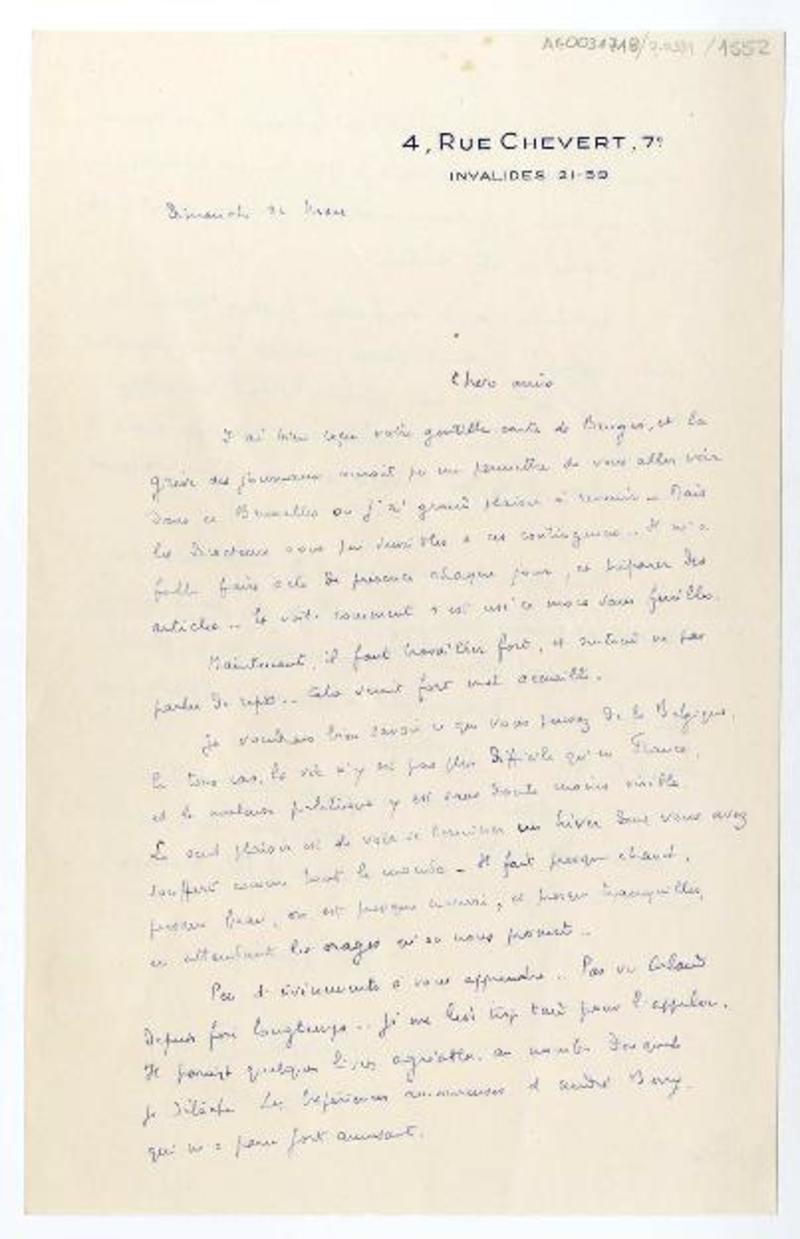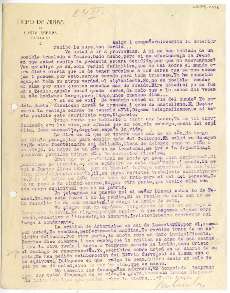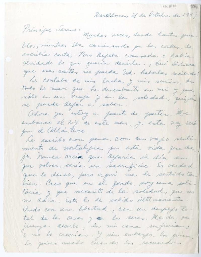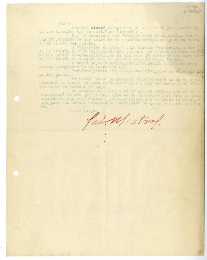 Vaucluse, Francia [a] Alfonso Bulnes, Chile Carta, 1929 agosto 27, [manuscrito] Gabriela Mistral.