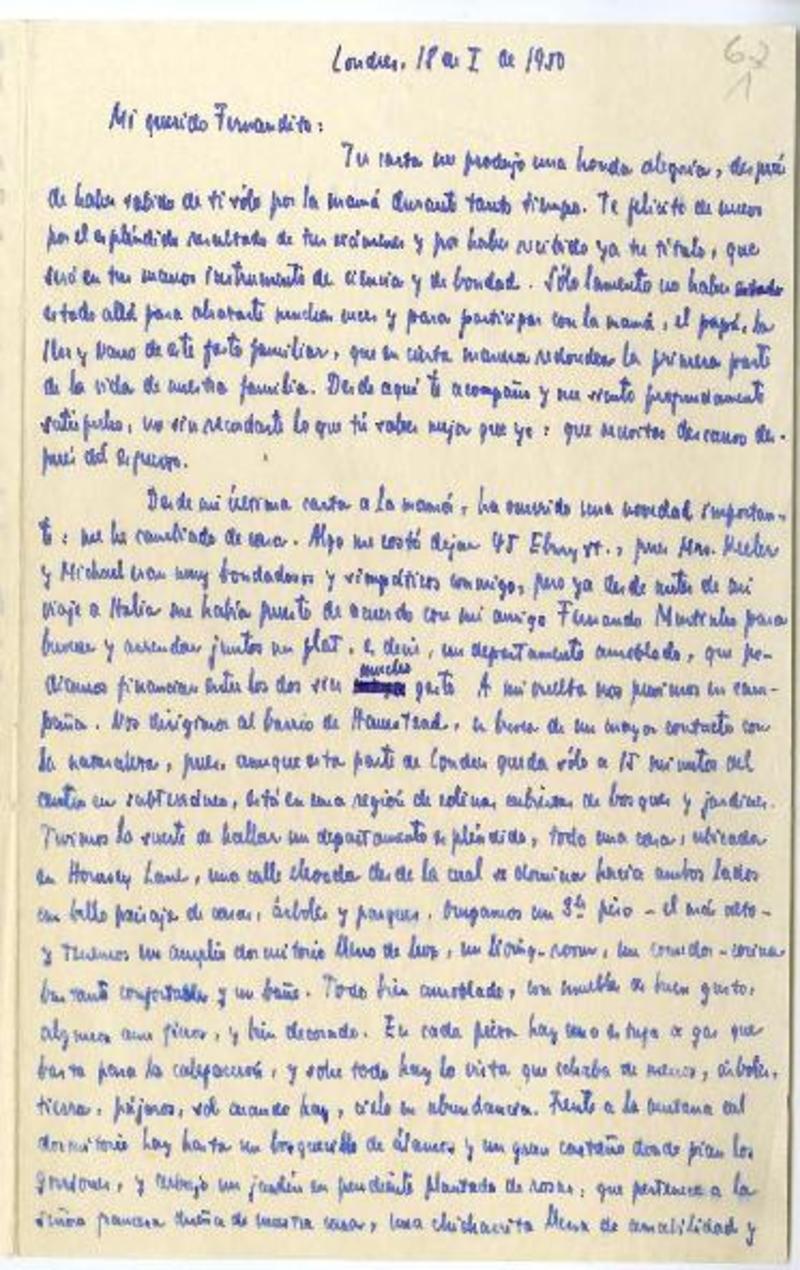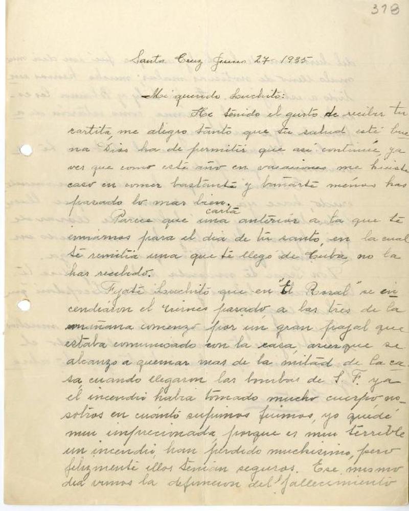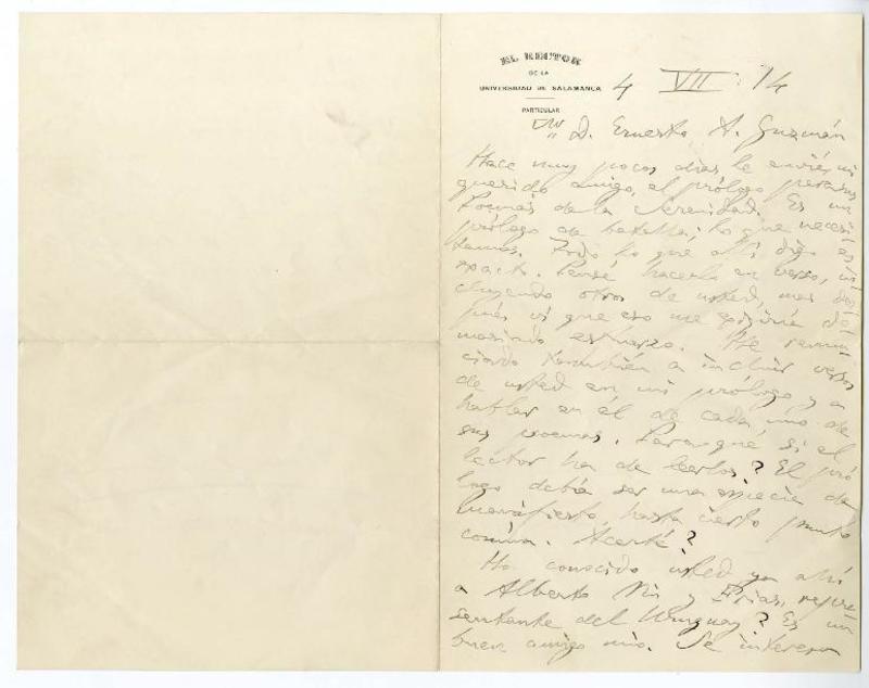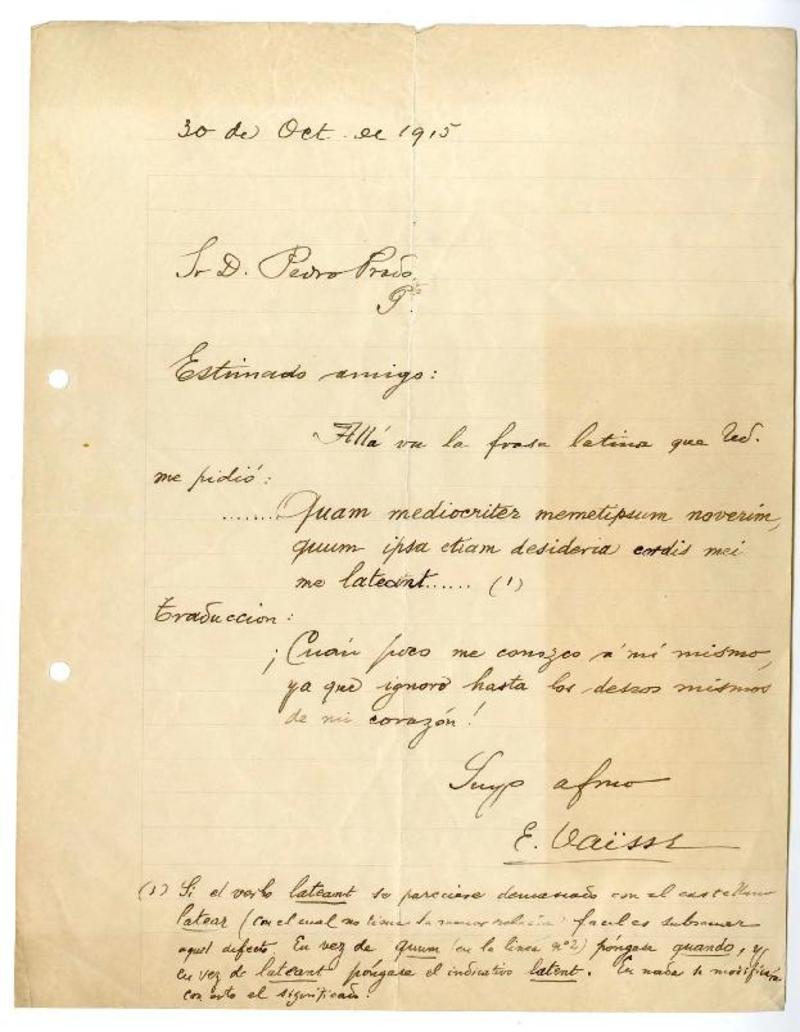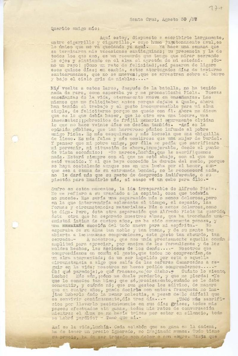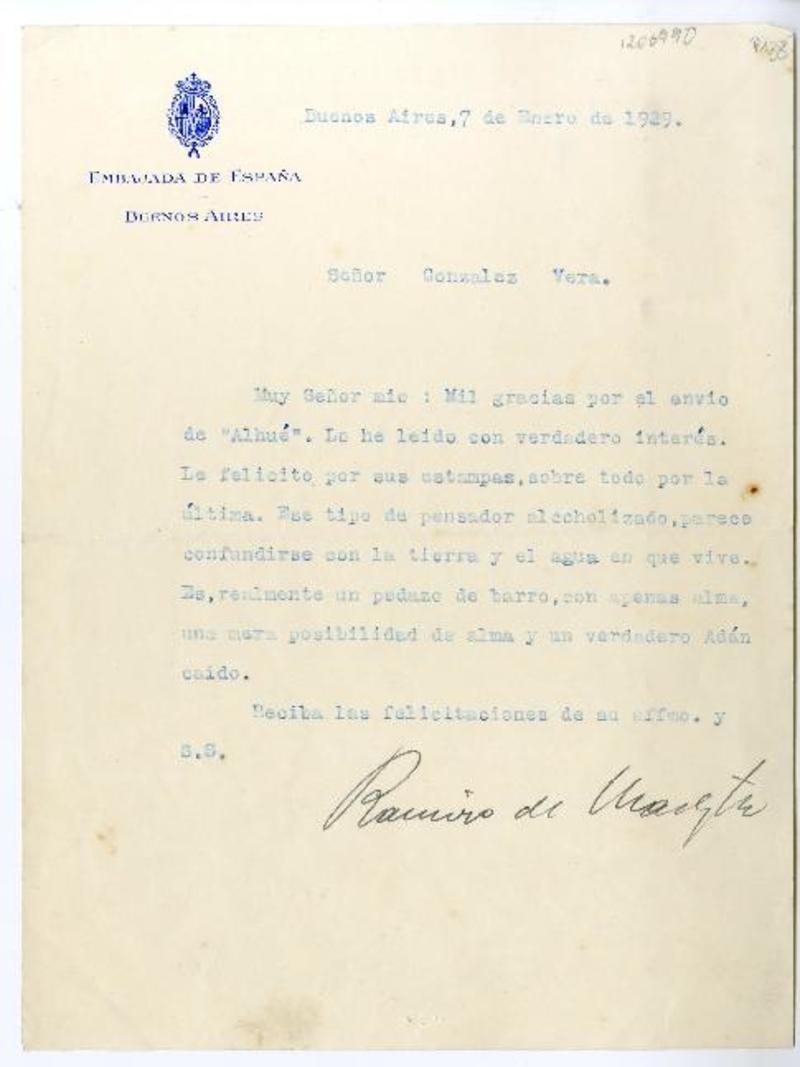 Vaucluse, Francia [a] Alfonso Bulnes, Chile Carta, 1929 agosto 27, [manuscrito] Gabriela Mistral.