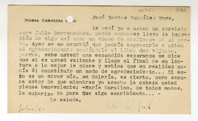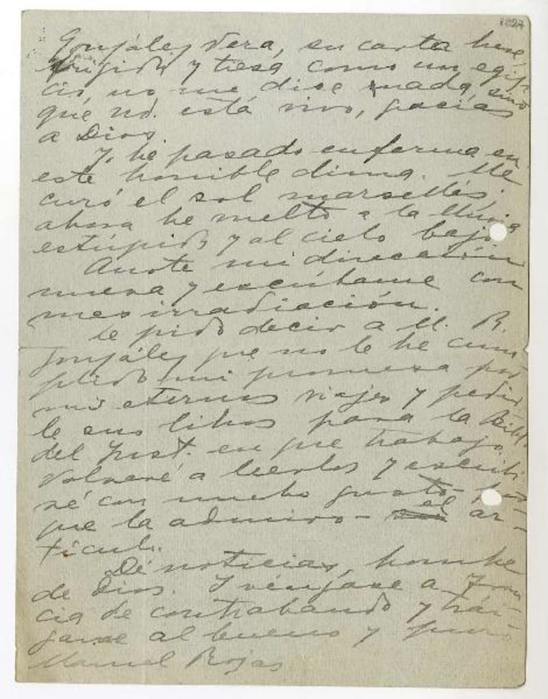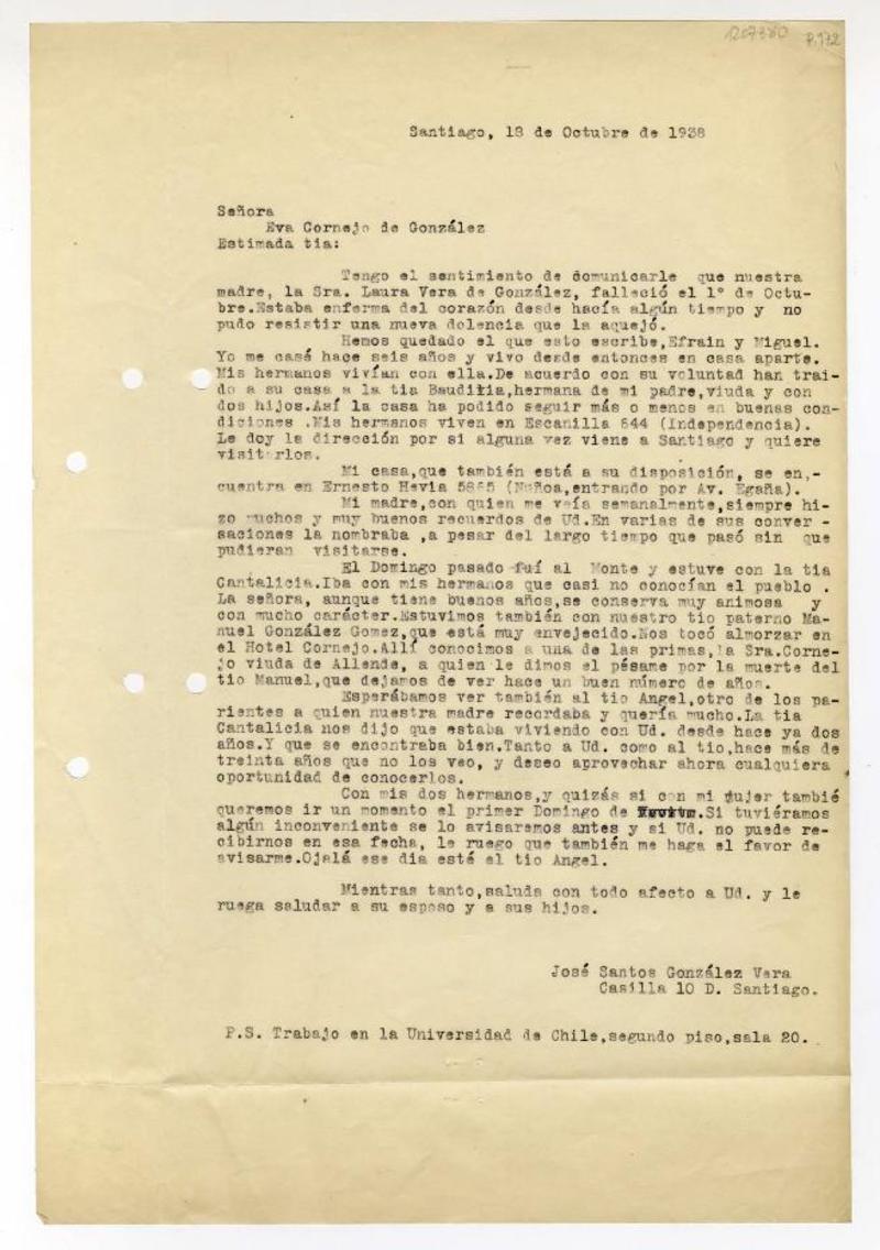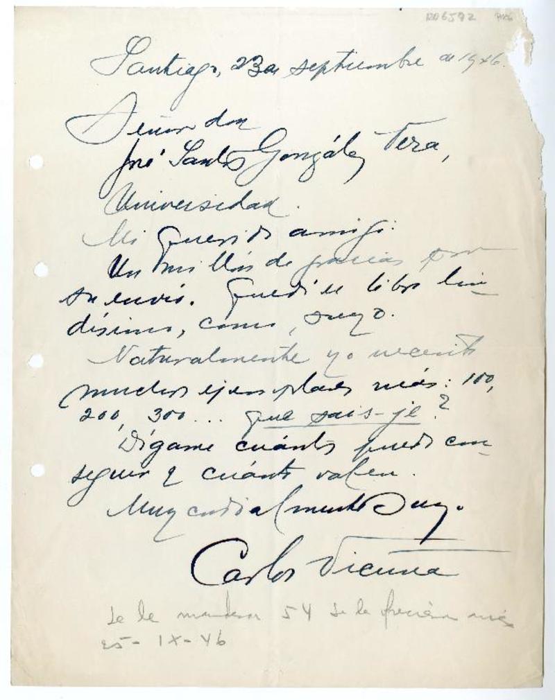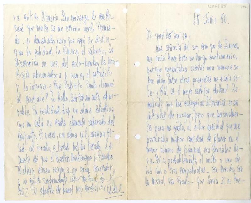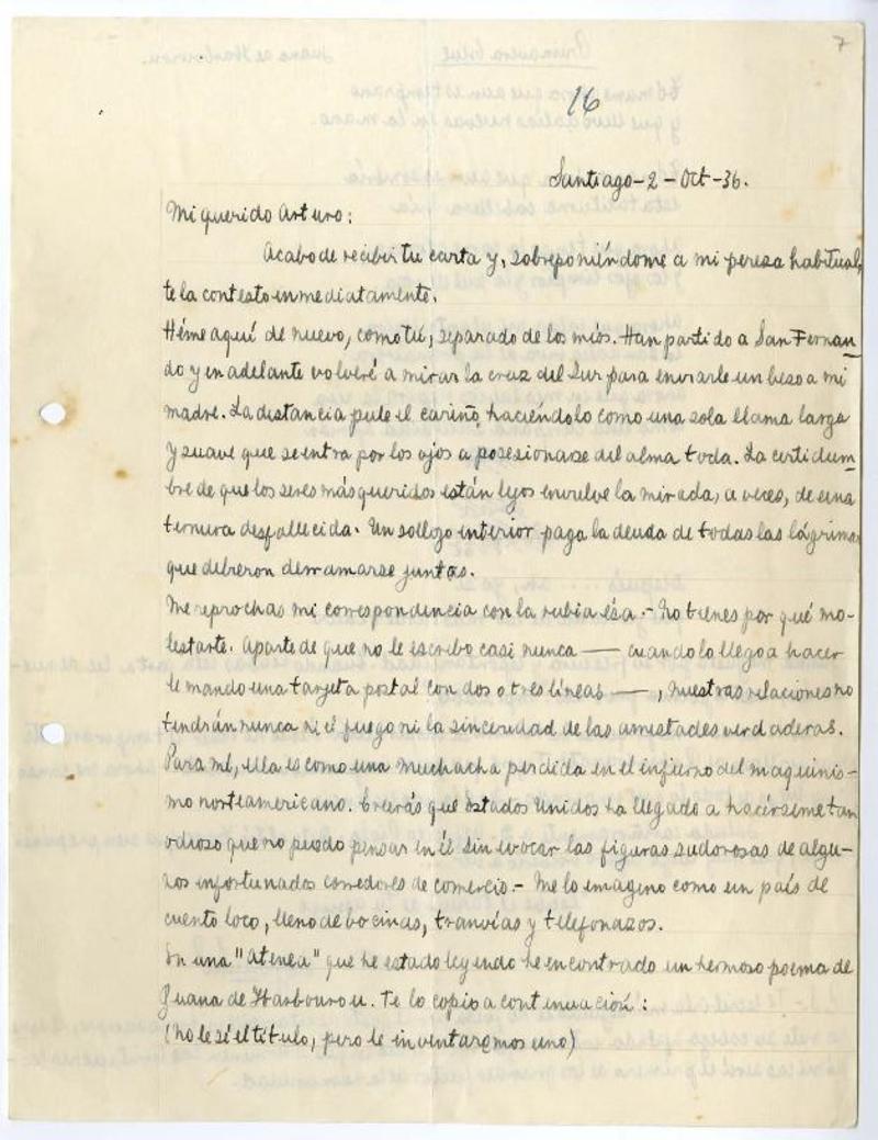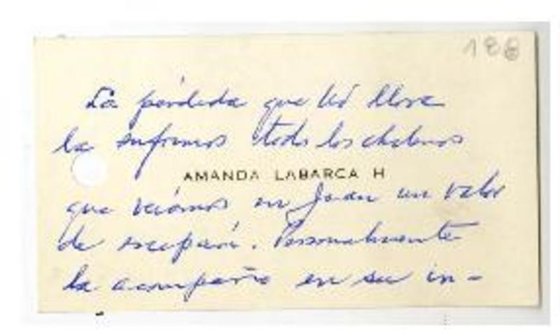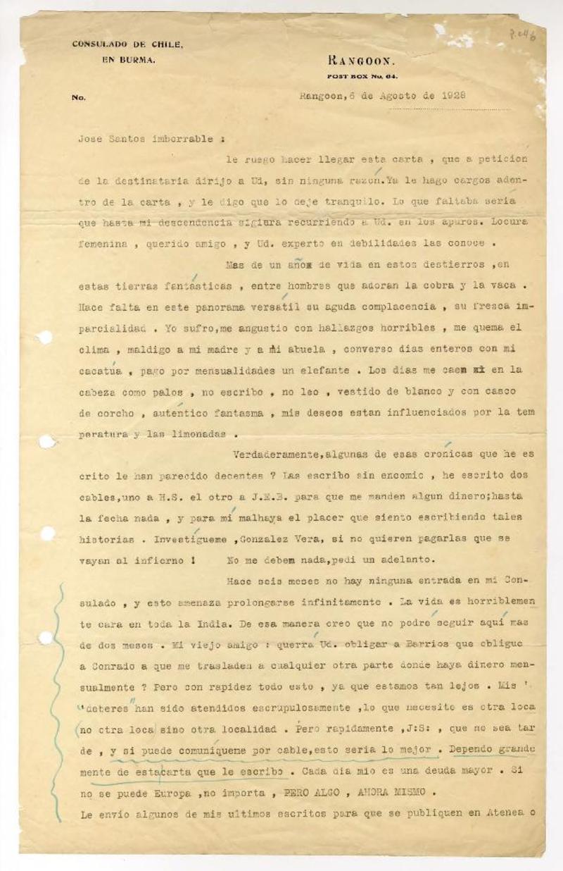 Labarca Hubertson, Amanda - Autoras chilenas - Autores chilenos - Manuscritos chilenos - González Vera, José Santos - Correspondencia