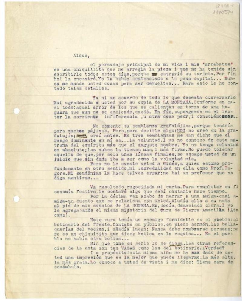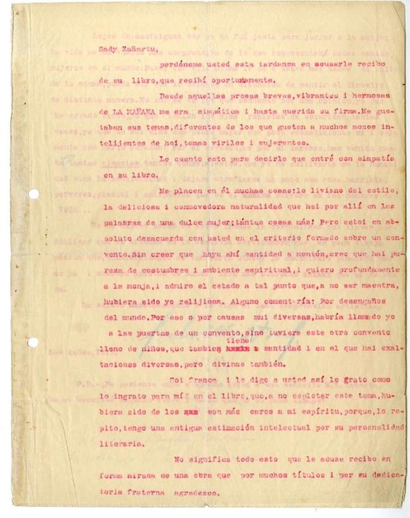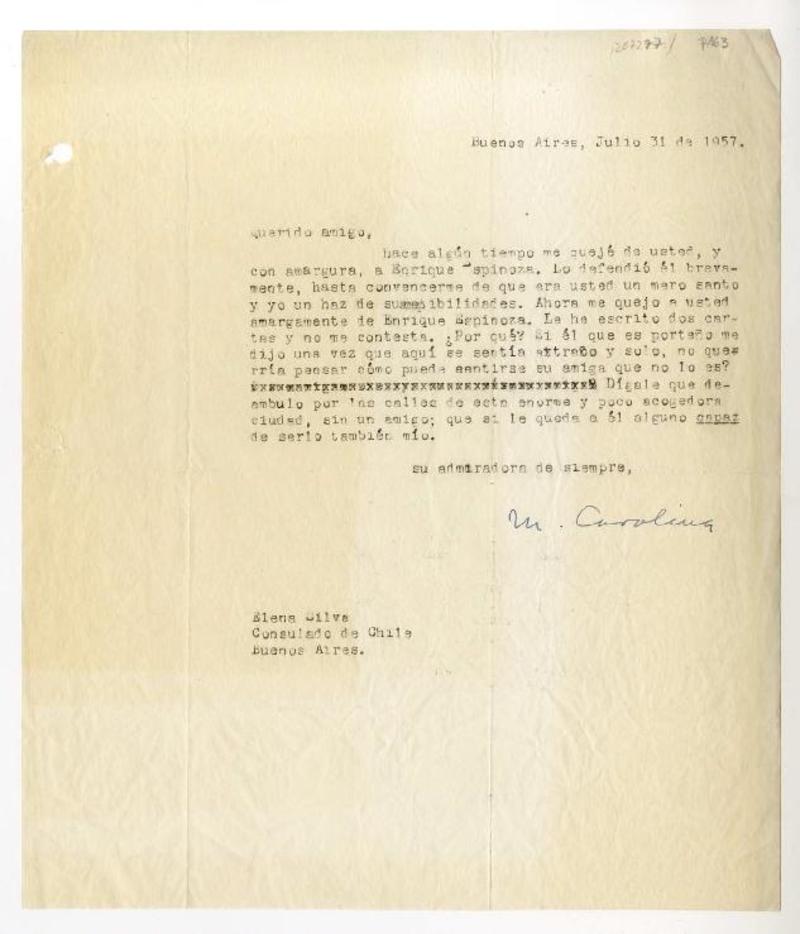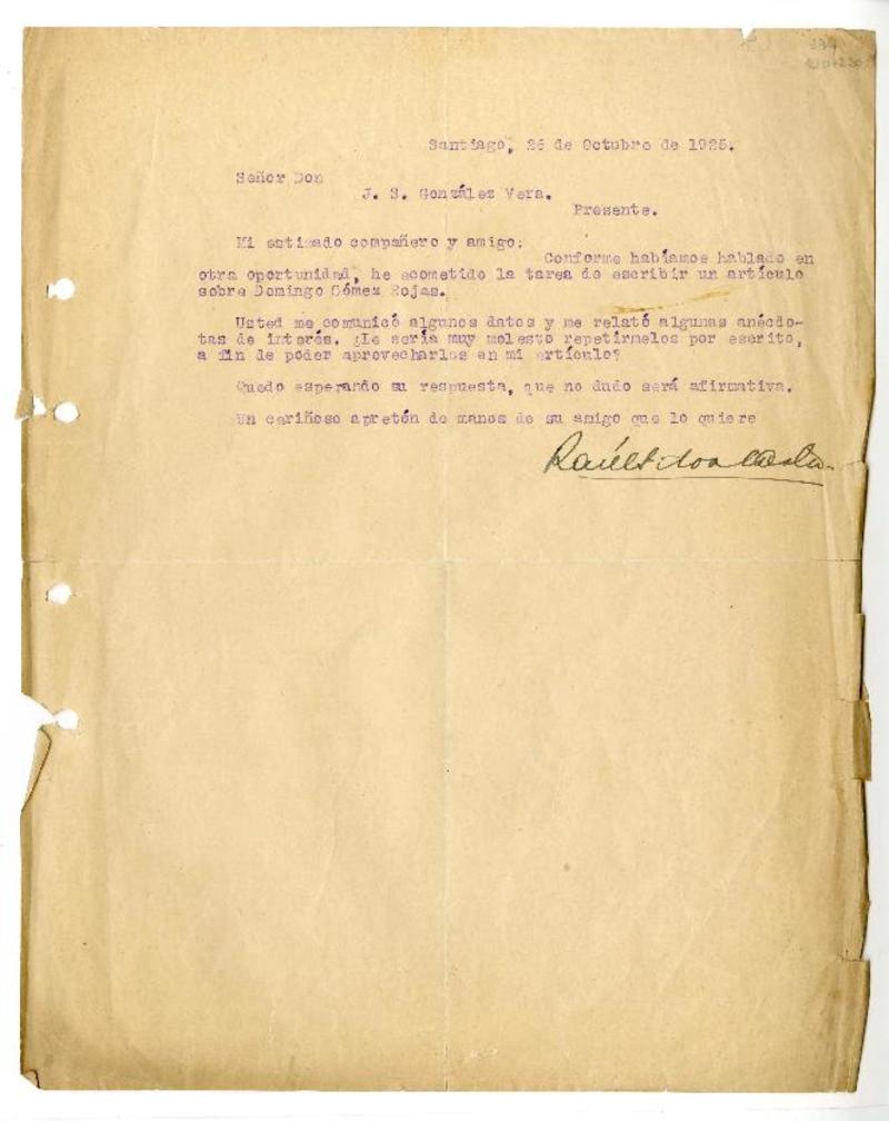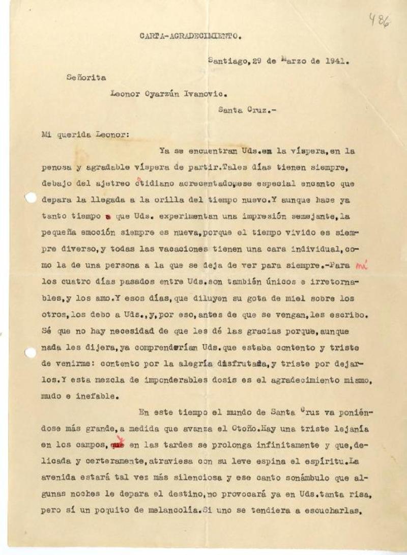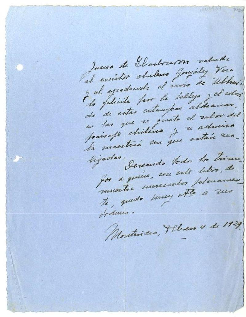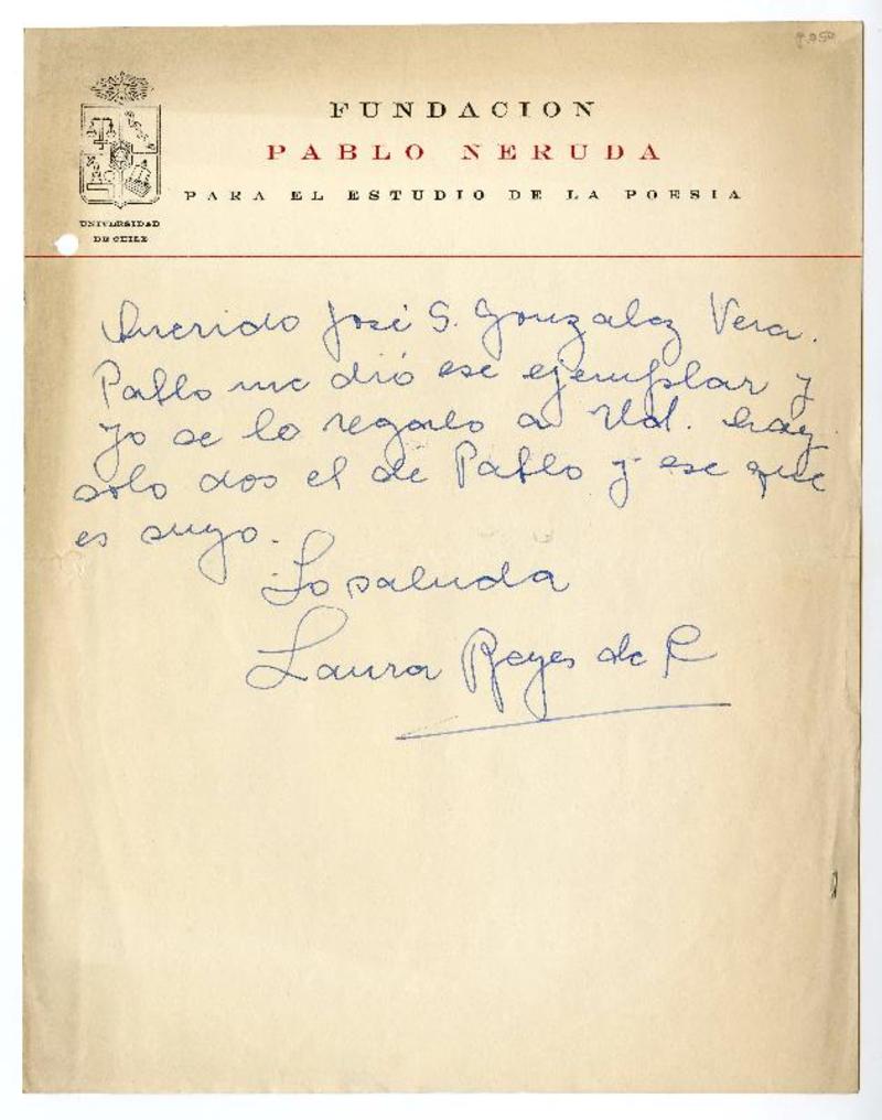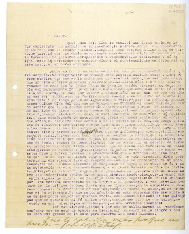 Labarca Hubertson, Amanda - Autoras chilenas - Autores chilenos - Manuscritos chilenos - González Vera, José Santos - Correspondencia