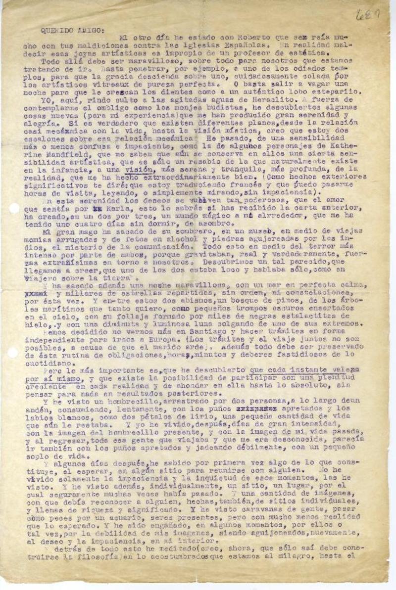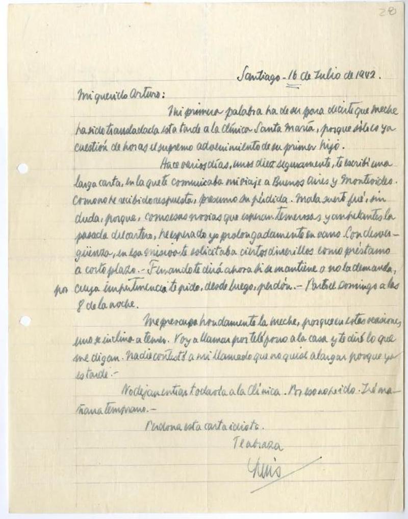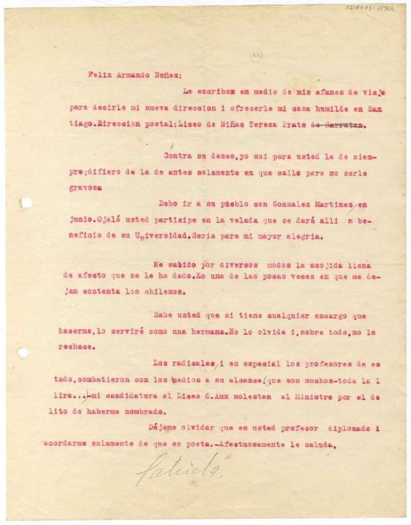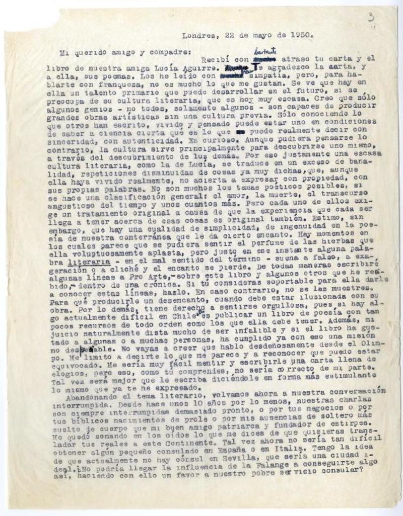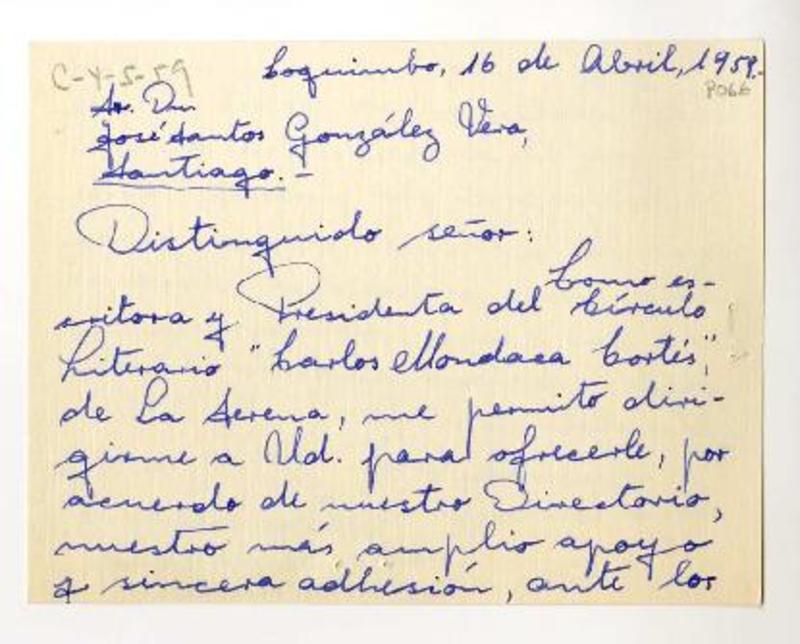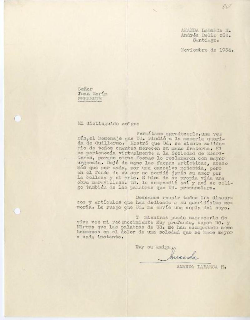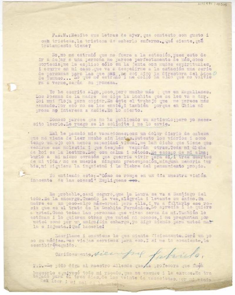 Labarca Hubertson, Amanda - Autoras chilenas - Autores chilenos - Manuscritos chilenos - González Vera, José Santos - Correspondencia