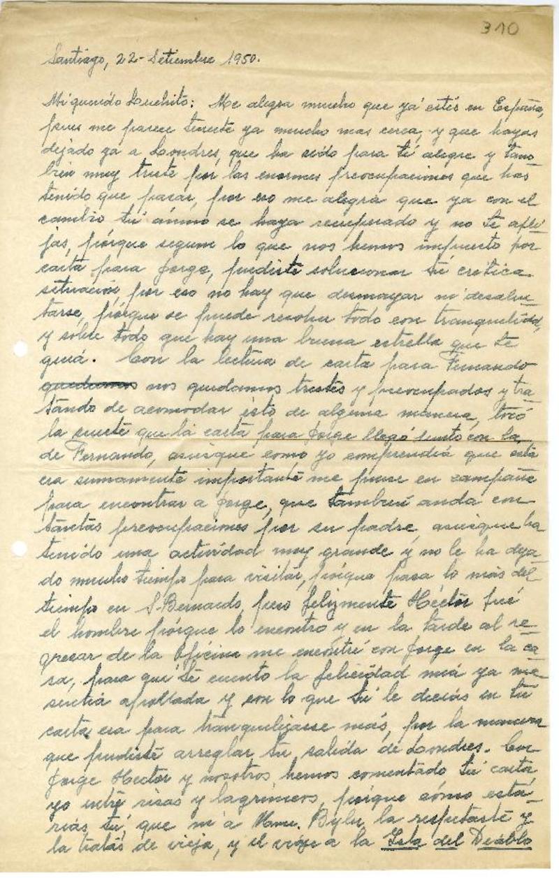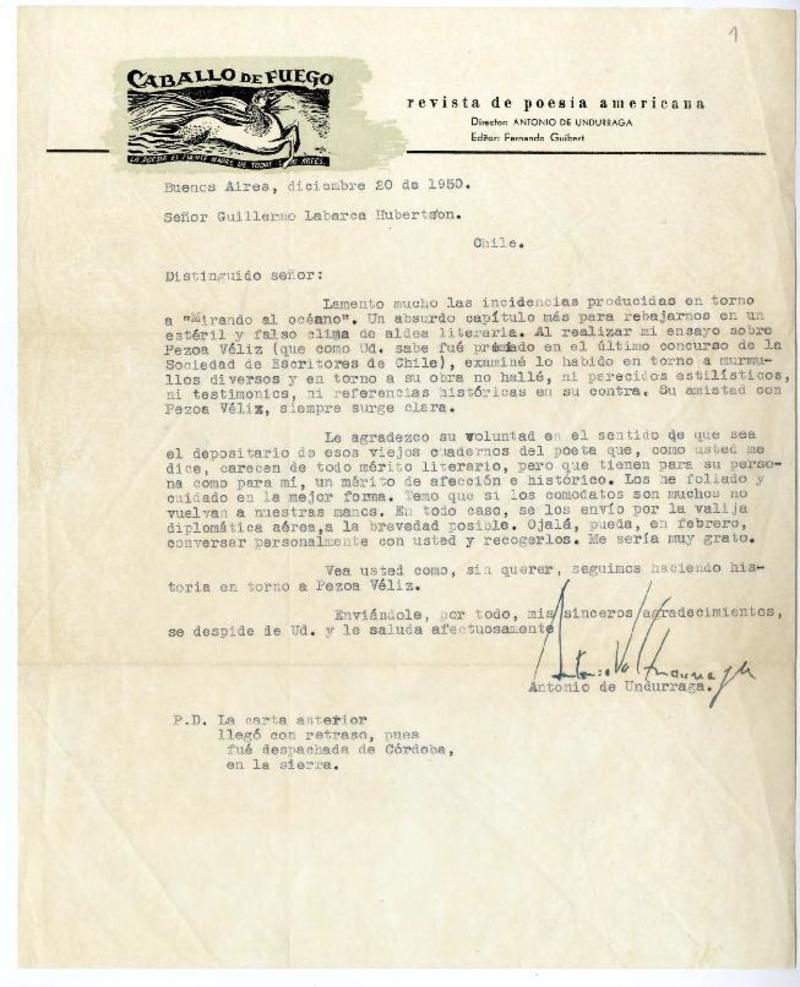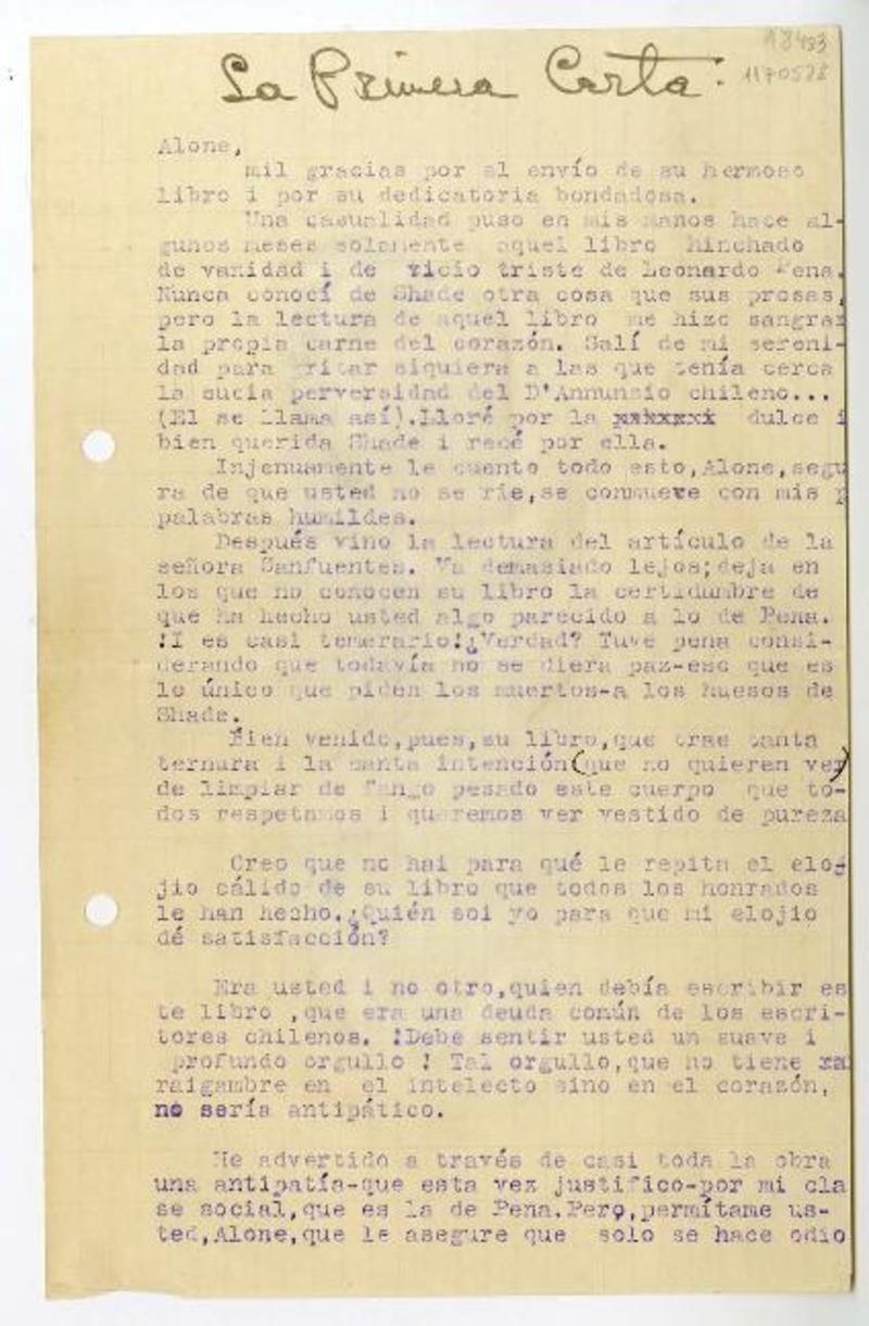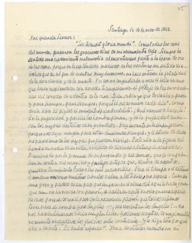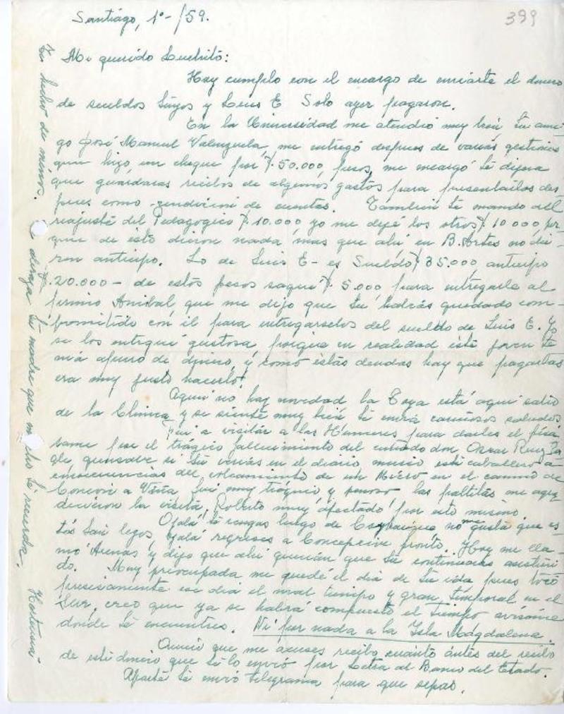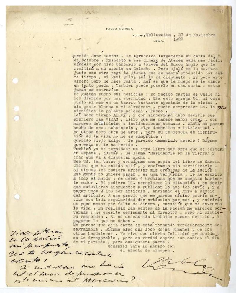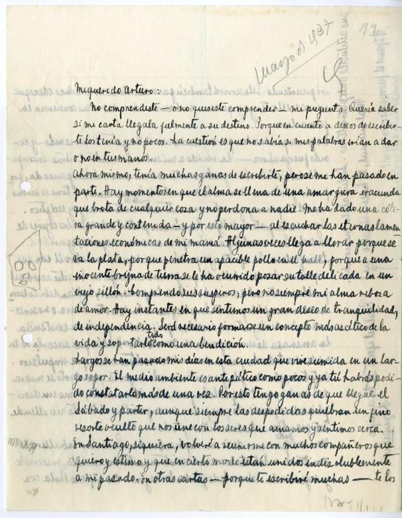 Labarca Hubertson, Amanda - Autoras chilenas - Autores chilenos - Manuscritos chilenos - González Vera, José Santos - Correspondencia