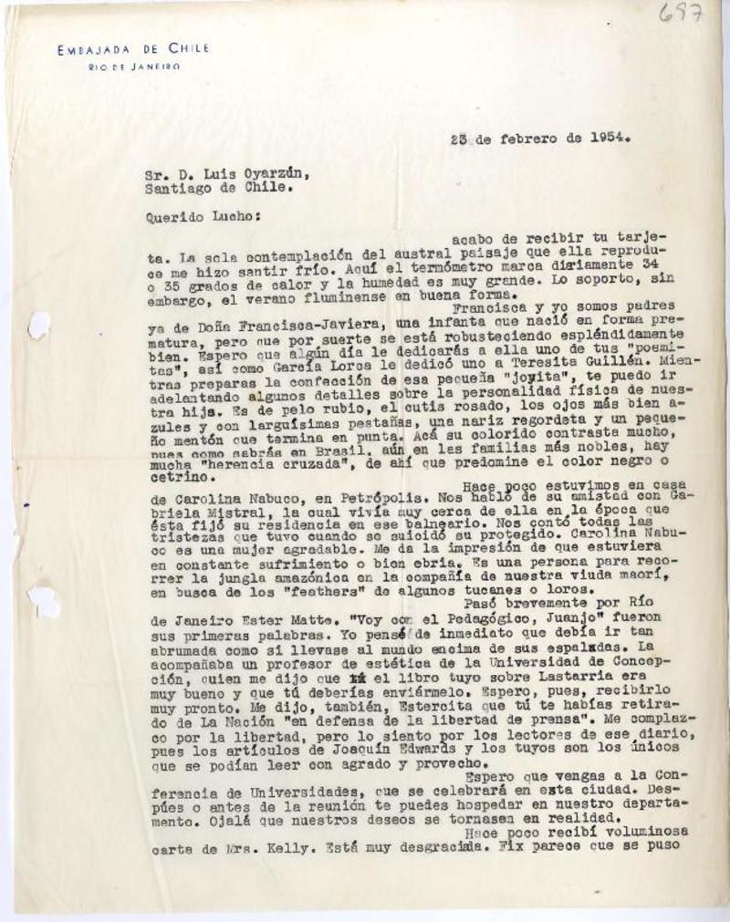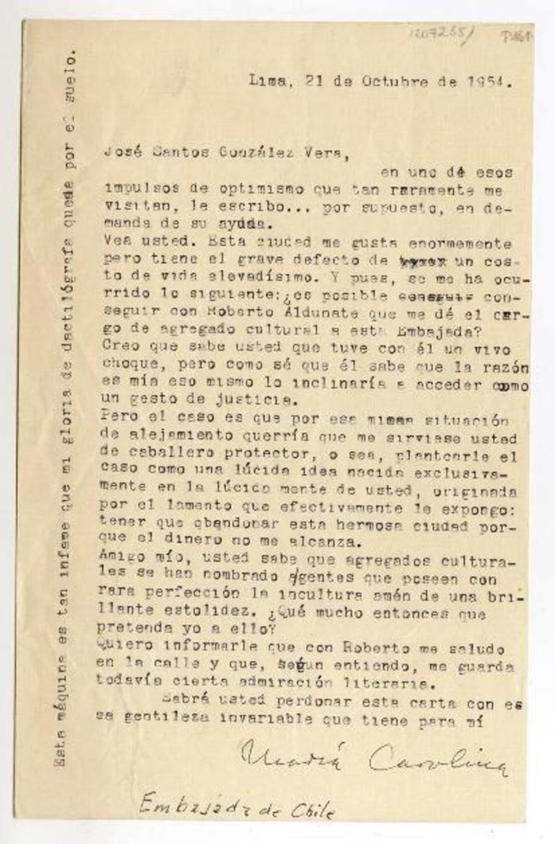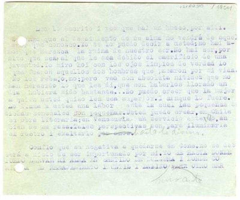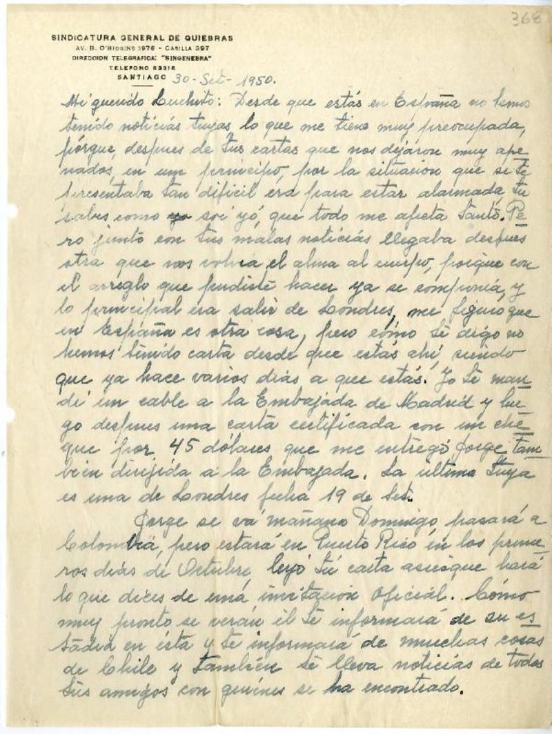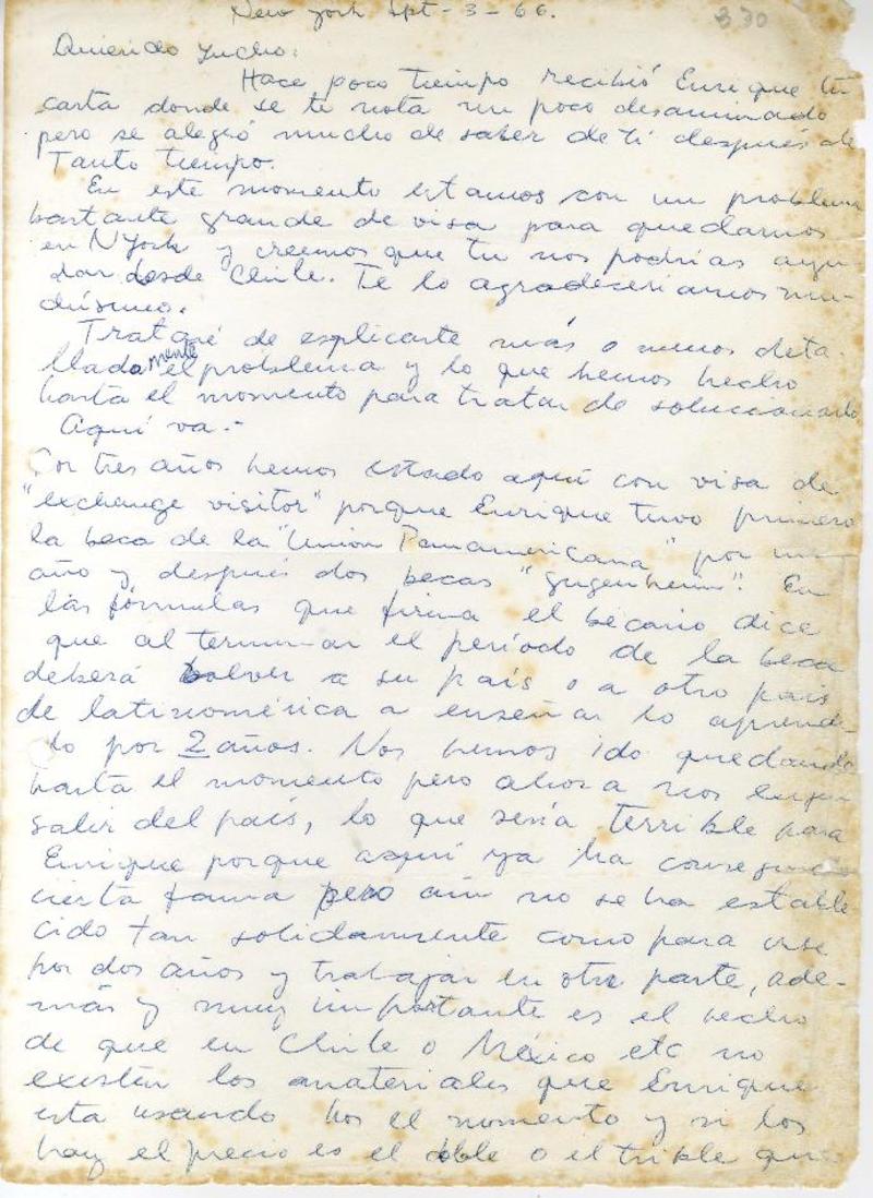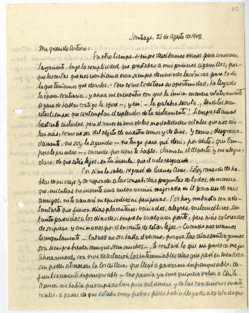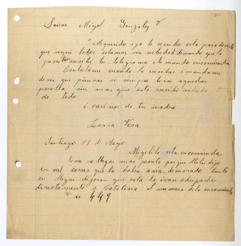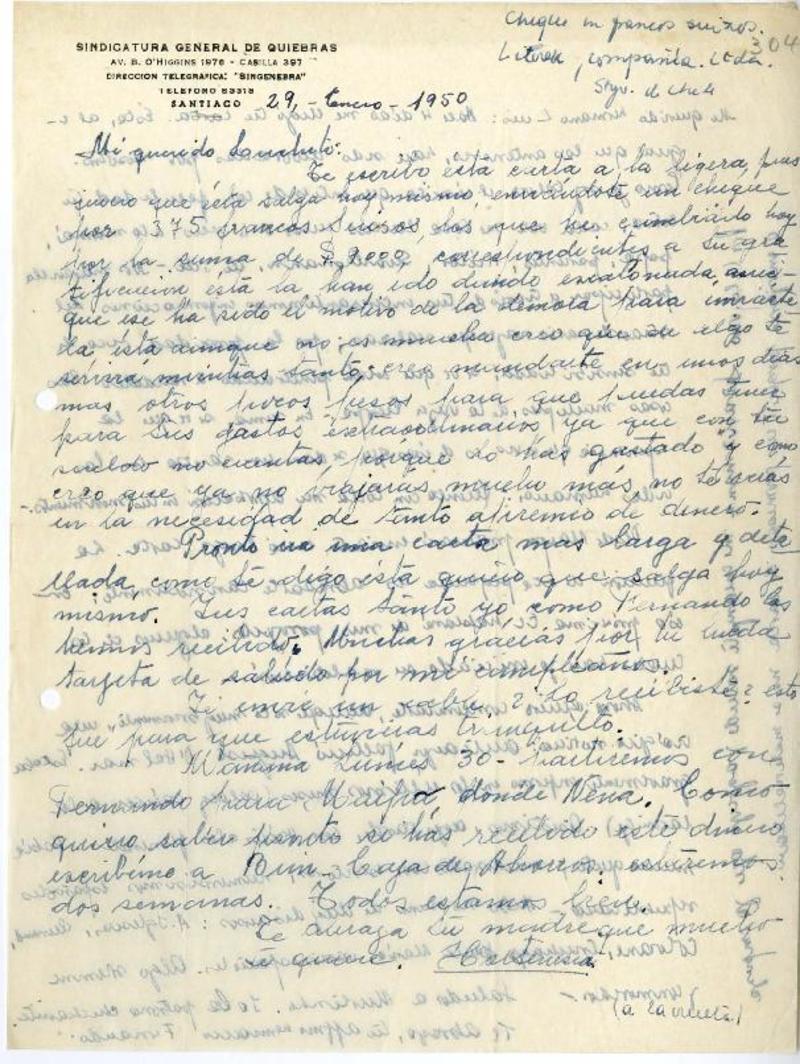 Labarca Hubertson, Amanda - Autoras chilenas - Autores chilenos - Manuscritos chilenos - González Vera, José Santos - Correspondencia