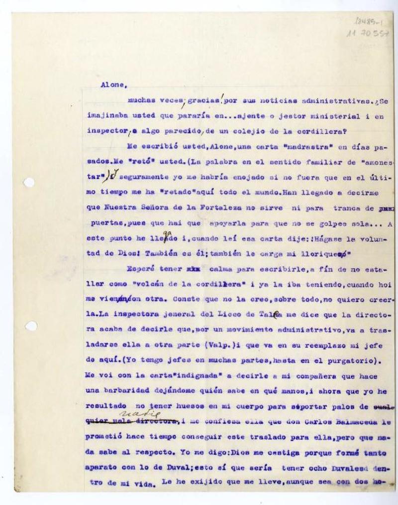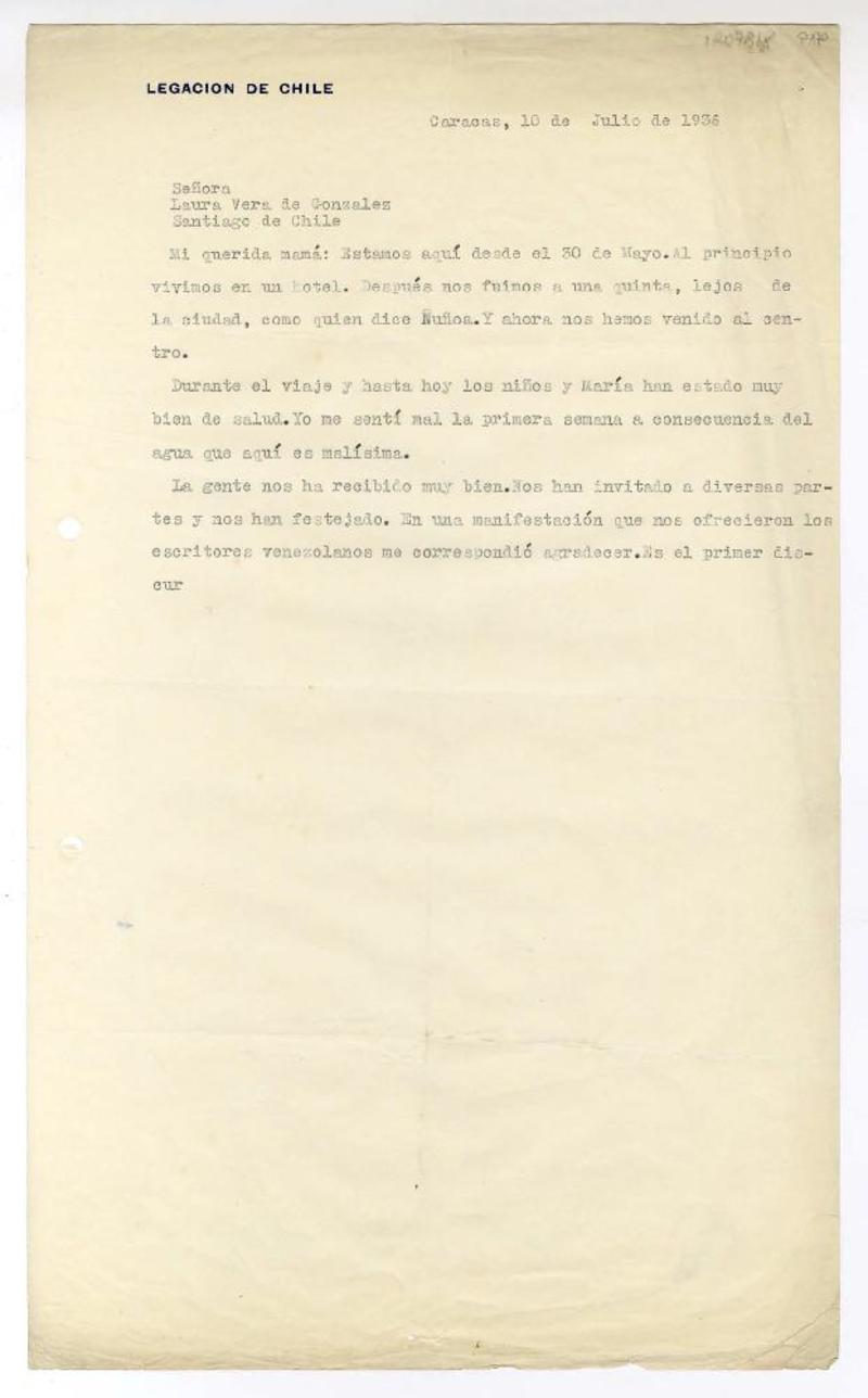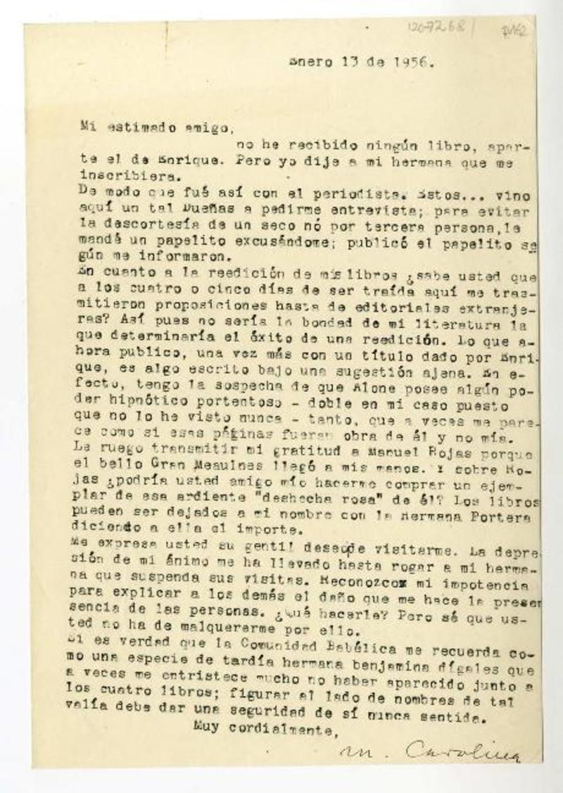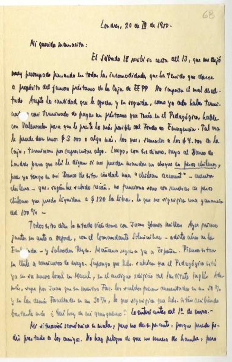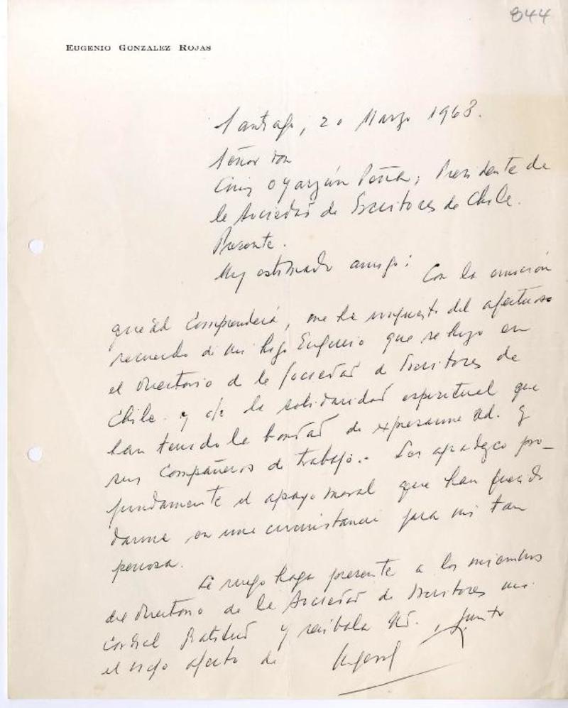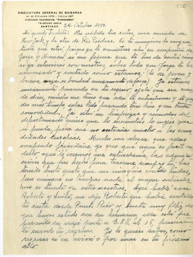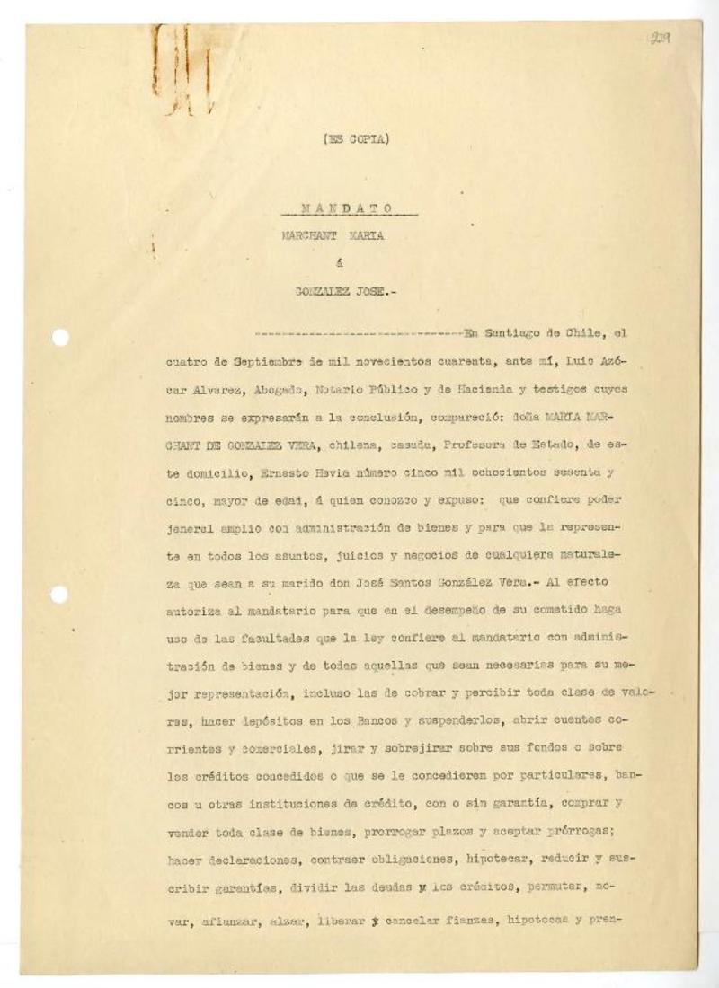 Labarca Hubertson, Amanda - Autoras chilenas - Autores chilenos - Manuscritos chilenos - González Vera, José Santos - Correspondencia