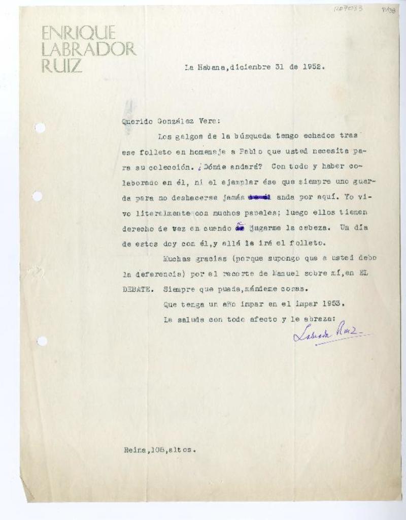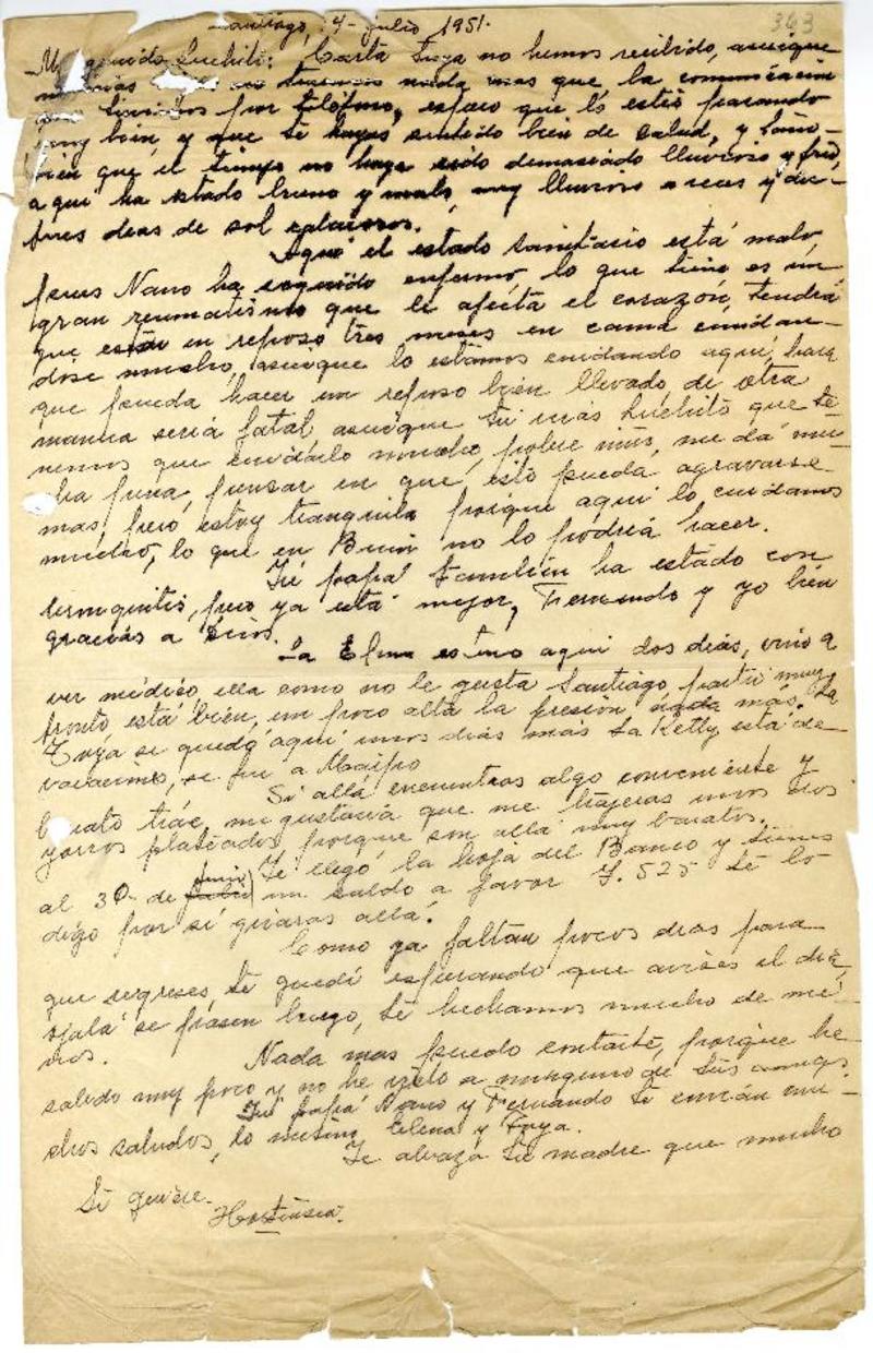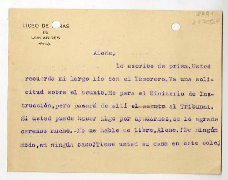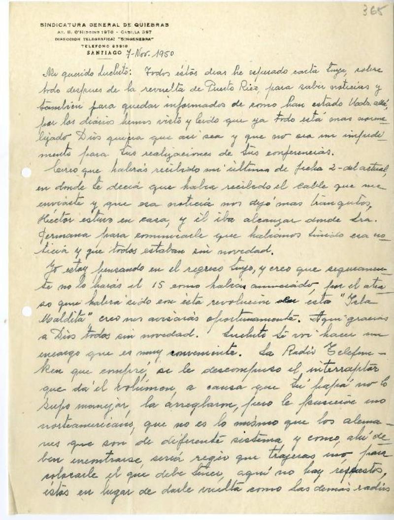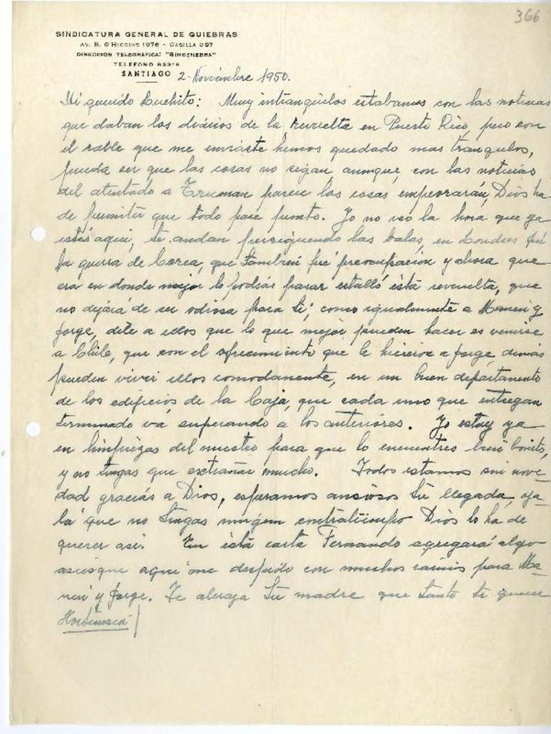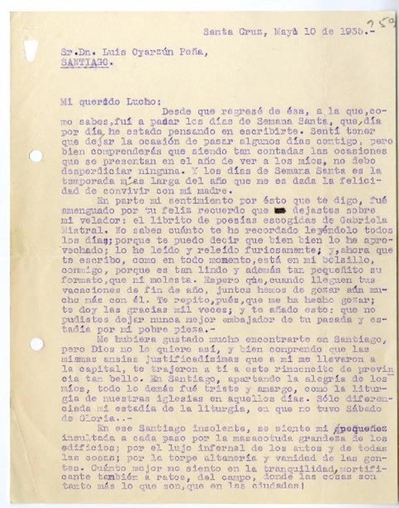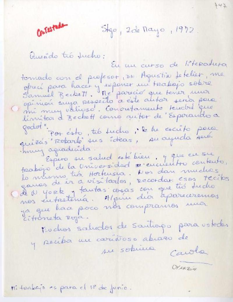 Labarca Hubertson, Amanda - Autoras chilenas - Autores chilenos - Manuscritos chilenos - González Vera, José Santos - Correspondencia