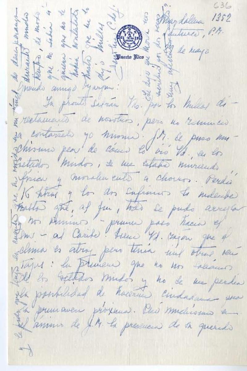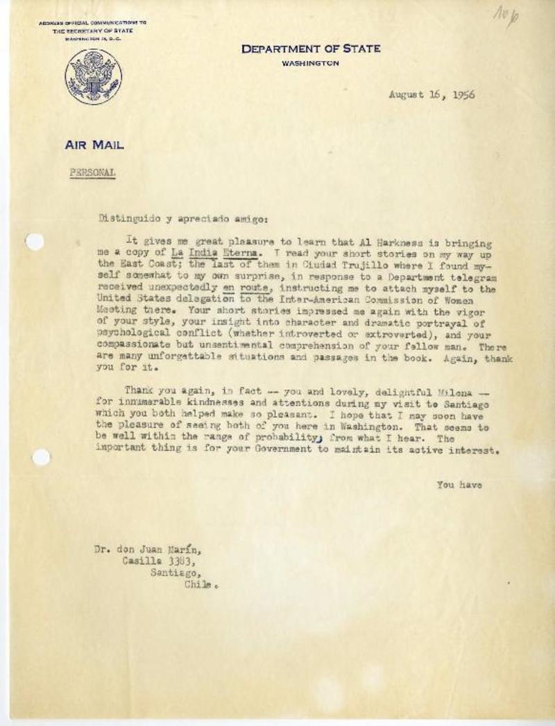 Washington [a] Salvador Reyes Carta, 1948 mayo 29, [manuscrito] Juan Guzmán Cruchaga.