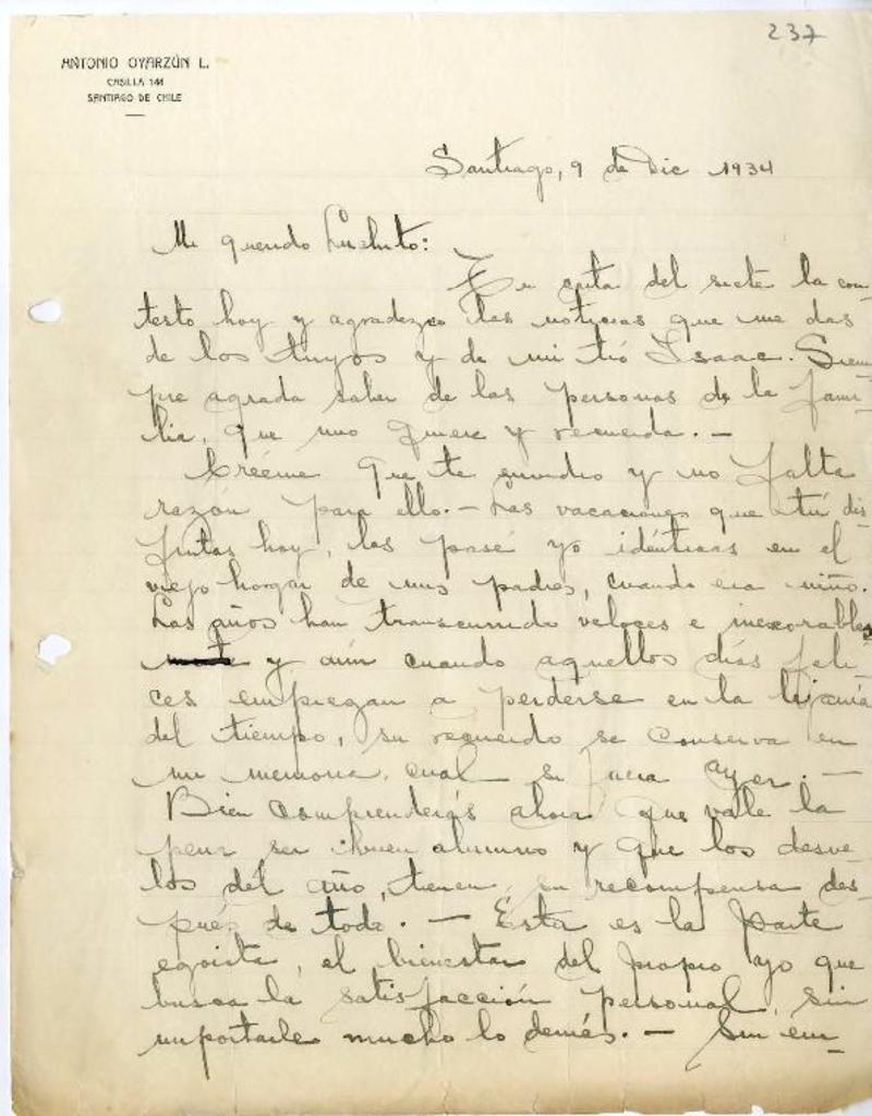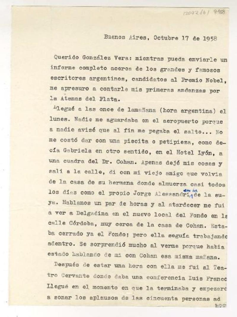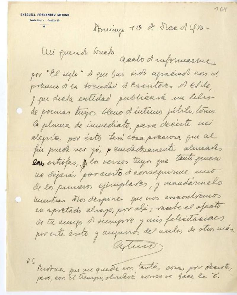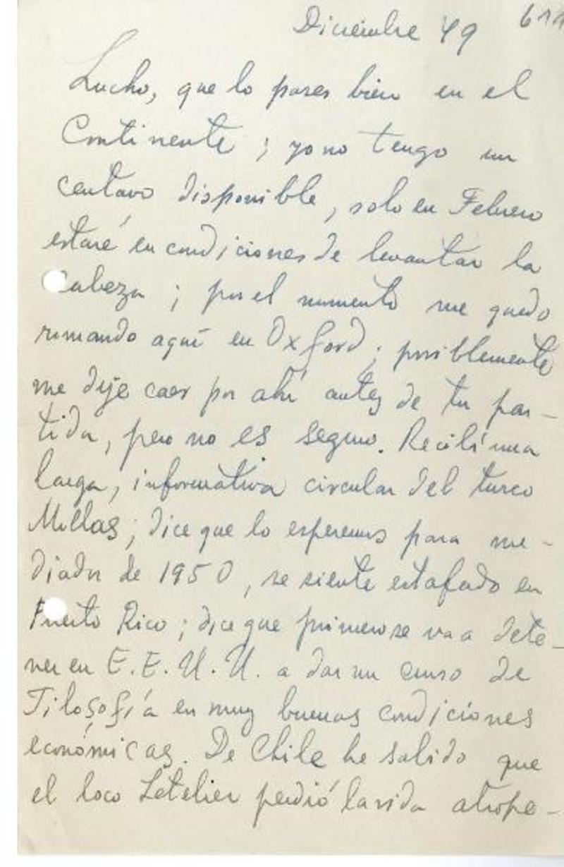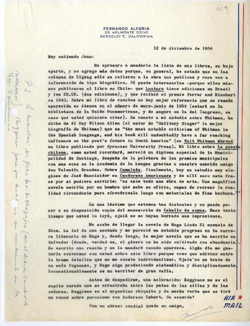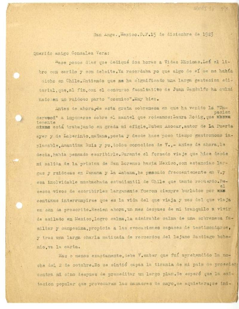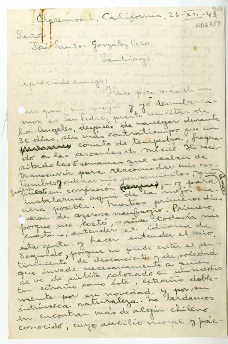 Antofagasta, Chile [a] José Santos González Vera, Santiago, Chile Carta, 1948 diciembre 2, [manuscrito] Alejandro Escobar Carvallo.
