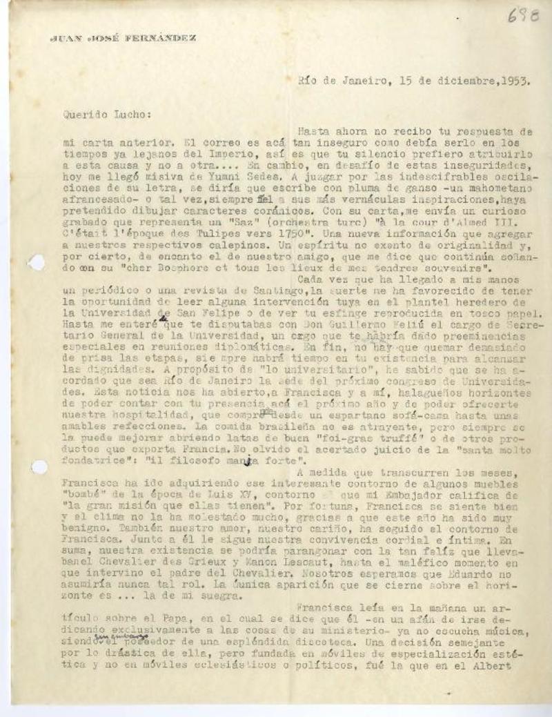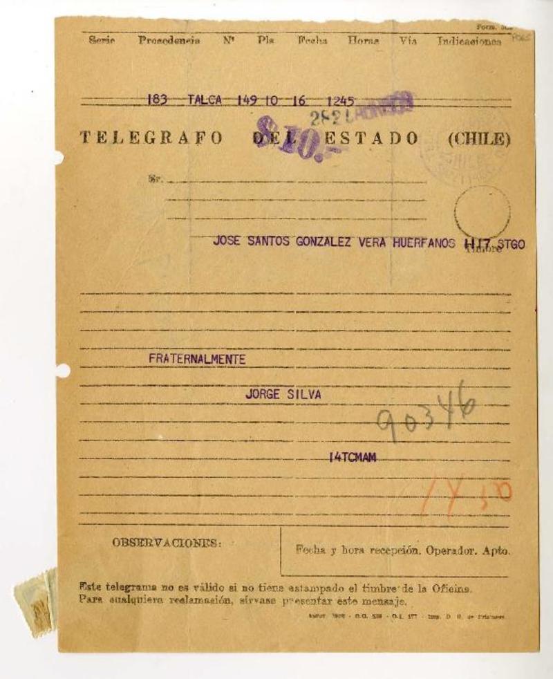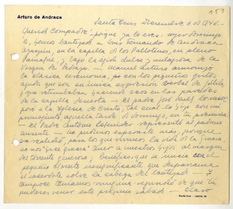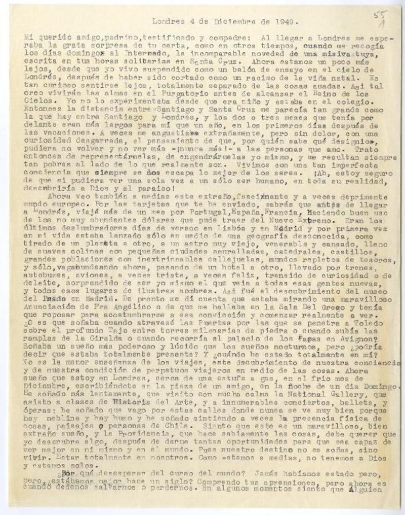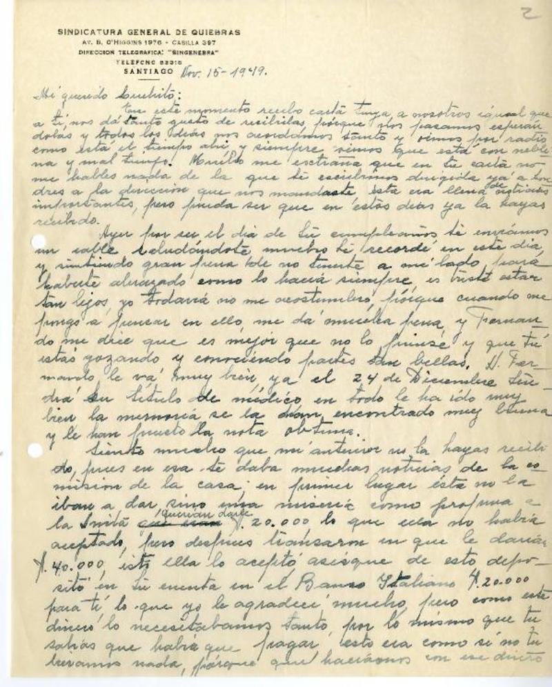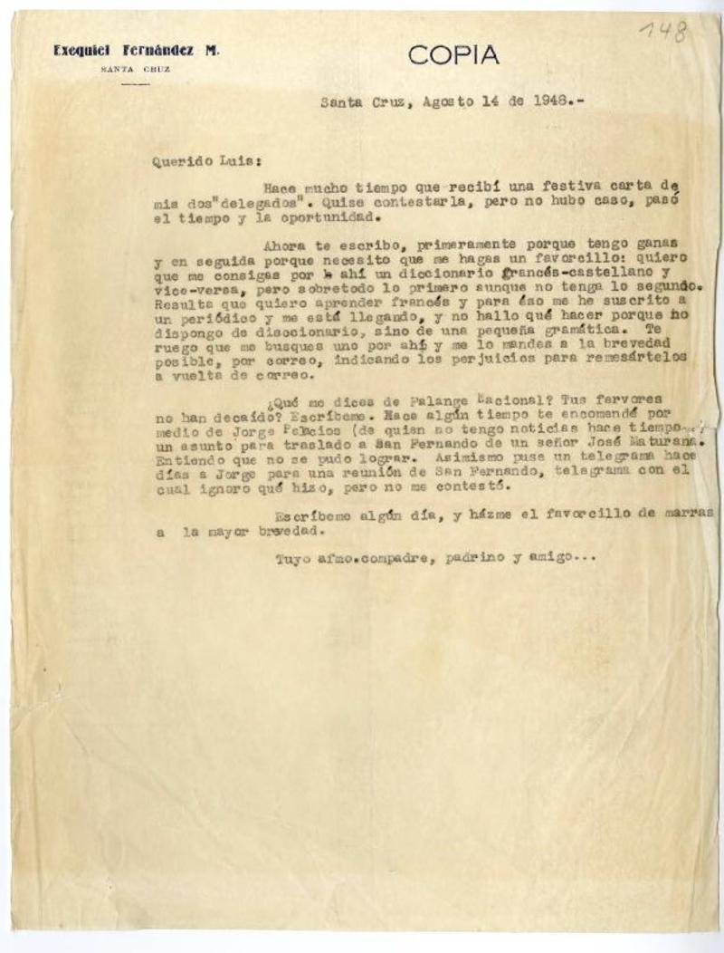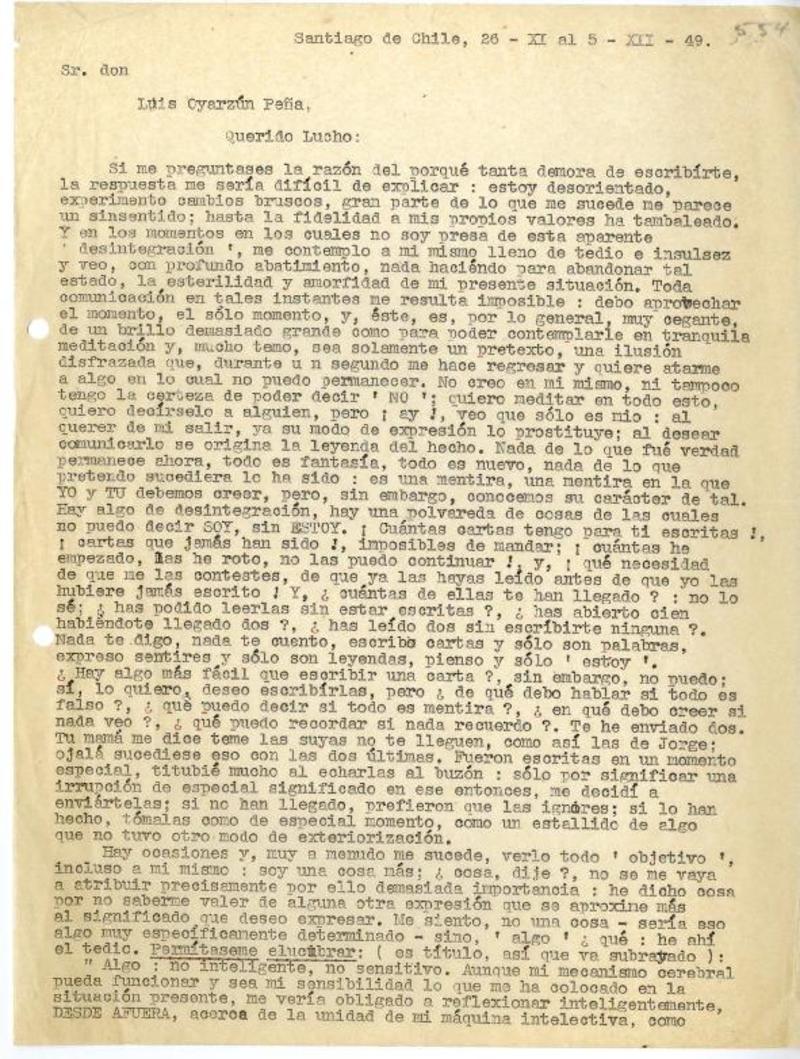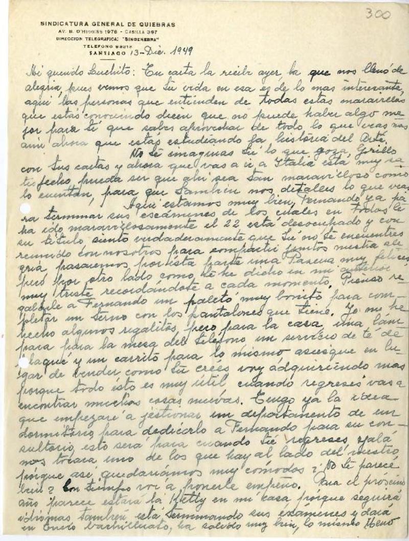 Antofagasta, Chile [a] José Santos González Vera, Santiago, Chile Carta, 1948 diciembre 2, [manuscrito] Alejandro Escobar Carvallo.