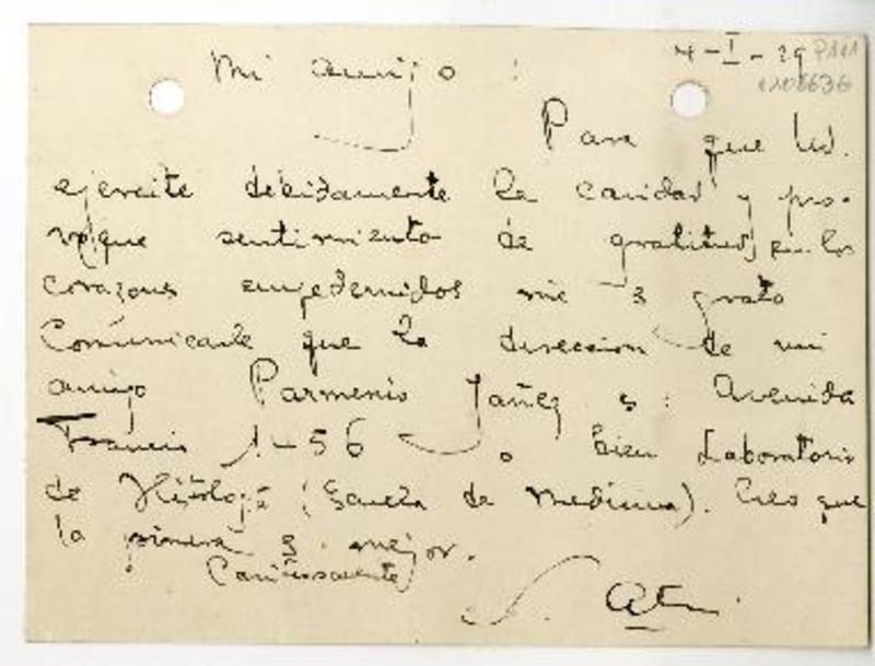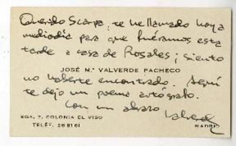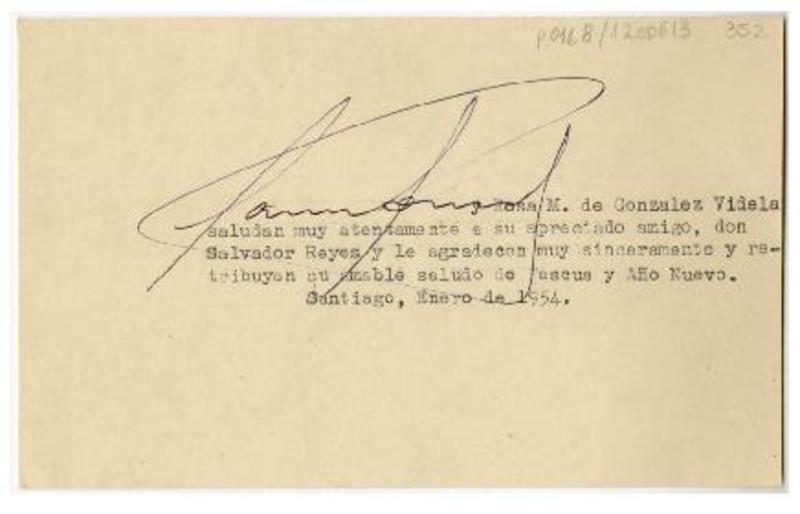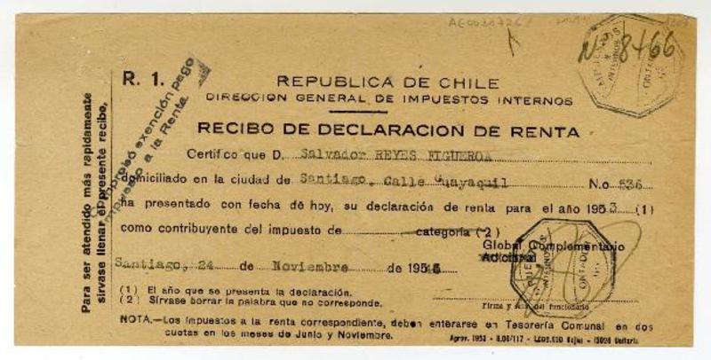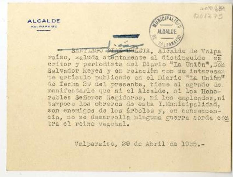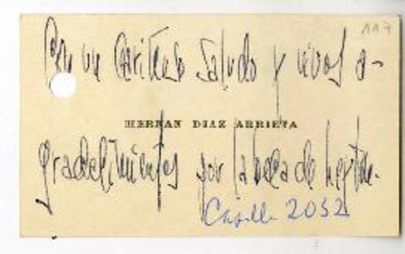 Valparaíso, Chile [a] Salvador Reyes Tarjeta, 1955 abril 29, [manuscrito] Santiago Díaz Buzeta.