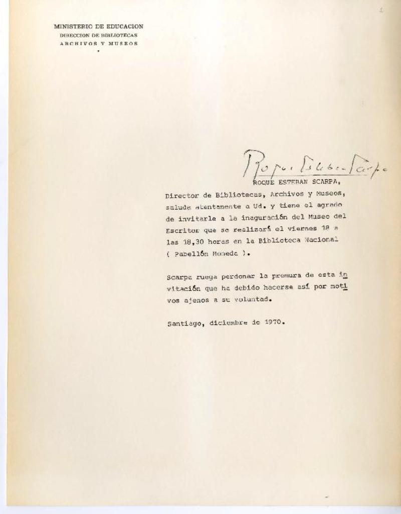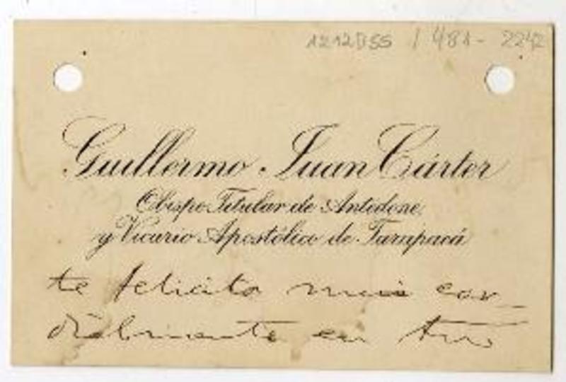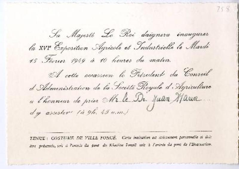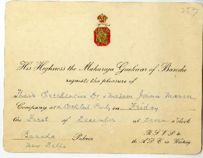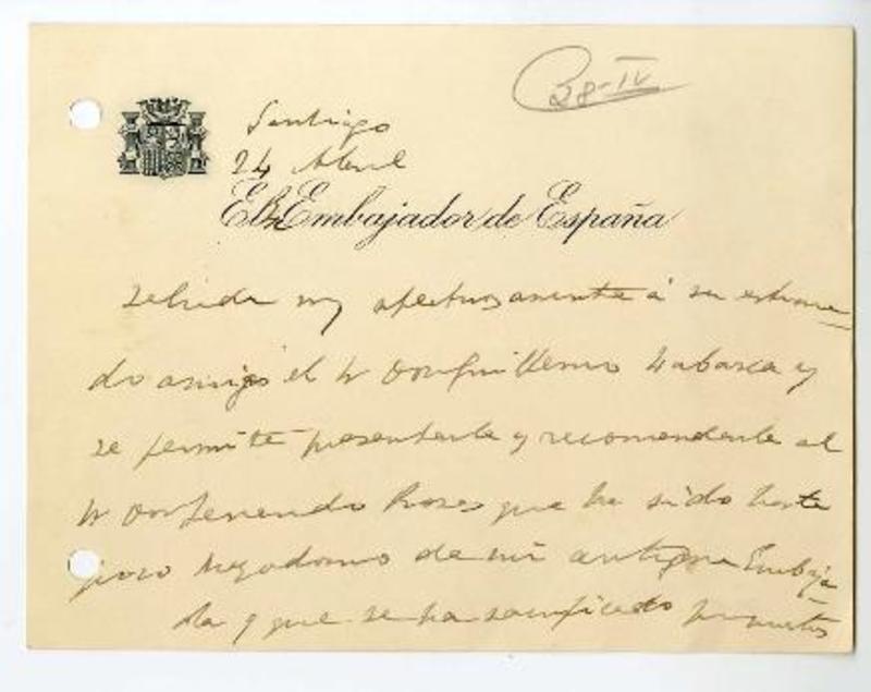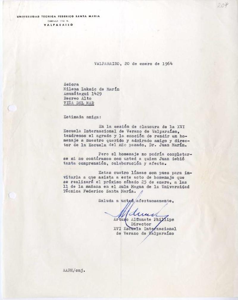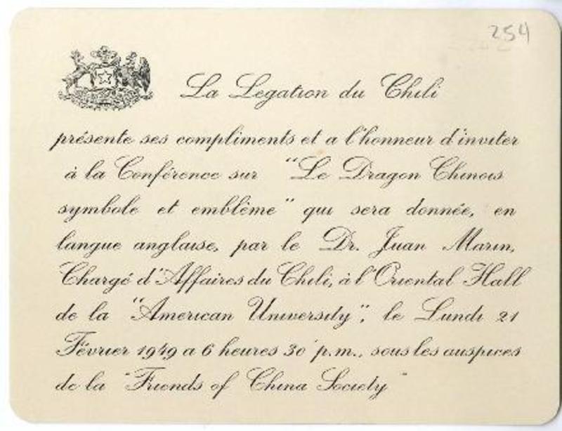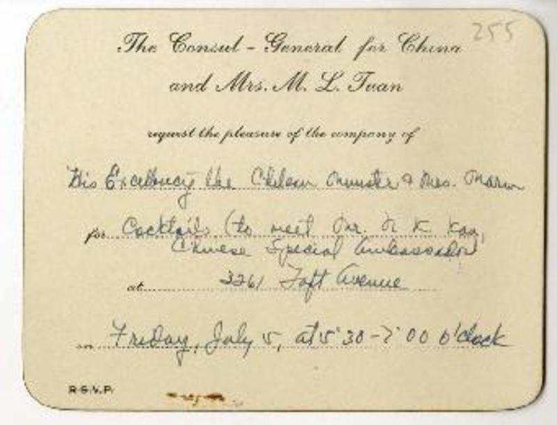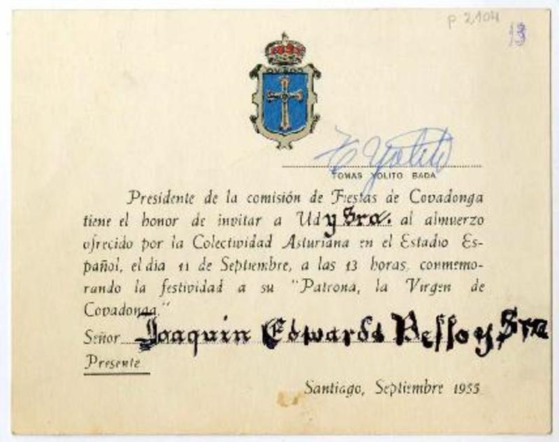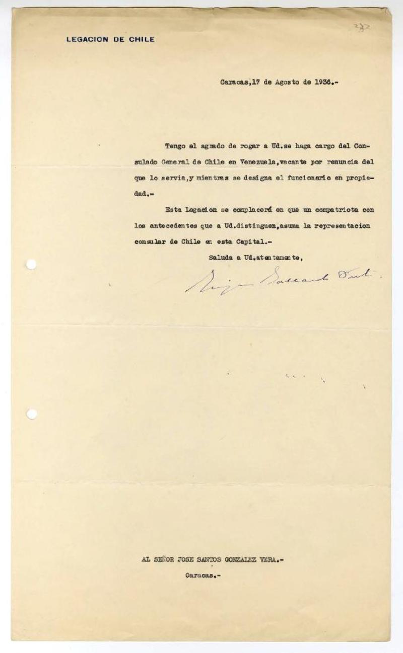 Valparaíso, Chile [a] Vicente Gandolfo Invitación, 1924 agosto 22, [manuscrito] Ilustre Municipalidad de Valparaíso (Chile).