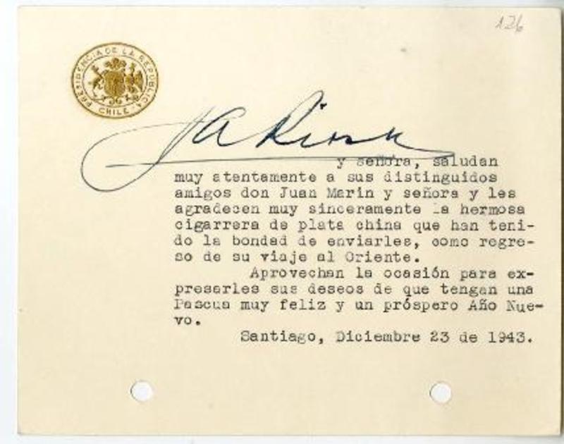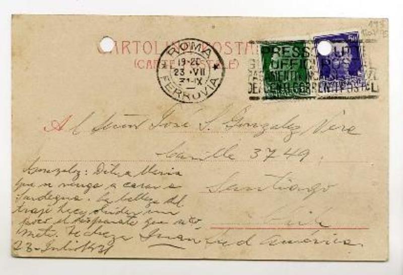 Valparaíso, Chile [a] Oscar Castro Tarjeta, 1938 diciembre 31, [manuscrito] Juan Marín.
