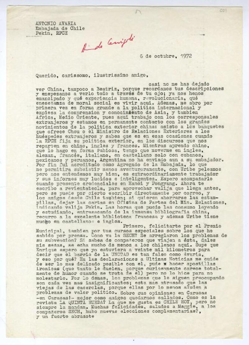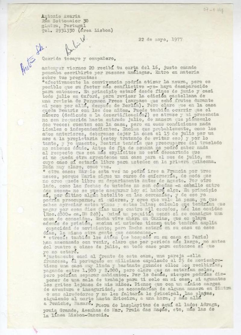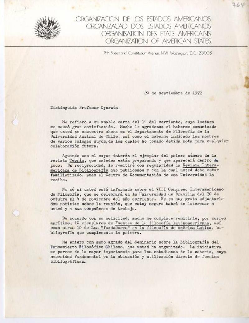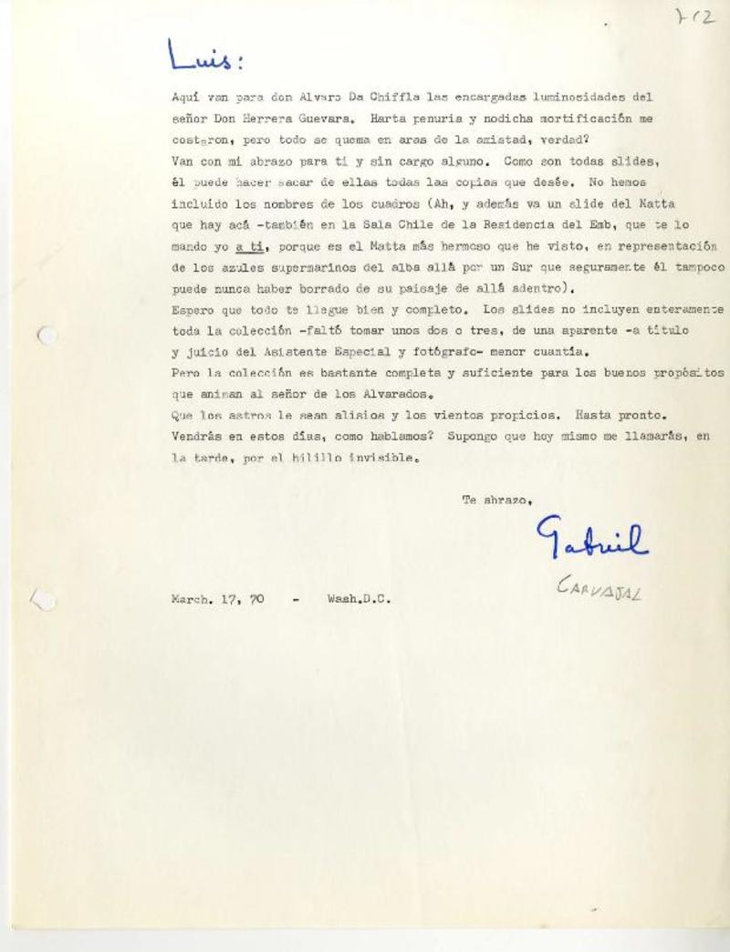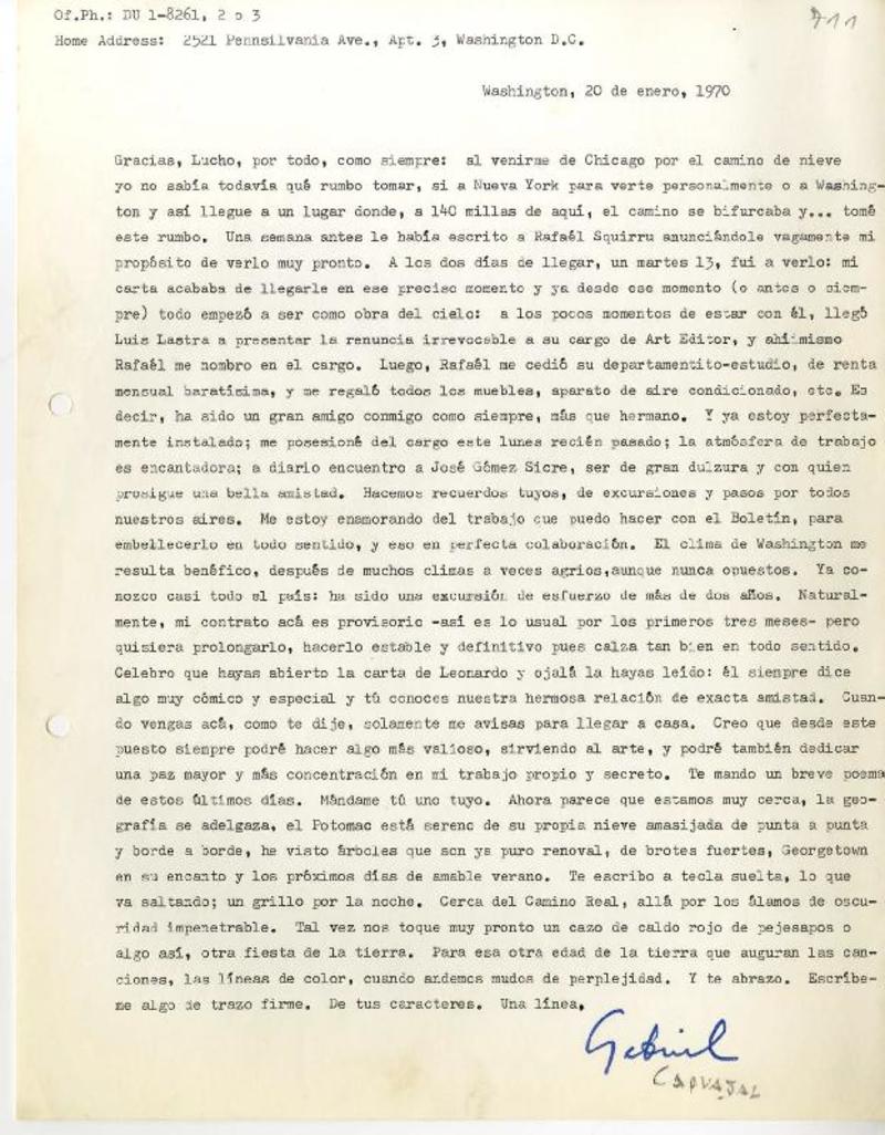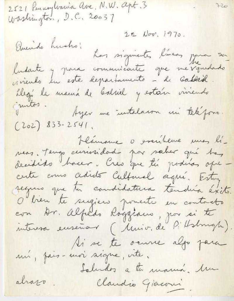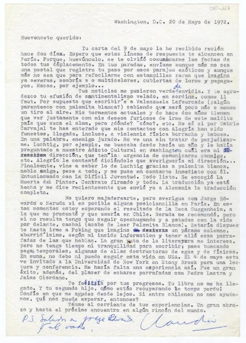 Washington [a] Antonio Avaria Carta, 1972 mayo 20, [manuscrito] Claudio Giaconi.