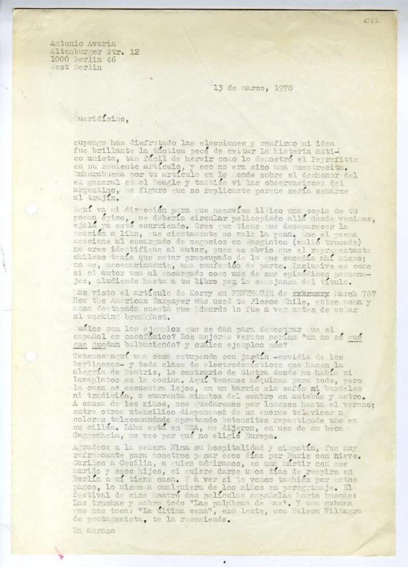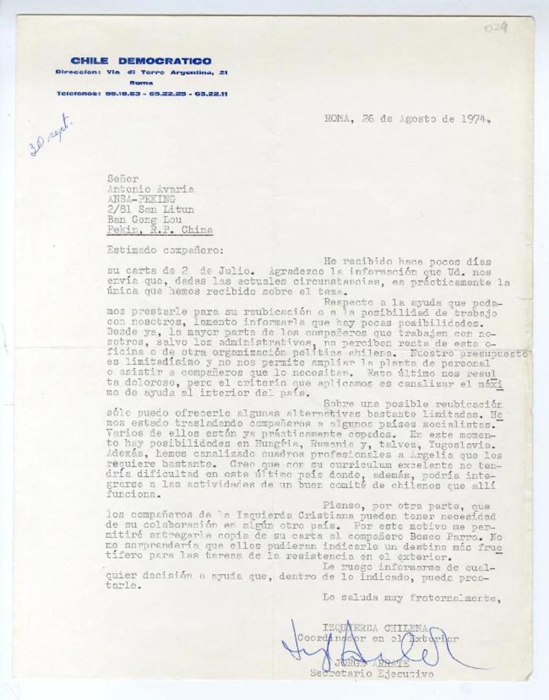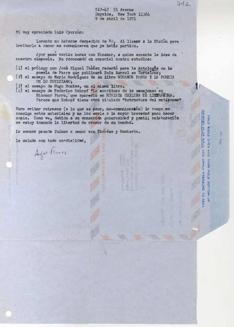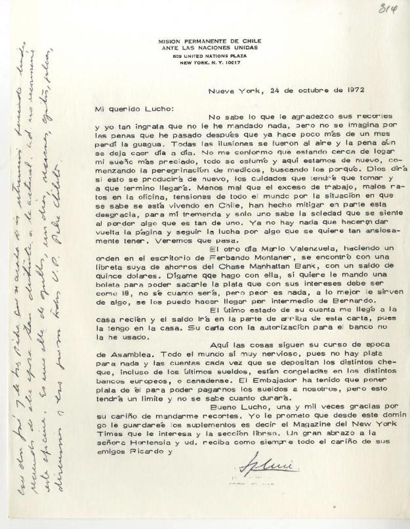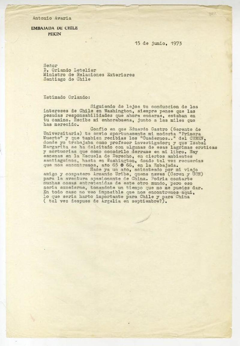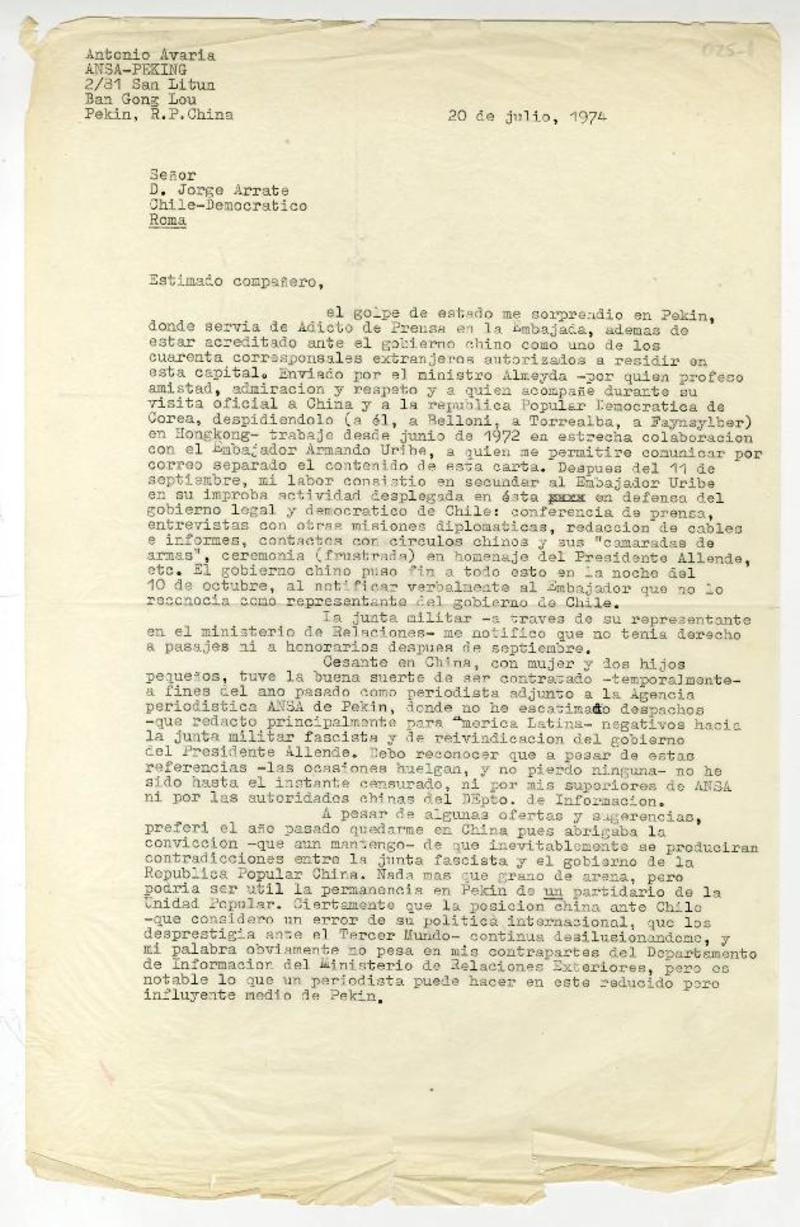 Washington [a] Antonio Avaria Carta, 1972 mayo 20, [manuscrito] Claudio Giaconi.