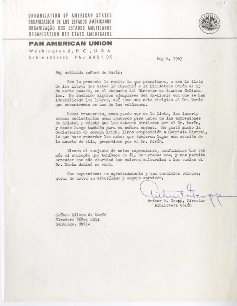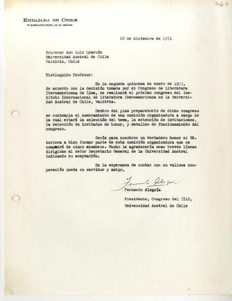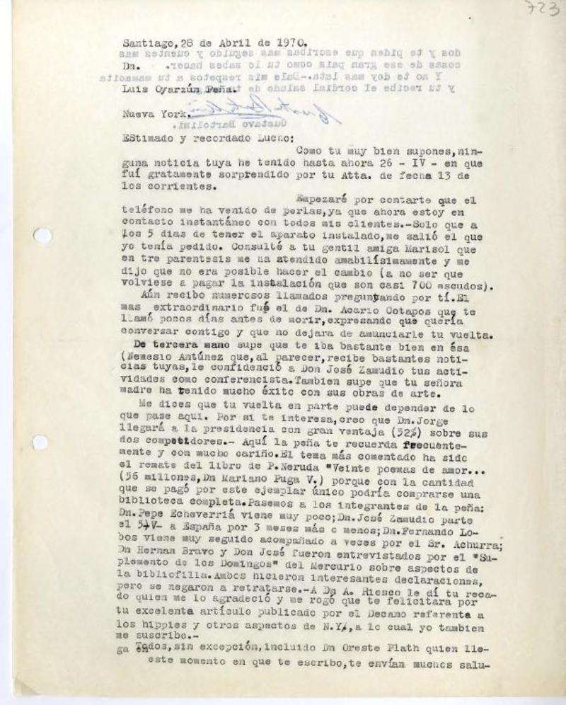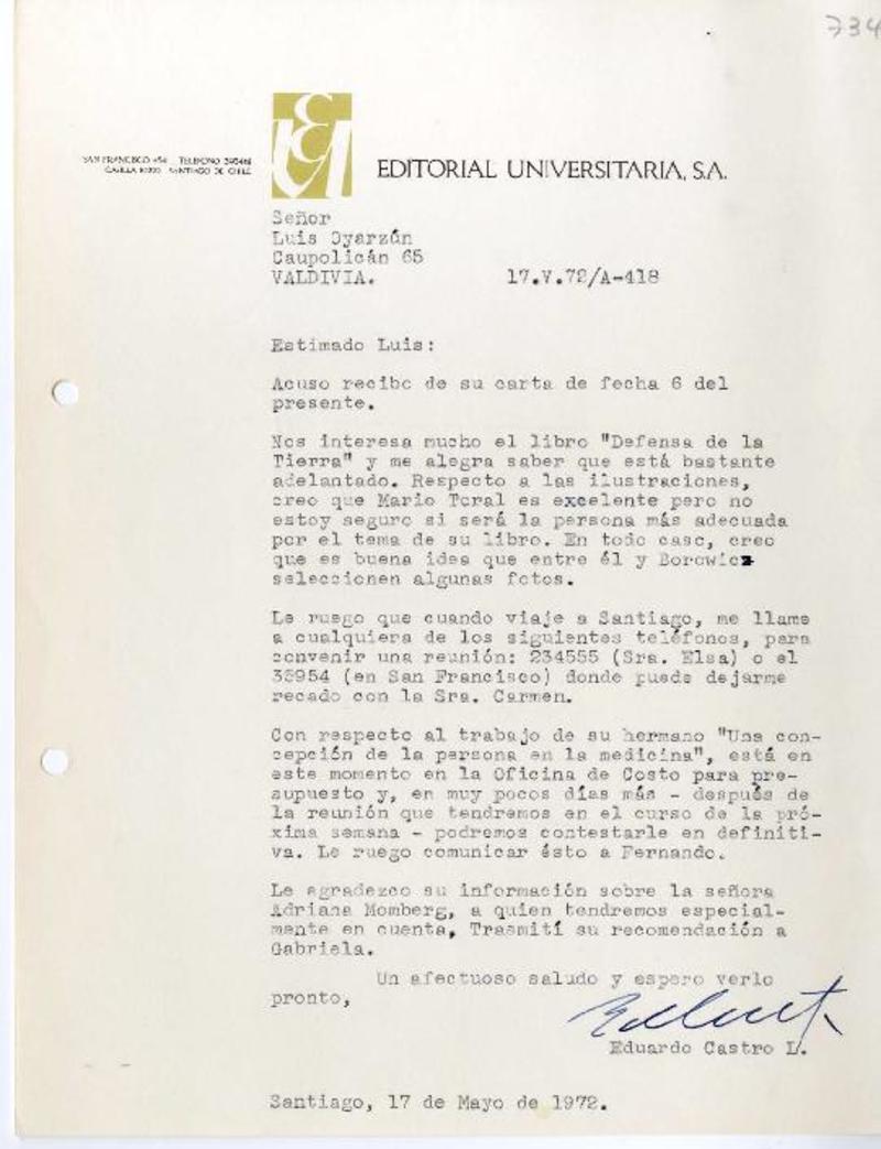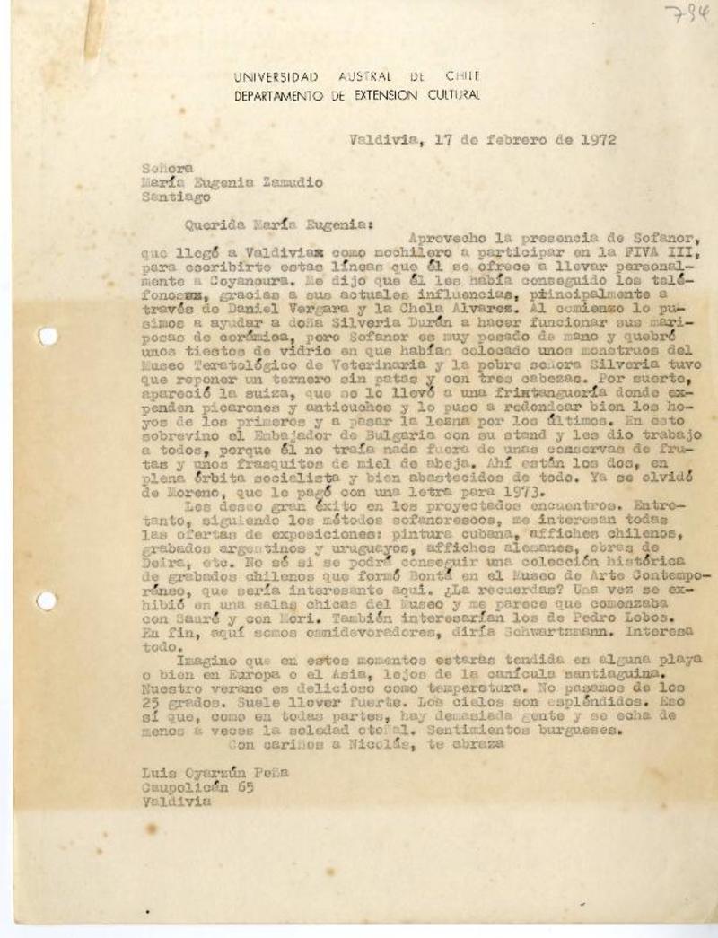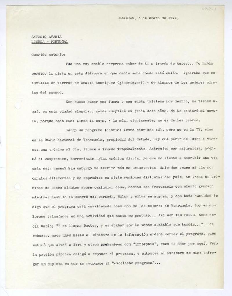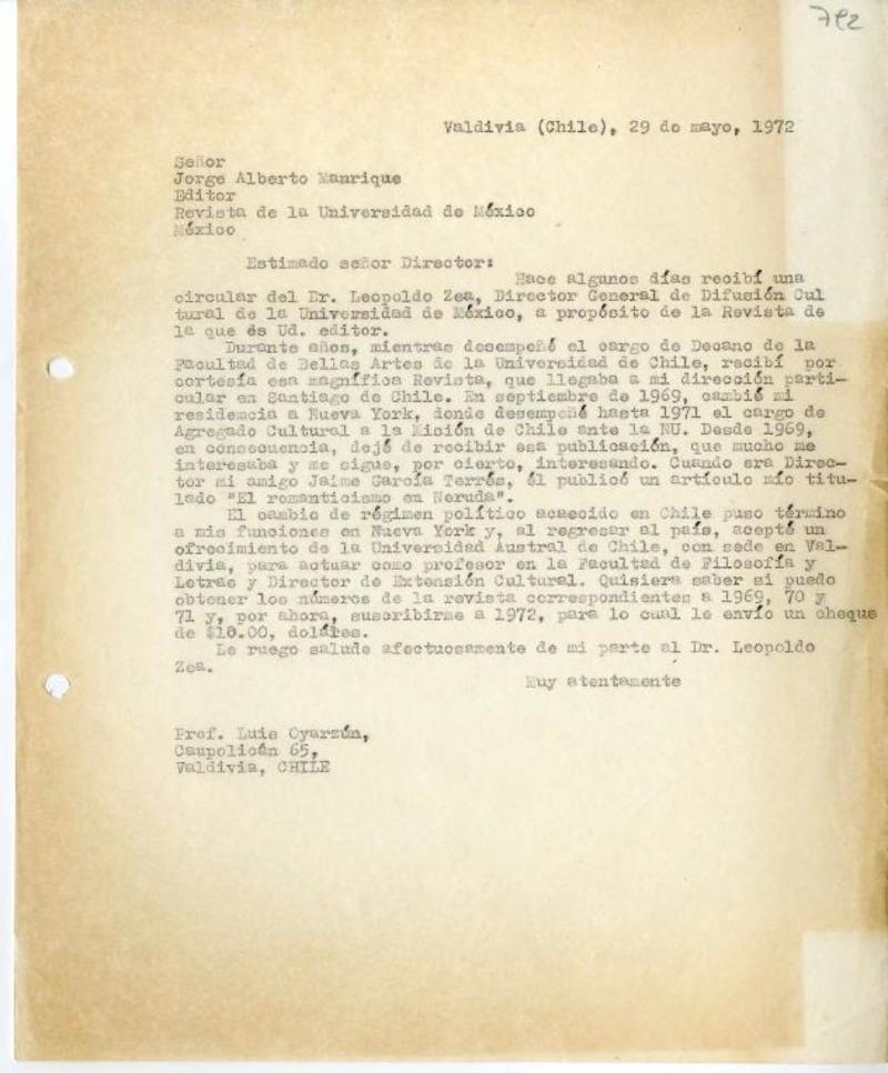 Washington [a] Antonio Avaria Carta, 1972 mayo 20, [manuscrito] Claudio Giaconi.