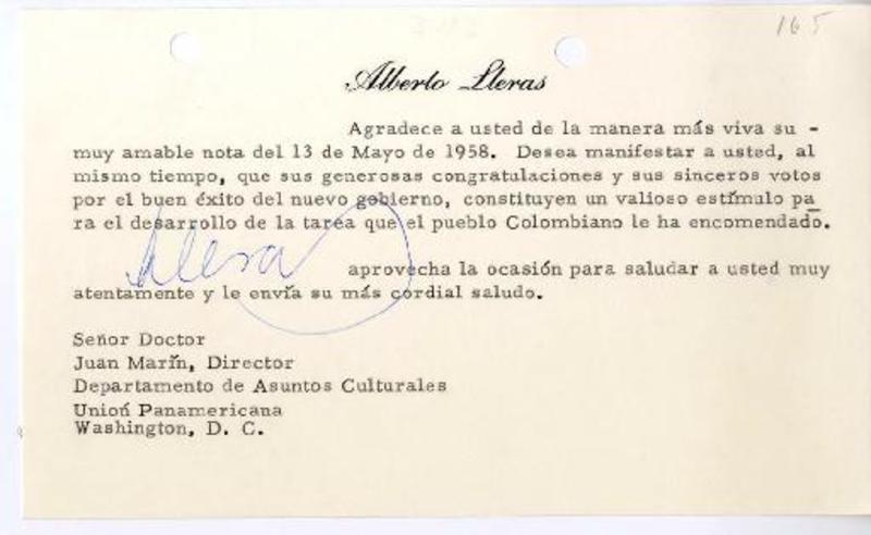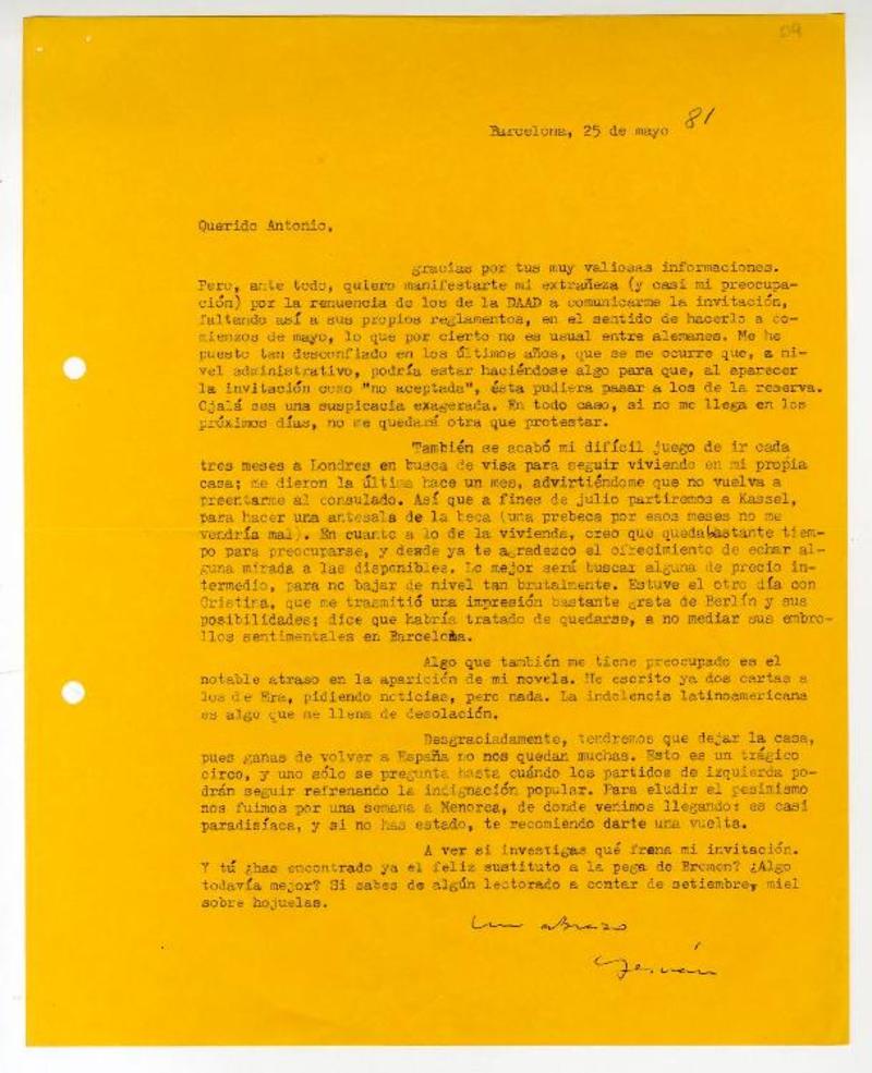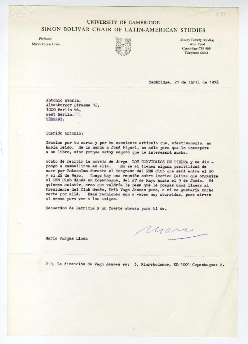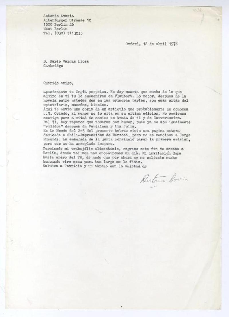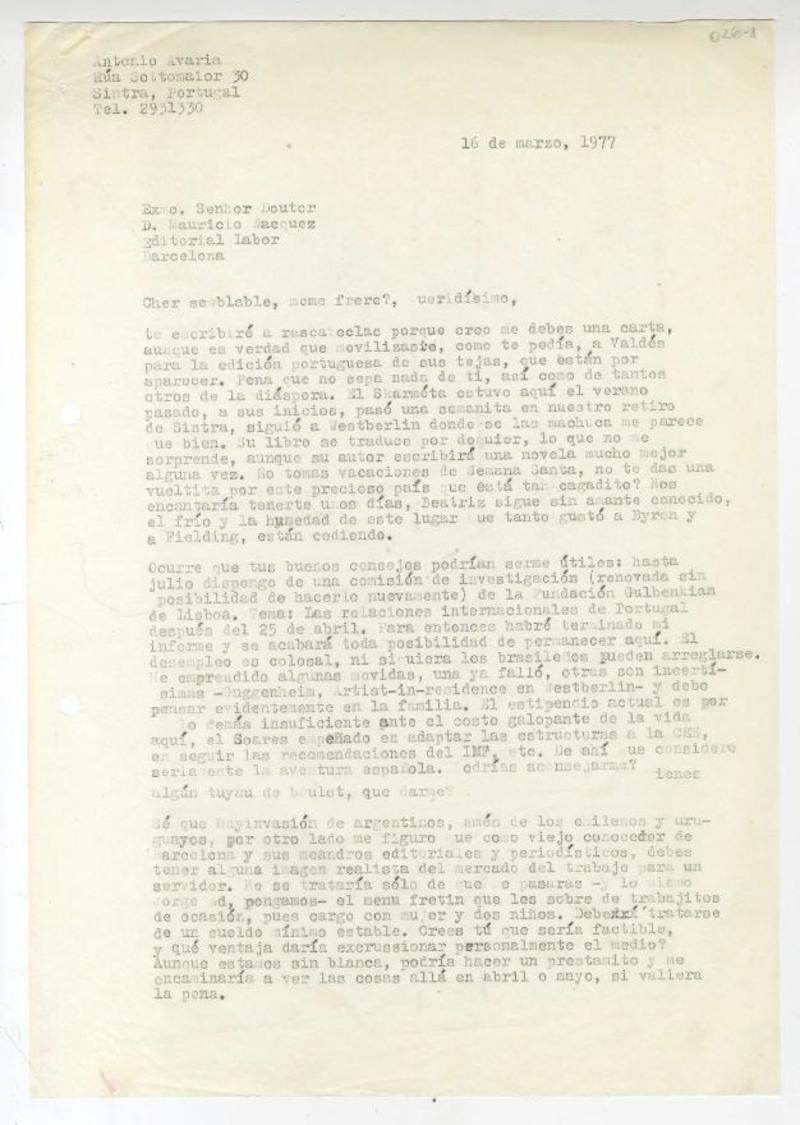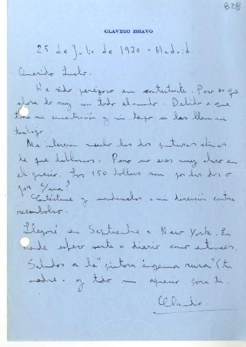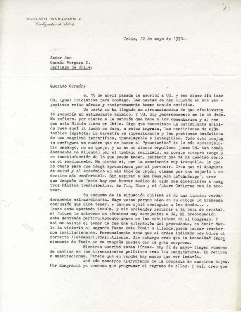Washington [a] Antonio Avaria Carta, 1972 mayo 20, [manuscrito] Claudio Giaconi.