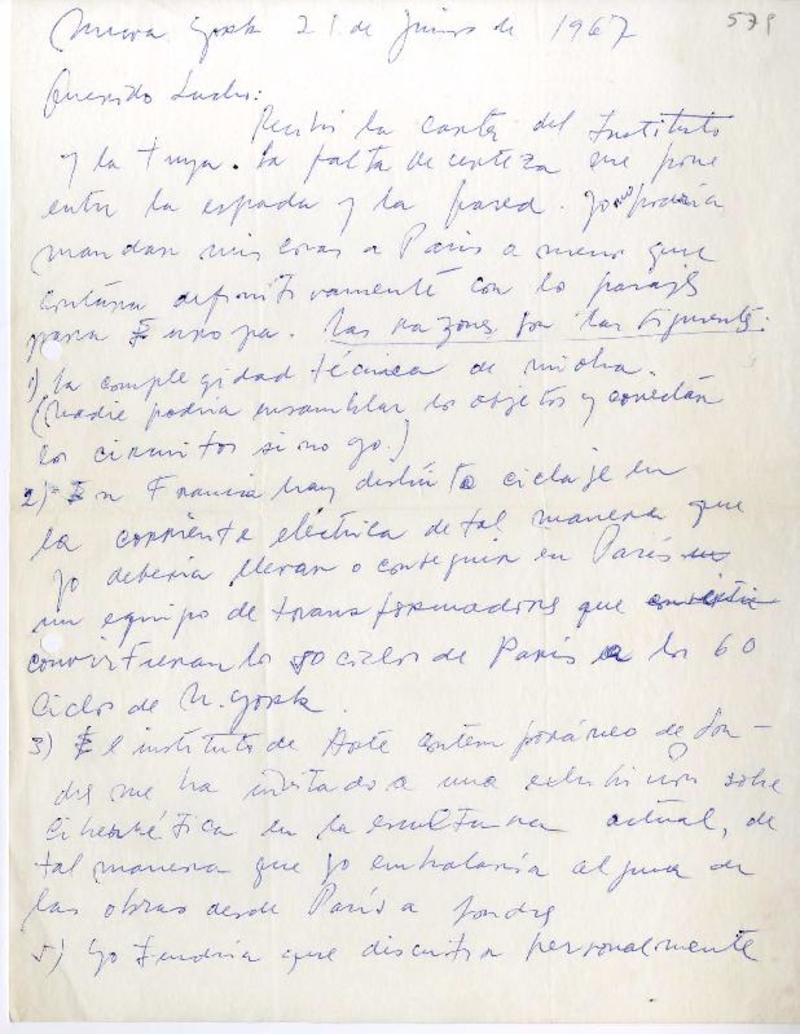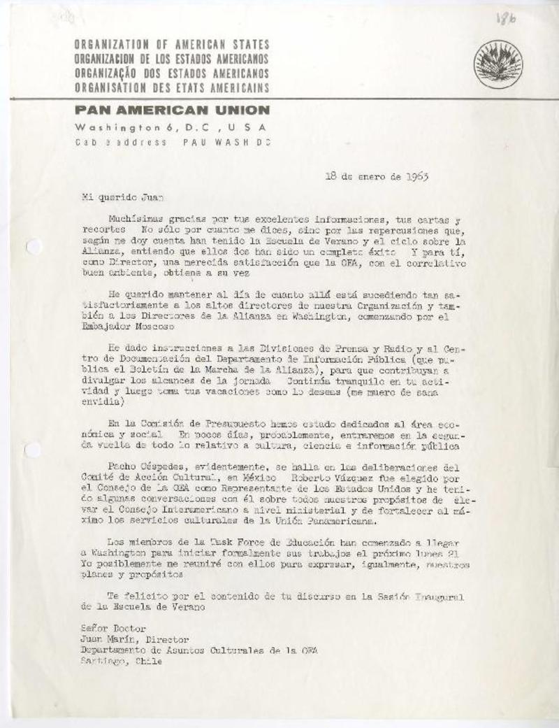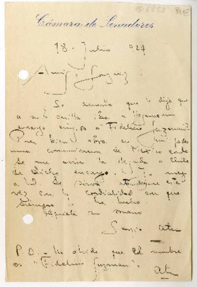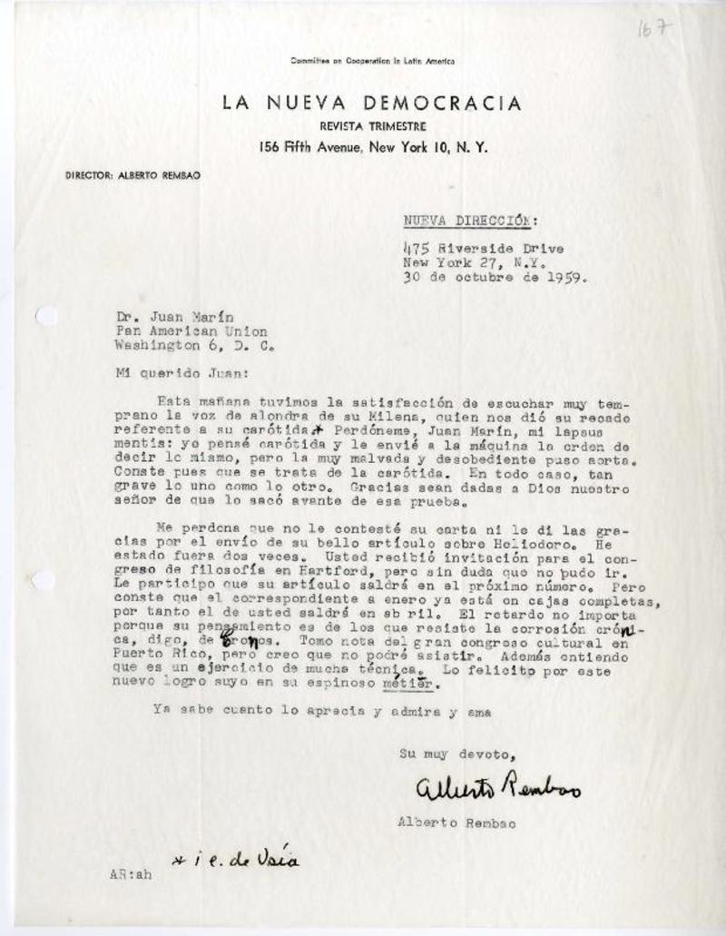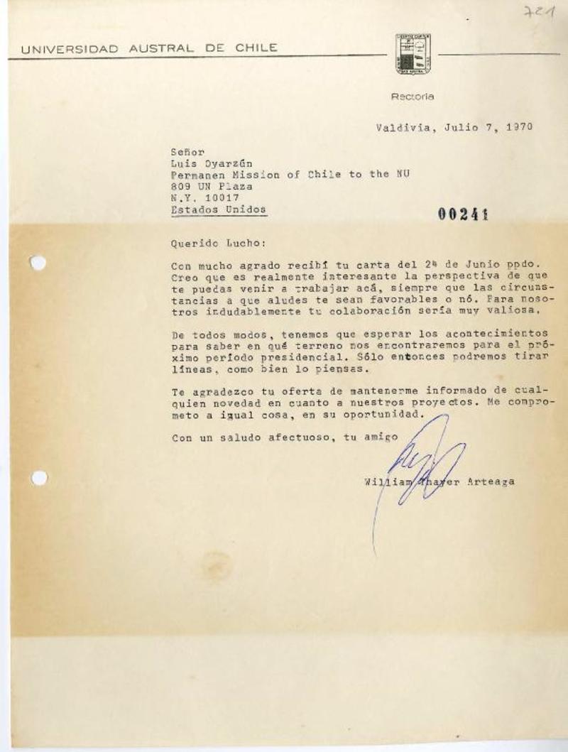 Washington D.C. [a] Salvador Reyes, Santiago, Chile Carta, 1967 julio 24, [manuscrito] Felipe Herrera.