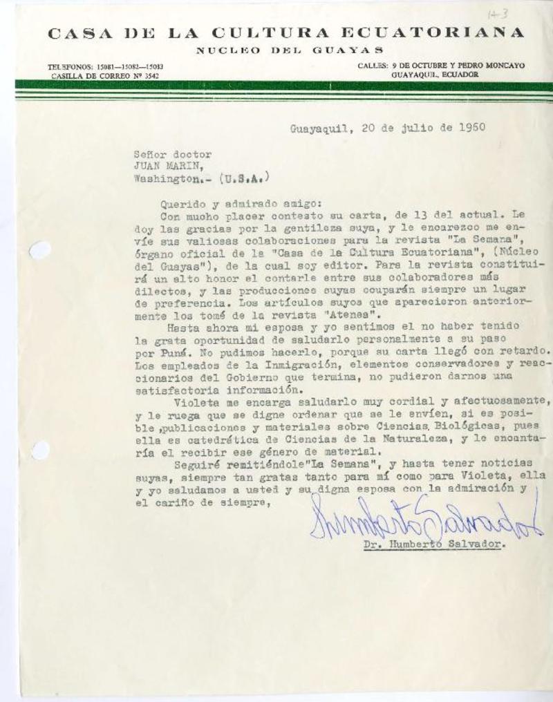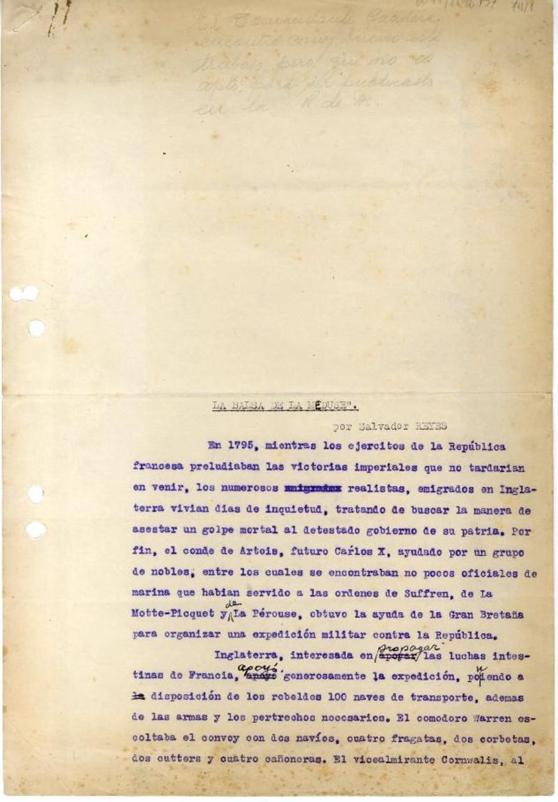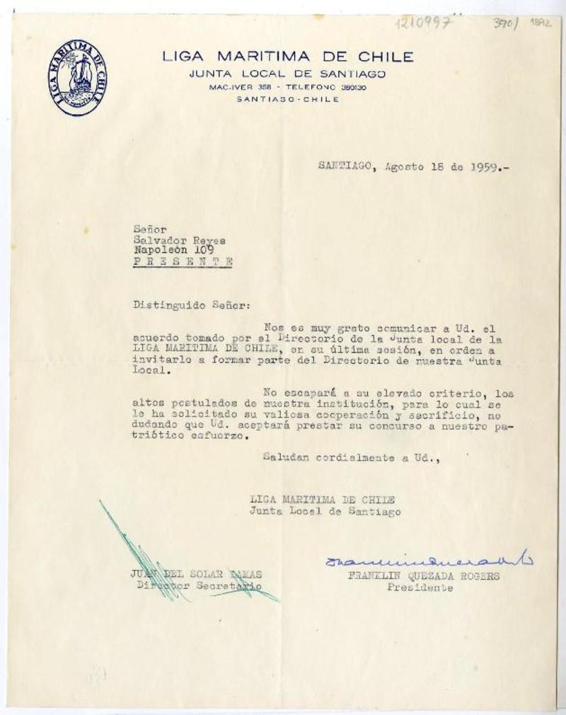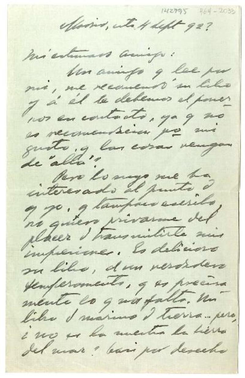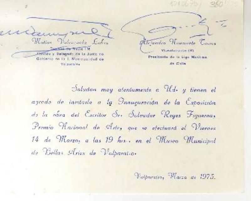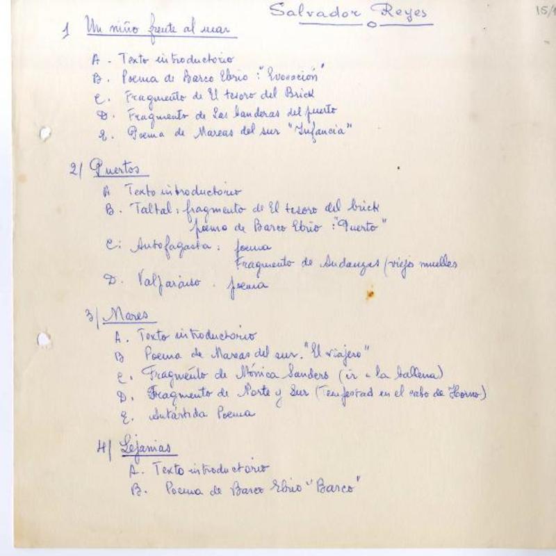 Museo de la Cultura y el Mar (Valparaíso, Chile) - Correspondencia - Autores chilenos - Manuscritos chilenos - Reyes, Salvador