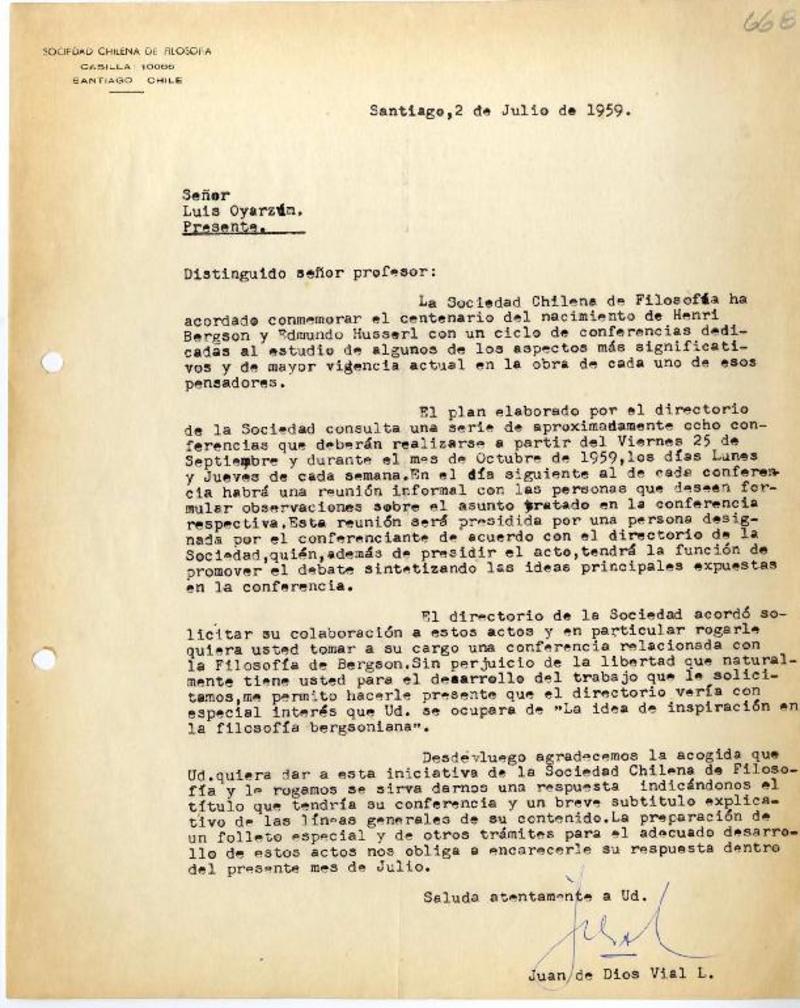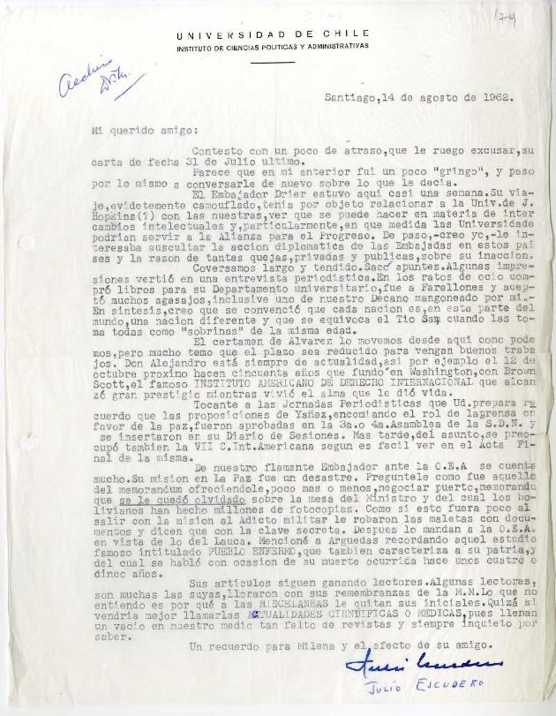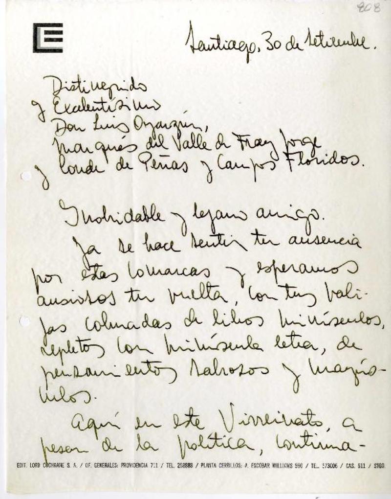 Escobar, Julio César - Correspondencia - Autores chilenos - Manuscritos chilenos - Reyes, Salvador