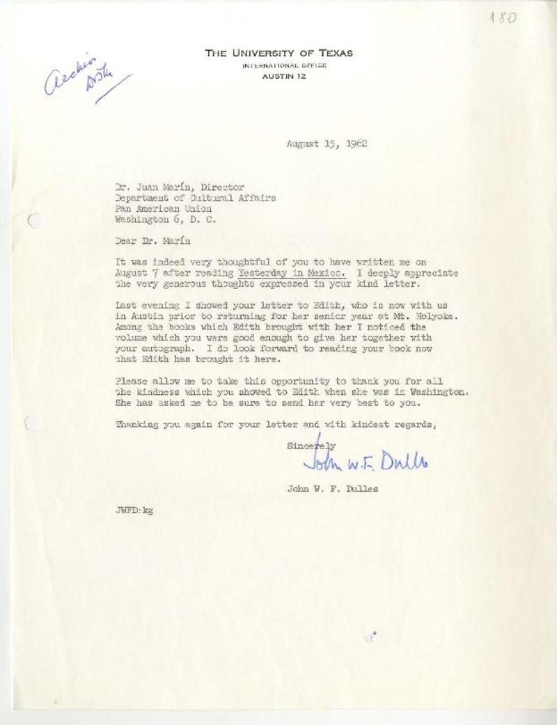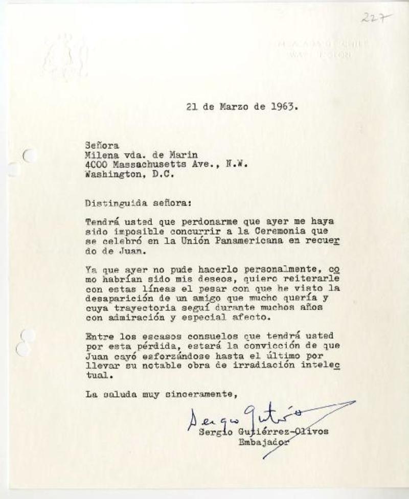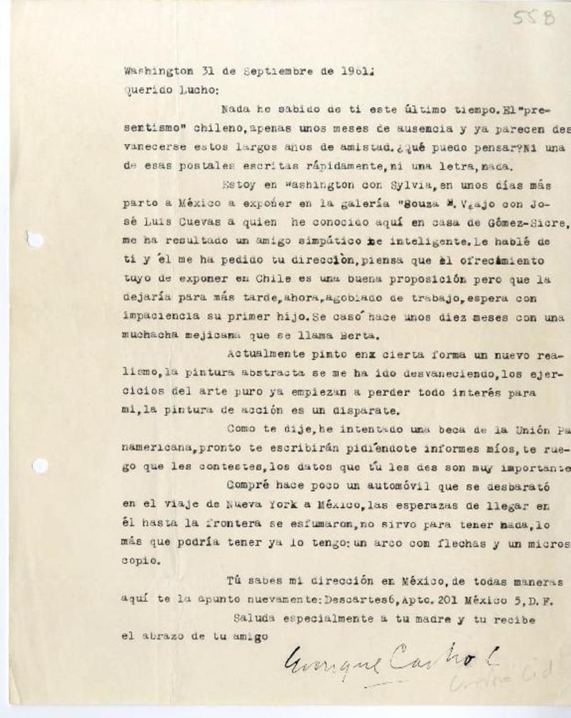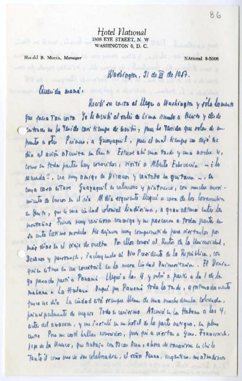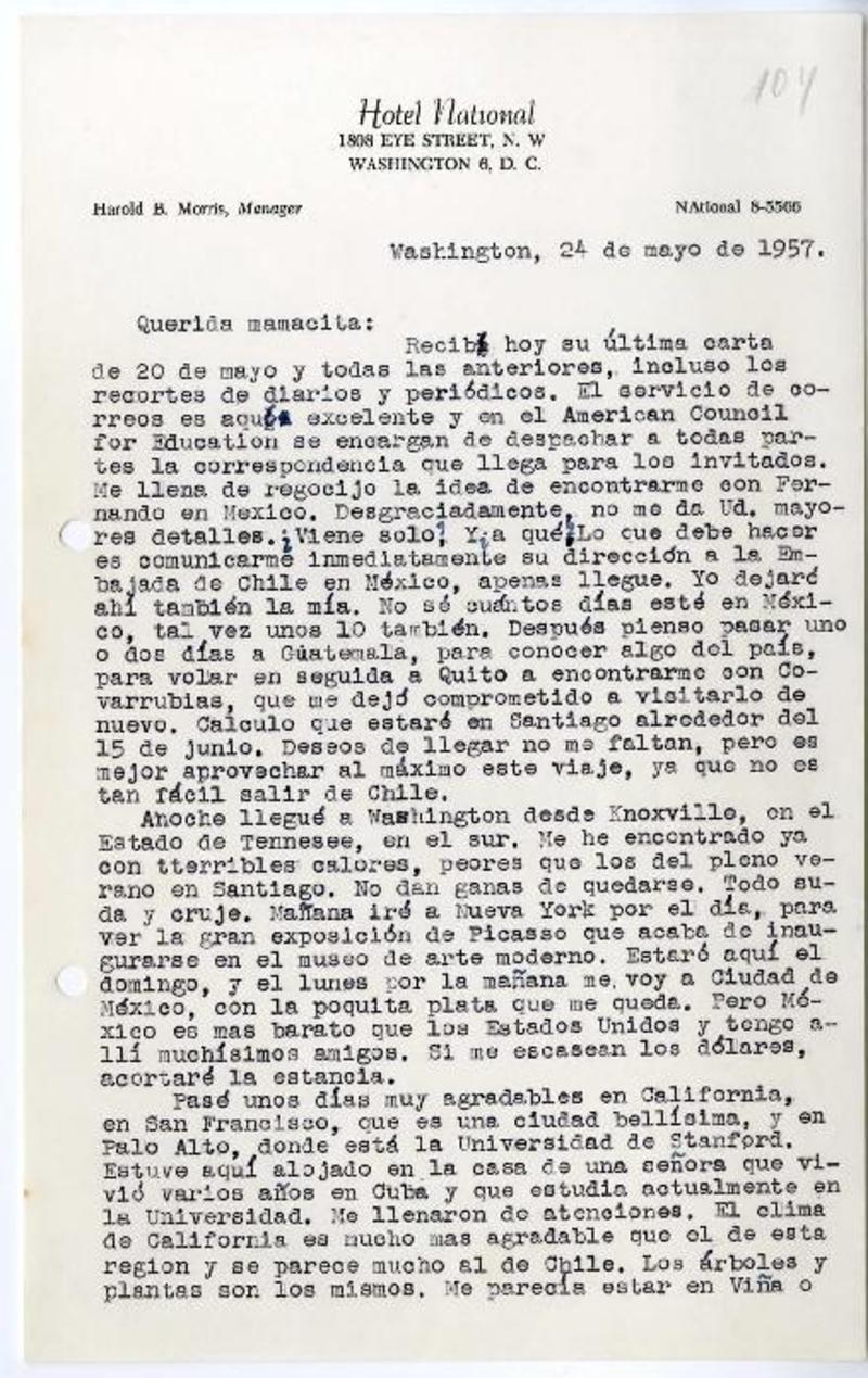 Washington [a] Salvador Reyes Carta, Cerca de 1950, [manuscrito] Rosalie Minddleman.